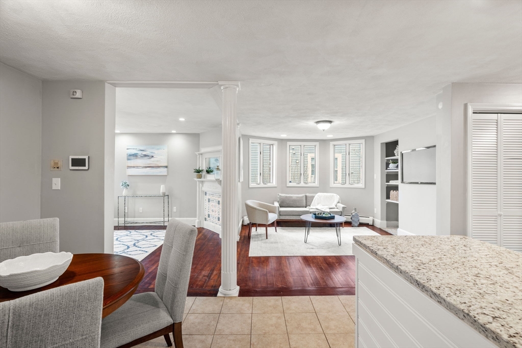 Beautifully updated 2-bedroom condo LOW CONDO FEES in the heart of Dorchester, blending classic charm with modern updates. Rare 2–3 car driveway offers ample off-street parking, complemented by backyard perfect for outdoor enjoyment. Features include gleaming hardwood floors, elegant column detailing, and newer paint in living rooms. Two spacious bedrooms—both with ceiling fans—plus new carpet in the larger bedroom(2024). The updated kitchen (2020) offers granite countertops, refreshed cabinetry, and stainless steel appliances. BONUS - a finished lower bonus room provides ideal space for a home office, gym, or additional living area, along with private laundry & extra basement storage. Updates include; New water heater (2026) Composite deck (2026) Dishwasher (2023) Conveniently located near local parks, shops, and restaurants, with easy access to major commuter routes including I-93, Route 3, and the MBTA Red Line—making commuting to downtown Boston a breeze.