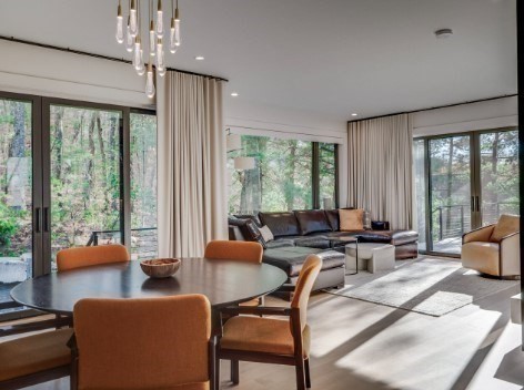 Stunning, 2023 built Mid-Century Modern masterpiece home blends architecture & landscape seamlessly. Clean lines, vast windows, & natural Douglas Fir accents create a light-filled sanctuary that invites the outdoors in. Beyond the classic aesthetic, the home features precision-engineered lumber construction + high-performance systems; hydro-air heating, radiant heat in tiled areas, whole house water filtration & back-up generator. The floor plan offers a seamless blend of form & function, highlighted by a primary suite that serves as a private, luxurious retreat with a dramatic 14' ceiling, & 2nd laundry hook-up. Amenities include automated window treatments, spacious gym with 9"+ ceilings, 1st floor bedroom suite, perfect for guests or in-laws. The perfect harmony of mid-century soul & modern energy efficiency in this precision-built masterpiece by McCormick Custom Builders. Truly better than new, this turn-key property is something special.