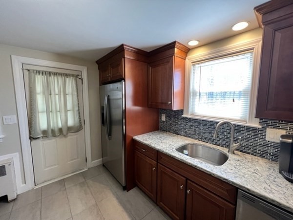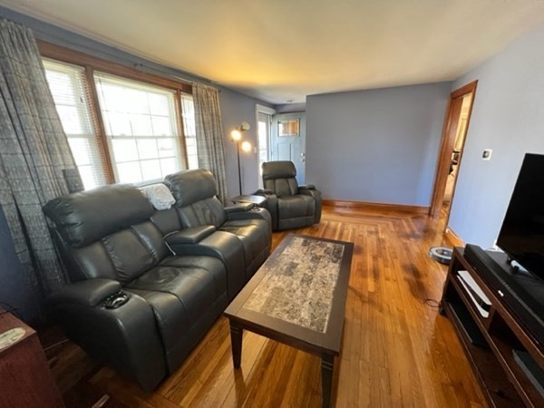Charming Cape for rent with many updates. Eat in kitchen has been updated with granite countertops, stainless steel appliances, beautiful cabinetry and modern kitchen table included. Hardwood floors throughout the home on both floors. Full bath has also recently been beautifully updated, This home has 4 bedrooms: 2 upstairs and 2 on the main floor. One bedroom on the main floor may also be used as a dining room or office if desired, however, all bedrooms feature closets. Heating has been updated as well as newer vinyl siding and windows to keep your heating costs down. The living room features a newer wall mini split air conditioner for those hot days. Very large backyard, great for entertaining. 2 driveways totaling at least 8 car parking; 1 with a carport and the other leading to the attached under house garage. Full use of the entire house including basement and laundry which is equipped with washer and dryer. Location is fantastic. Close to bus, shopping and highway access