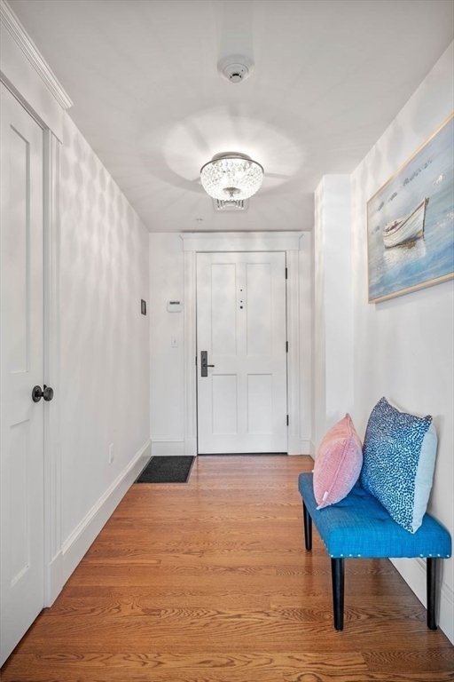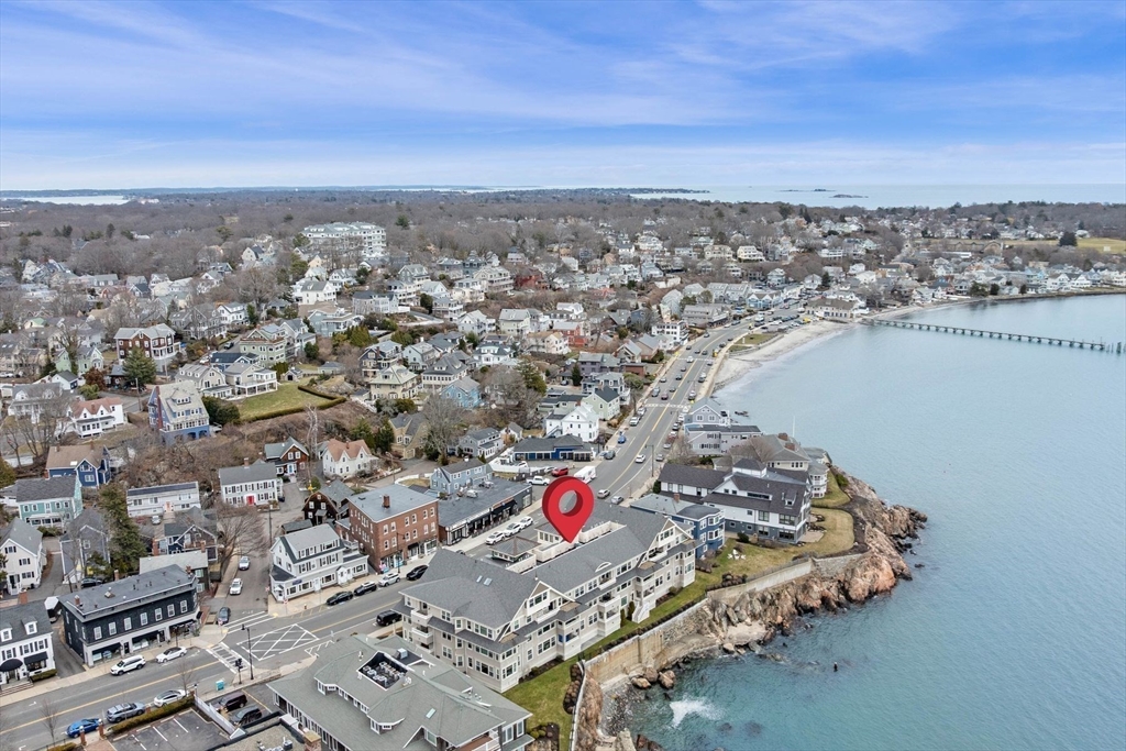 Welcome to Unit #205 at The Concordia, a rarely available unit in the luxury condominium building in the heart of downtown Swampscott. This two-bedroom, two-bath unit combines sun-filled elegance with ultimate convenience, featuring two deeded garage parking spaces with elevator access—perfect for effortless coastal living. The open-concept layout flows seamlessly from a high-end kitchen with a gas Wolf range, granite countertops and hardwood floors into the living and dining areas, highlighted by a gas fireplace. The primary suite is a true retreat, offering a walk-in closet, en-suite bath with double vanity and marble tiled shower, and a private balcony with ocean views. A spacious second bedroom & full bath provide flexibility for guests or a home office, while in-unit laundry adds everyday convenience. Enjoy views of the Boston skyline from the shared green space, direct beach access and a lifestyle just steps from shops, restaurants & more!