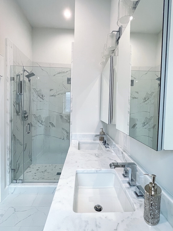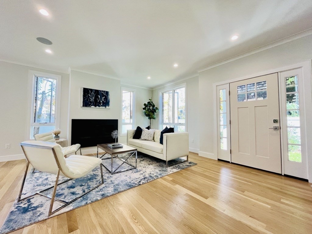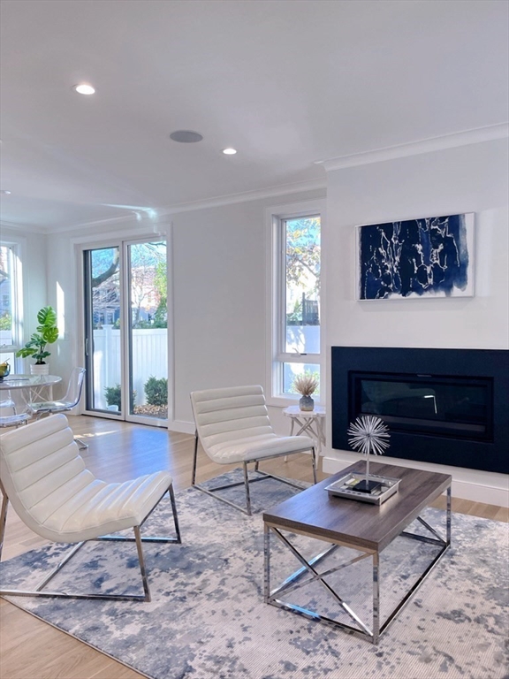 A stunning newly onstructed comtemparary style home in contrast to the elegant traditional front unit. The four-bedroom, three-and-half bath with a fenced private backyard in Central Square is a rare find! The first floor is spacious with an open kitchen, living and dining area, and a gas fireplace. The kitchen includes a contemporary cabinet, state-of-the-art appliances, quartz countertops, and an island. Elegant French door reveal a private rear deck with a bluestone patio. Washer/dryer conveniently located. The second floor includes three bedrooms with Cathedral ceilings, including a generous main suite with two closets. The lower level features a fourth bedroom or home office, media room and additional bathroom. The sunny townhouse is situated 3 minutes from Central Square and is only a short commute to both Harvard and MIT.The Charles River, H Mart, Whole Foods, Trader Joe's, and numerous restaurants are just blocks away. Don't forget storage shed and private yard.