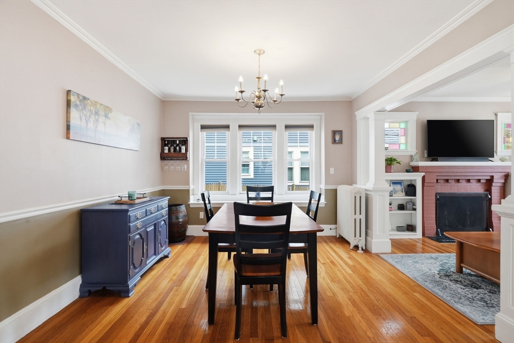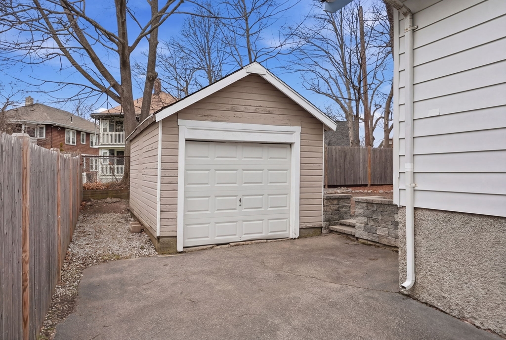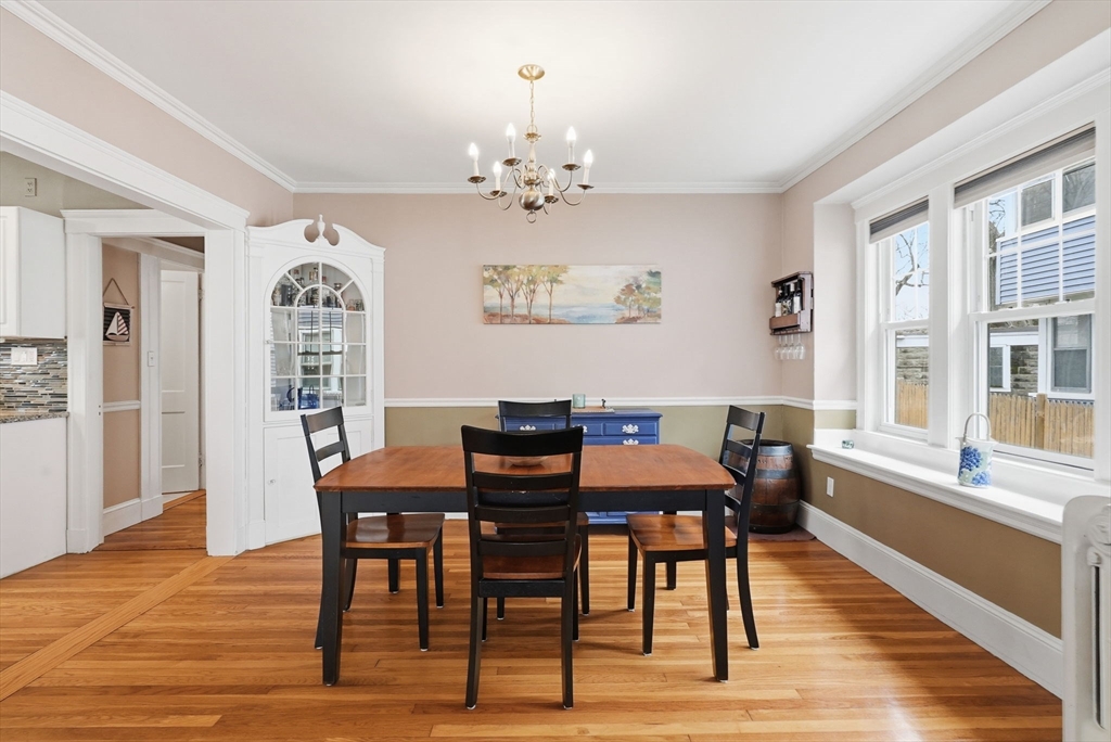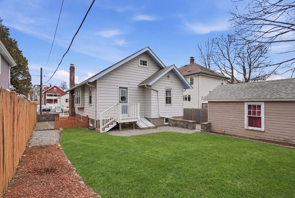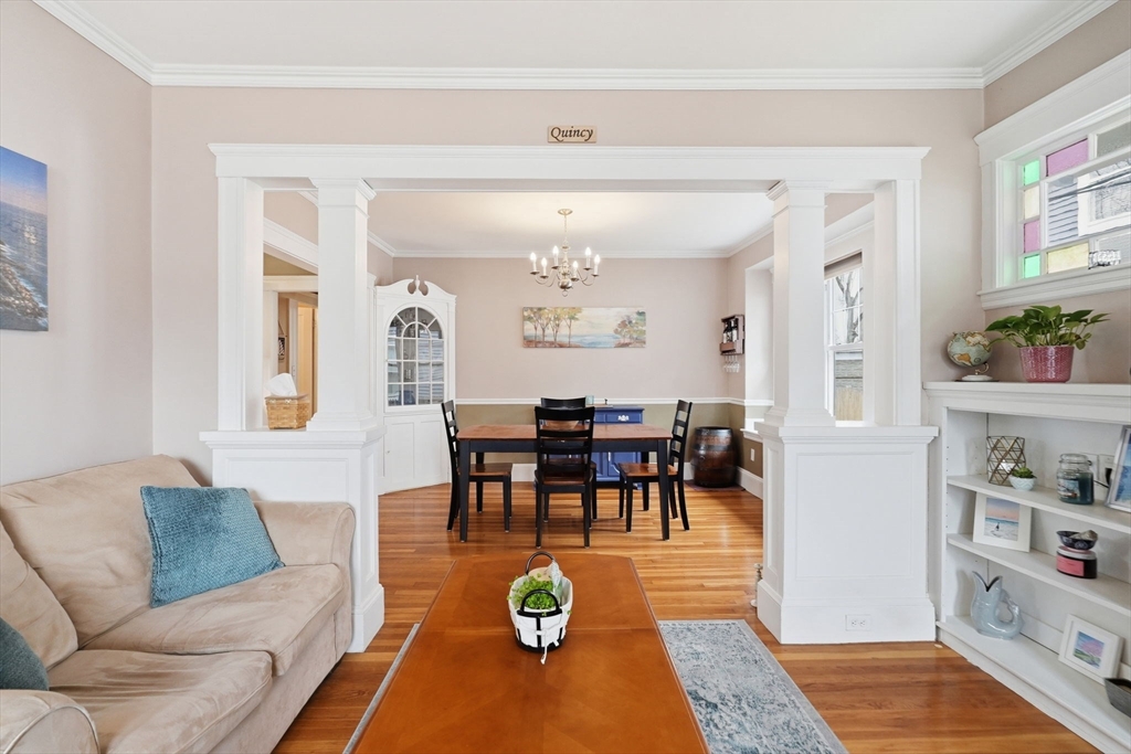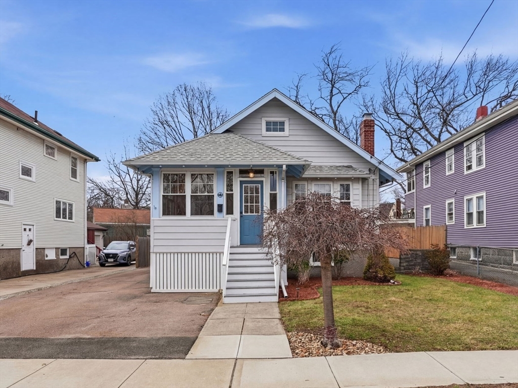 Charming 2-bedroom bungalow just 0.7 miles from the restaurants, shops & public transit of Quincy Center. A bright front porch welcomes you with a built-in window seat and storage. Inside, the fireplaced living room features stained glass windows and classic built-ins. A sunlit bonus area off the hallway is perfect for a home office. The dining room flows into an updated kitchen with stainless steel appliances. Two comfortable bedrooms and a full bath with a glass-enclosed tub round out the first floor. The lower level offers even more versatility with finished space for a family room, playroom, or media area, plus a laundry room and a separate room well-suited for a home gym. Enjoy a private yard, a side paver patio perfect for outdoor dining, and a garage for added convenience/ storage. Ideally located just over a mile from Wollaston Beach and close proximity to Merrymount Park. A perfect blend of charm, function, and location!