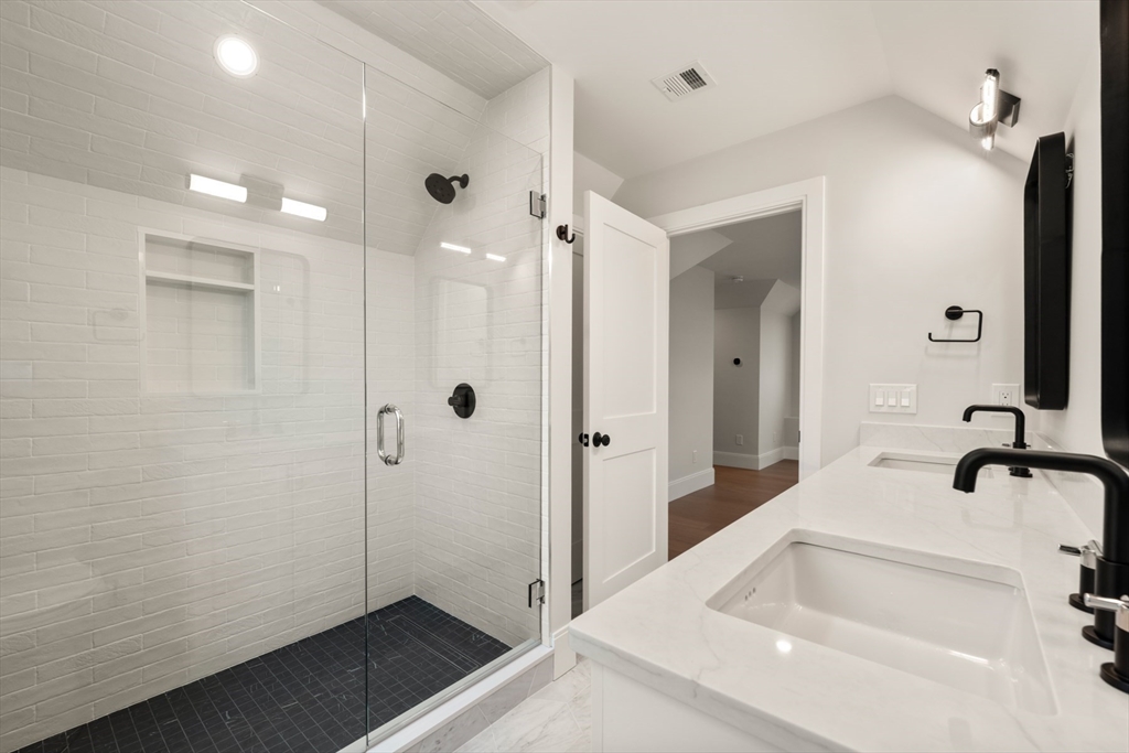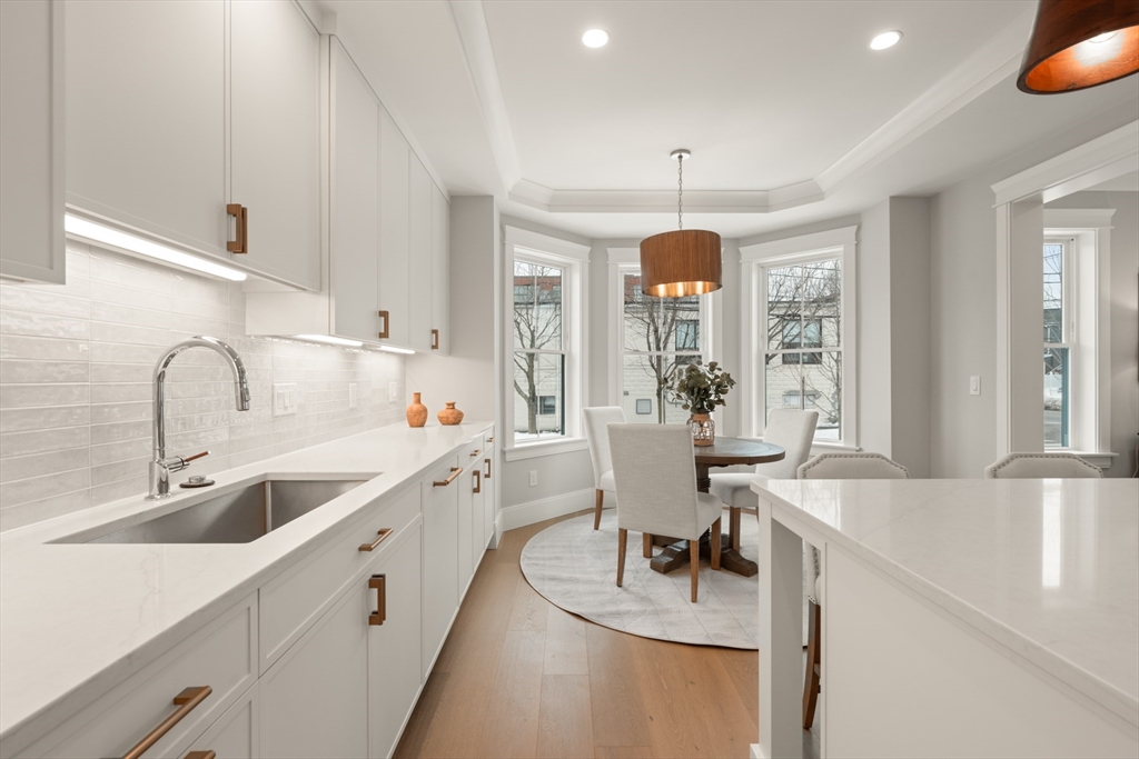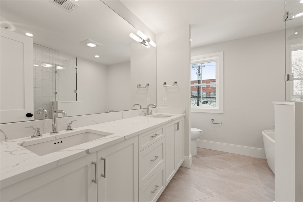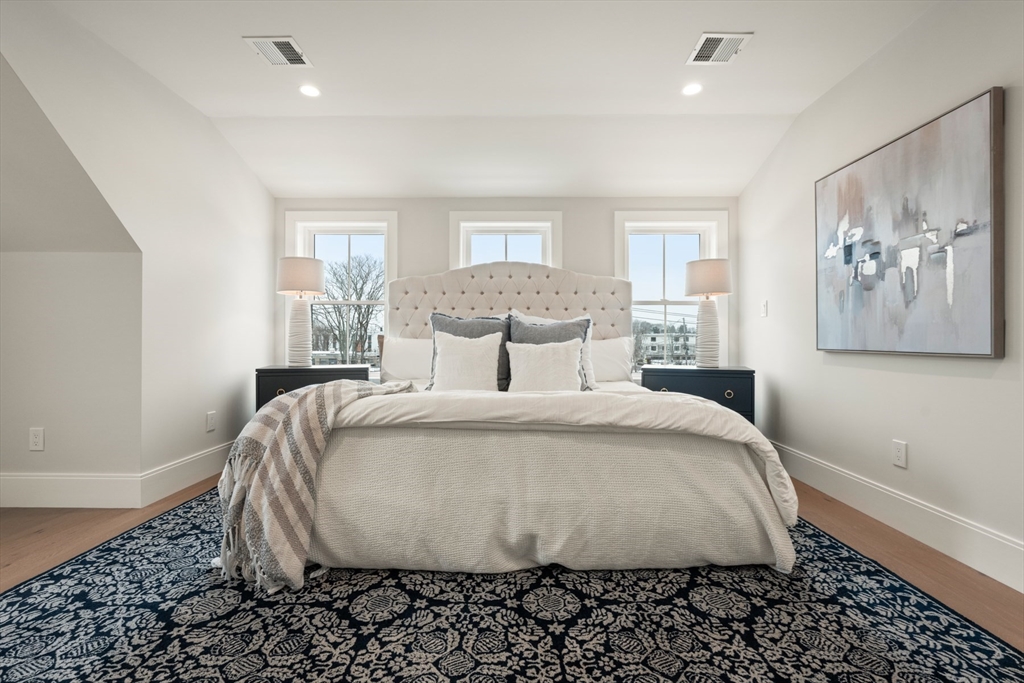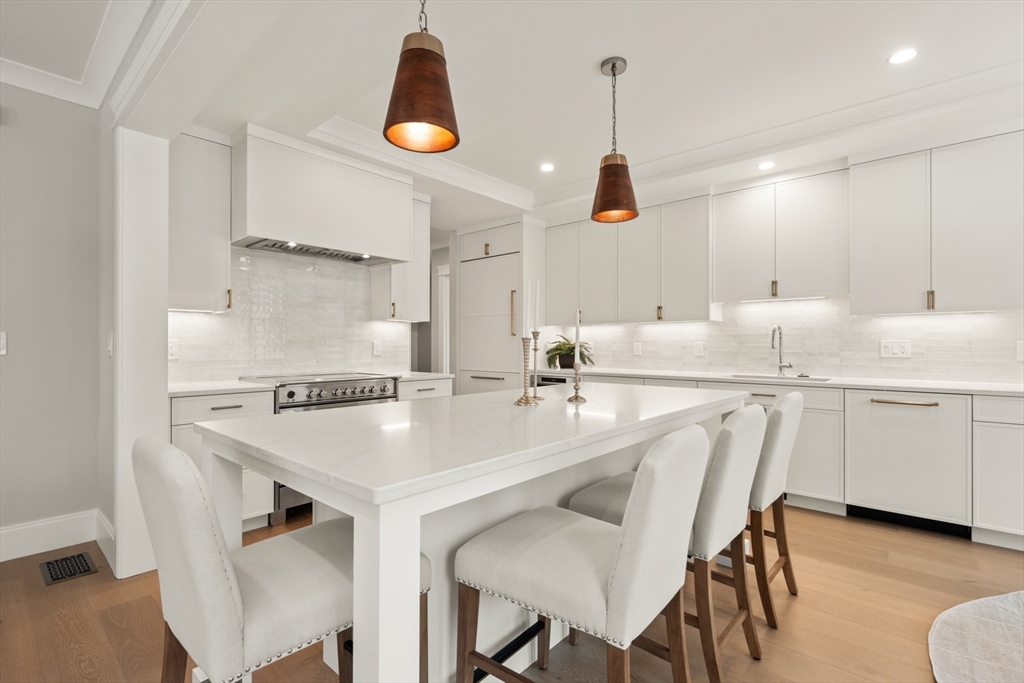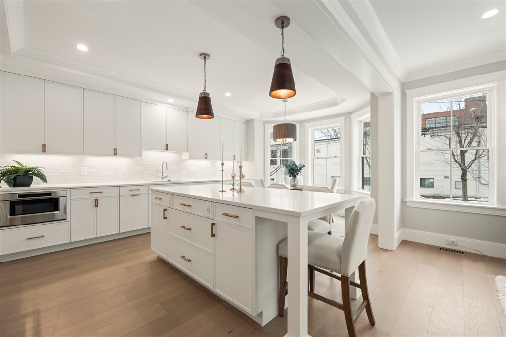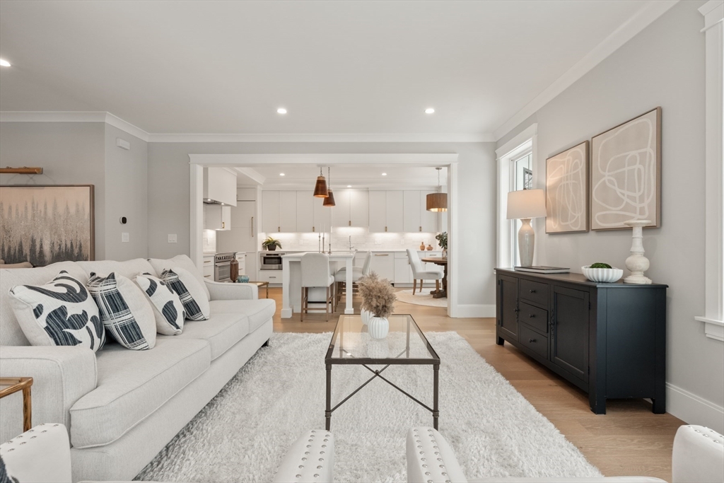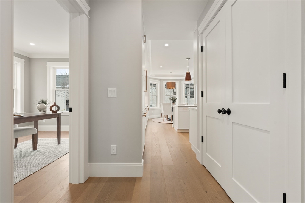 Perfectly positioned just moments from Forte Park and the Charles River Greenway, 235 California Street is a meticulously crafted new construction townhome blending timeless design with modern sophistication. Bathed in natural light, this 4-bedroom, 4.5-bath residence offers over 3,700 square feet across four finished levels. The main level is designed for seamless living and entertaining, featuring an expansive open-concept kitchen, dining, and living area, complemented by a private study, mudroom, pantry, and powder room. Upstairs, four well-appointed bedrooms include two luxurious primary-style suites with spa-inspired baths and two generously sized guest rooms. The lower level offers a versatile media or fitness space, plus a second office and full bath. A private patio leads to a driveway with covered parking and additional off-street spaces.