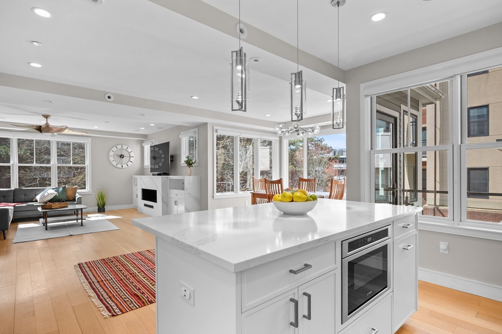 Welcome to this sun-filled, beautifully rebuilt-from-the-studs (2018) condo offering refined, high-end living in one of Brookline’s most sought-after locations. Designed with an elegant open floor plan, this home features 3 bedrooms, 2.5 baths, in-unit laundry, gas fireplace, private balcony, central air, and garage parking. Ideally situated on a side street between Coolidge Corner and Brookline Village. The chef’s kitchen showcases Sub-Zero refrigeration, a 6-burner Wolf range, pot filler, and custom cabinetry. A sophisticated dry bar with waterfall counter and wine fridge, custom built-ins, and a sunlit dining area with three exposures and direct balcony access create an ideal setting for living and entertaining. Additional features include Hunter Douglas shades, California Closets, and smart home integration. Low condo fee, fully owner-occupied association. Close to Green Line C & D, shops, dining, and parks. Second parking is available for $225/month. Offers by Wed. 3/25 at 8:00PM