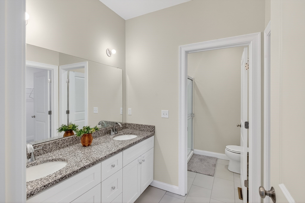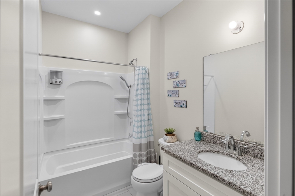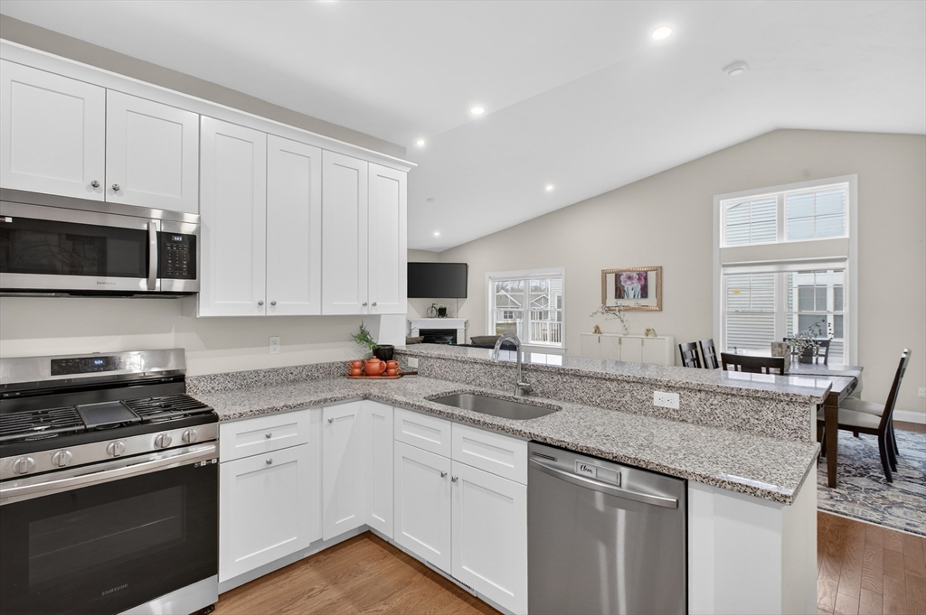 Presenting an exceptional condo maintained in great condition. The living room provides an inviting atmosphere for relaxation and social gatherings, featuring a charming fireplace that offers warmth and comfort. High ceilings and vaulted ceilings contribute to an expansive and airy feel, enhancing the overall sense of space within this central area. The kitchen has elegant stone countertops complemented by stylish shaker cabinets. A convenient kitchen bar and a spacious kitchen peninsula provide versatile areas for casual dining and entertaining. Bright sunroom, spacious deck. One of the two bedrooms offers a walk in closet with the privacy and convenience of an ensuite bathroom with a double sink and stall shower. There is also a full unfinished basement with plenty of storage and potential for finished above grade bonus space and bathroom. Backyard provides a great area for entertaining. The clubhouse also offers a great place to reserve a private party and houses mailboxes.
