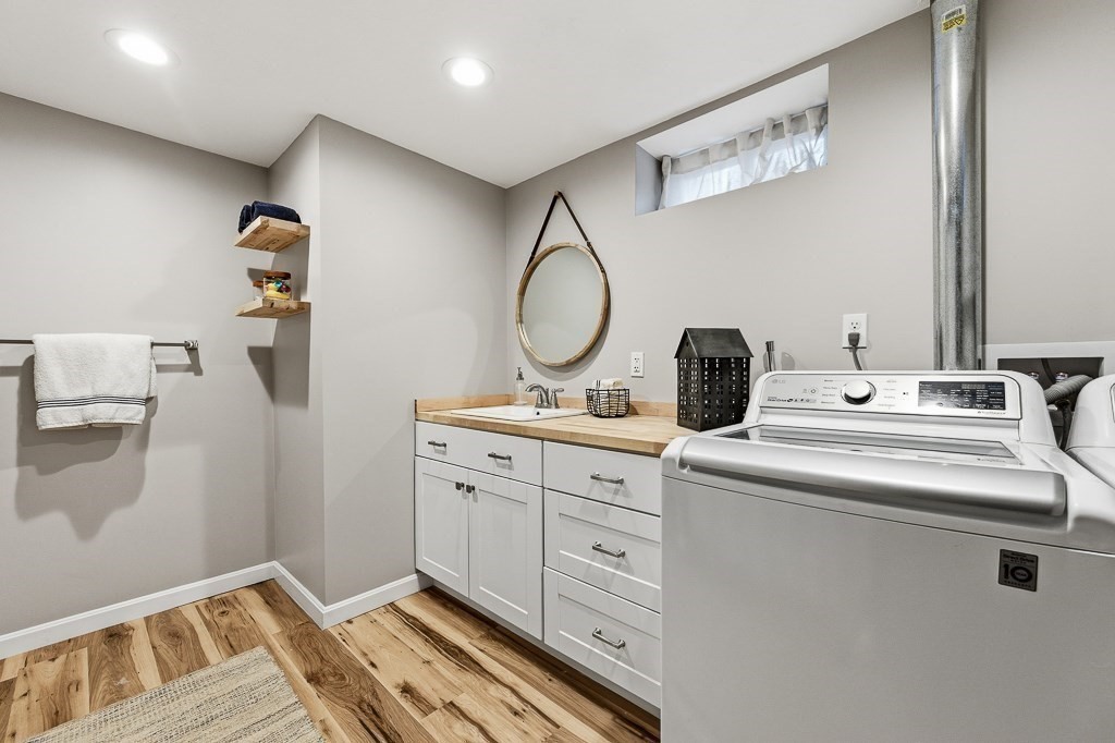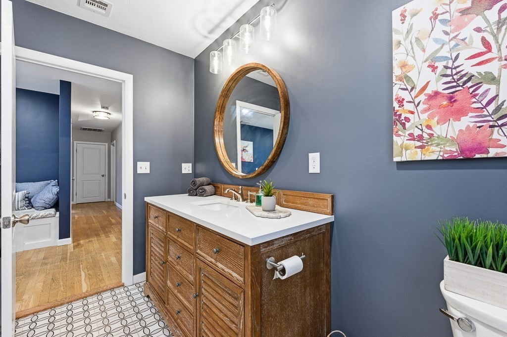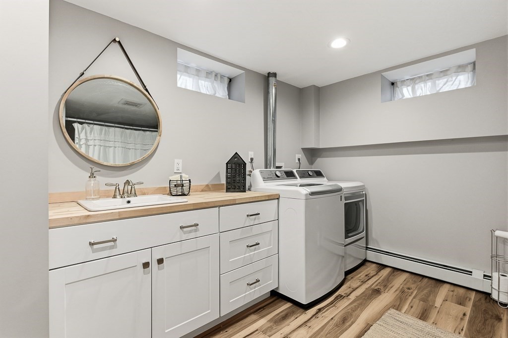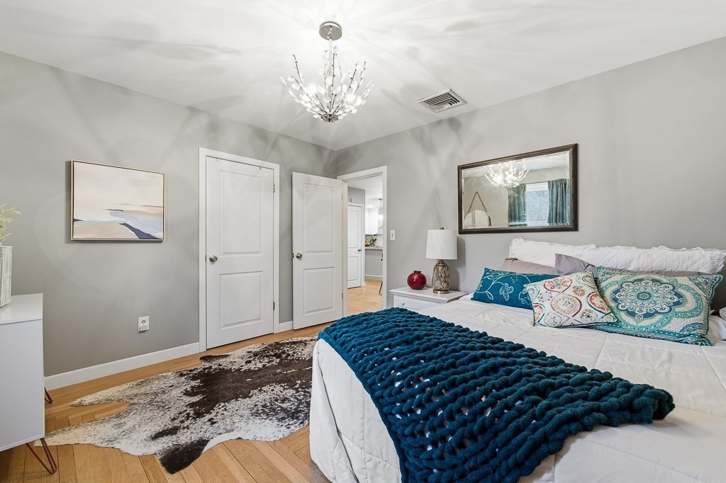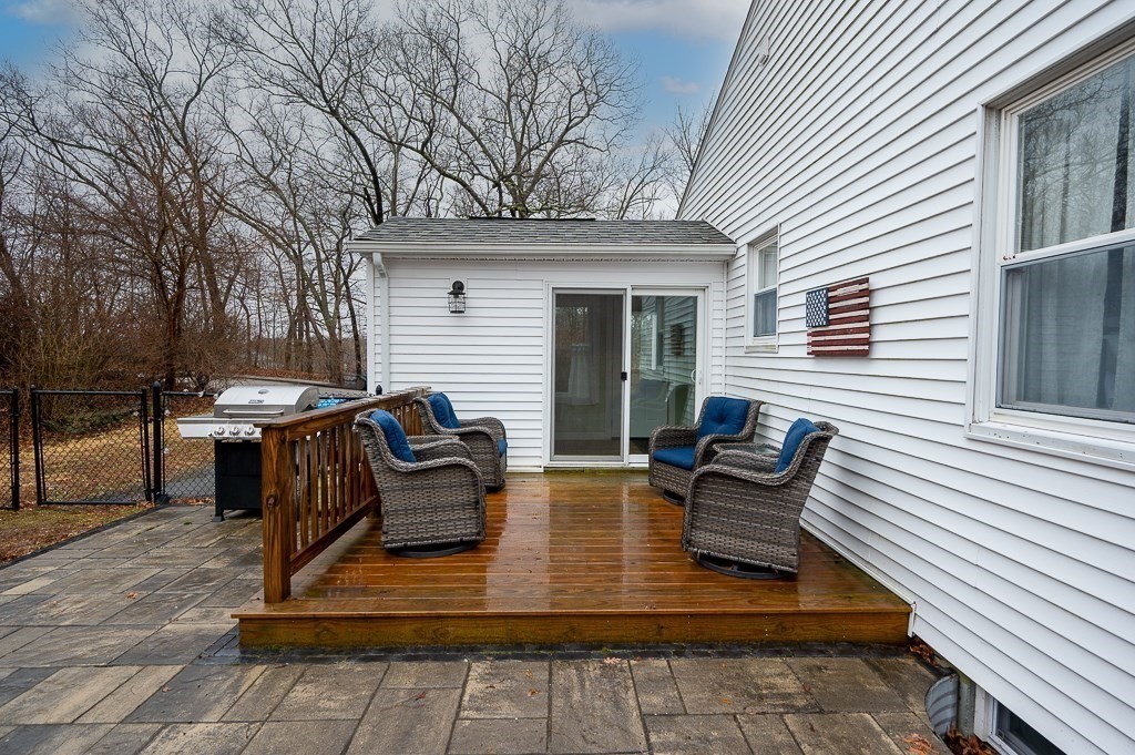 Beautiful ranch-style home with two car garage and plenty of off-street parking. This home has been meticulously updated! The elegant kitchen adorned with stainless steel appliances, stunning quartz counters and fresh modern cabinets includes an island and eat in area for guests to enjoy! Through the kitchen there is access to a mud room with a sliding door to the deck area. The spacious living room with beautiful hardwood floors and lots of windows to let in natural light allowing for a great place to relax. The first floor bathroom has a gorgeous tiled shower and custom vanity. The bedrooms all have hardwood flooring and attractive light fixtures. In the basement you will find a large family room with recessed lighting which makes for great entertaining with an additional full bathroom finished with vinyl flooring and washer/dryer hook up. Outside there is a fenced in back yard with patio area including a built in fire pit to enjoy a night under the stars. Don't miss out!