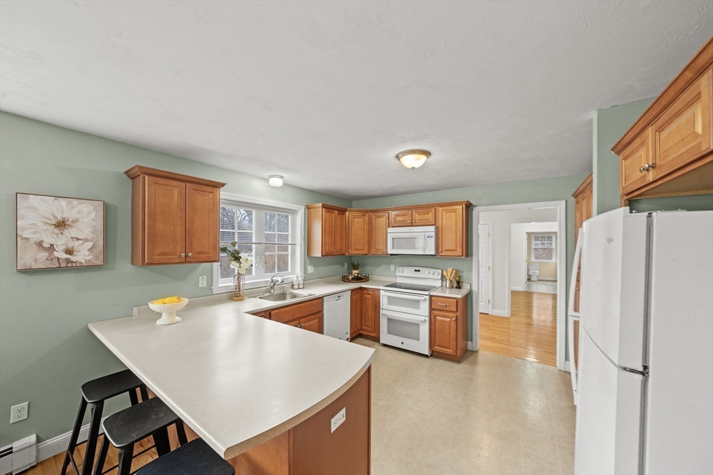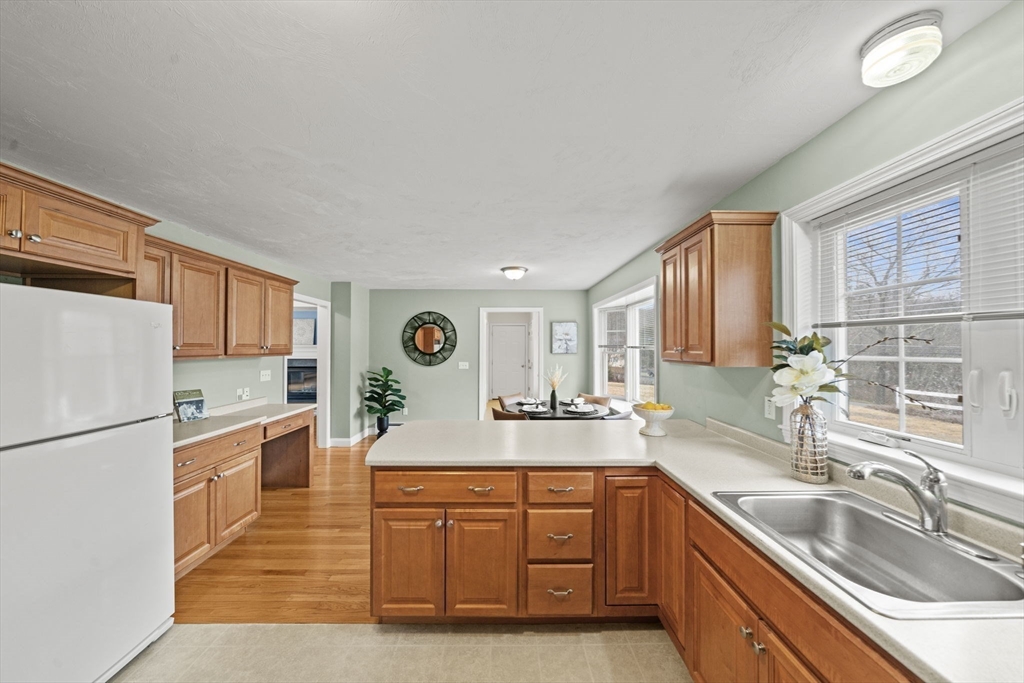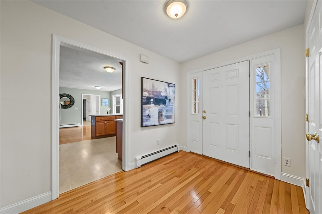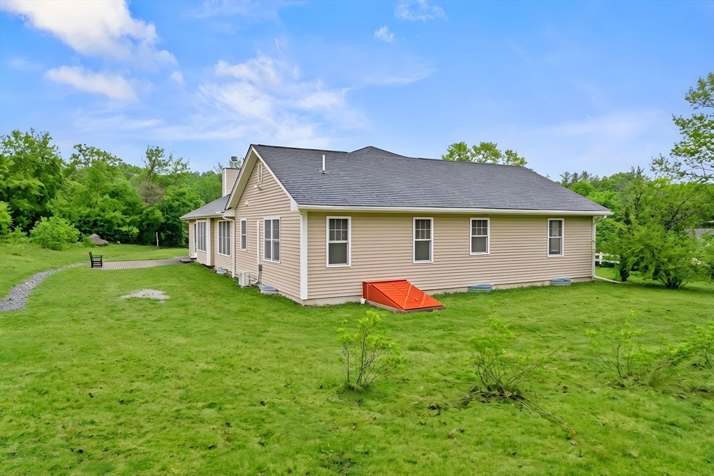 Welcome to this meticulously maintained, one-owner ranch set on a picturesque 1.5 acres of land and designed for easy one-level living. Fully accessible, the home features a thoughtfully integrated ramp and over-sized doorways that blend seamlessly into the design. Step into a bright, light-filled kitchen with generous cabinetry and an inviting eat-in dining area complemented by a beautiful bay window, perfect for morning coffee or casual meals. The living room offers a cozy fireplace and sliding glass doors leading to a lovely patio, creating an ideal indoor-outdoor flow for entertaining. The spacious dining room is perfect for hosting family gatherings, while a versatile bonus room can serve as a home office, playroom, or additional living space. The expansive primary suite includes a walk-in closet and private bath, providing a peaceful retreat. Set on a beautifully maintained lot, this home also features a two-car garage and a location that offers both privacy and convenience.