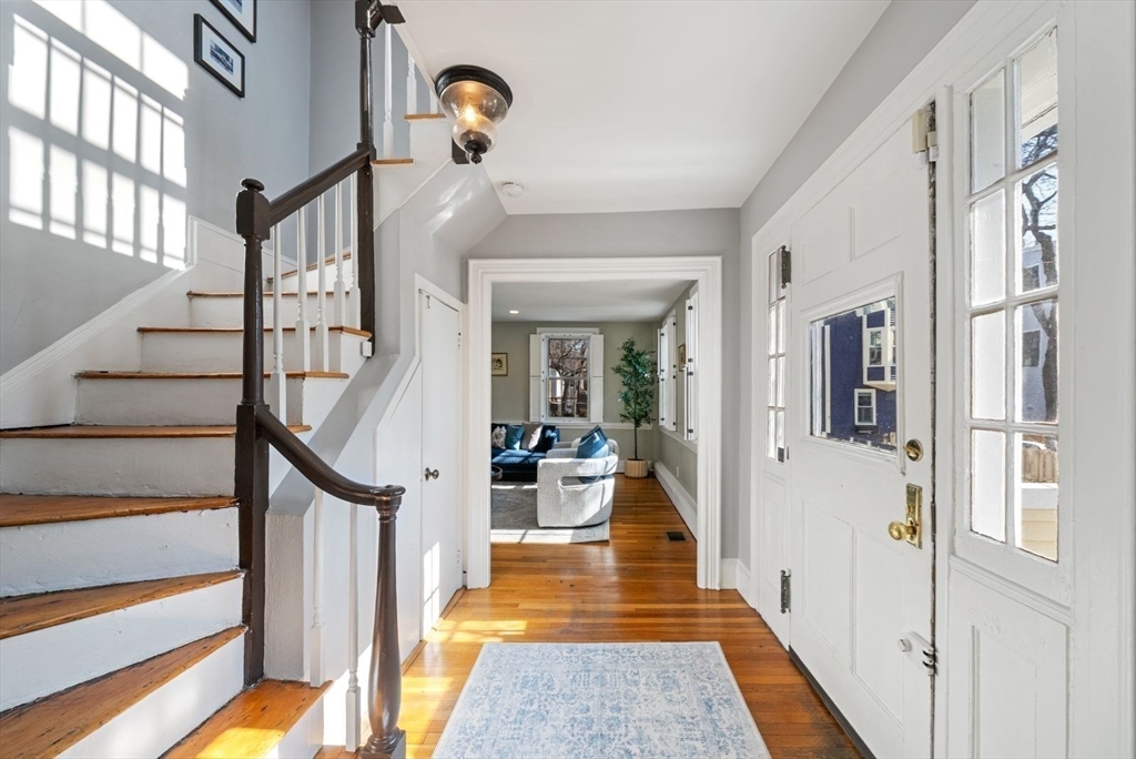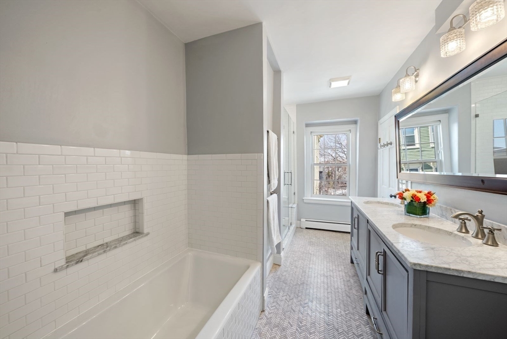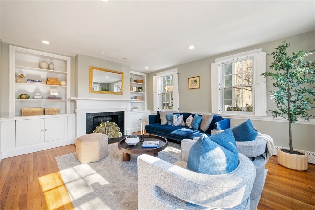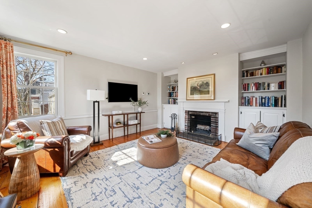This sunny, separate entrance home is tucked away on a tree-lined street and exudes a “farmhouse in the city” feel, with 3+BR/2.5BA, 1785sf, 1-car driveway, and views of the Monument. A spacious foyer leads to the eat-in kitchen featuring granite countertops, stainless appliances, subway tile backsplash, white cabinetry and exposed brick fireplace. A walk-in pantry w/wine chiller provides excellent storage. The kitchen flows into an expansive, sun-filled living area, w/fireplace, white mantel, custom built-ins and half BA. The cozy, second floor family room w/wood burning FP features a handsome mantle and custom built-ins, and flows to a charming bedroom w/FP, corner exposure and en-suite BA. An elegant primary suite and addt’l bedroom/office encompass the top floor. The primary includes a custom walk-through closet leading to a beautifully renovated full BA w/marble topped double vanity, frameless shower, and soaking tub. A garden-patio w/mature plantings completes this special home.