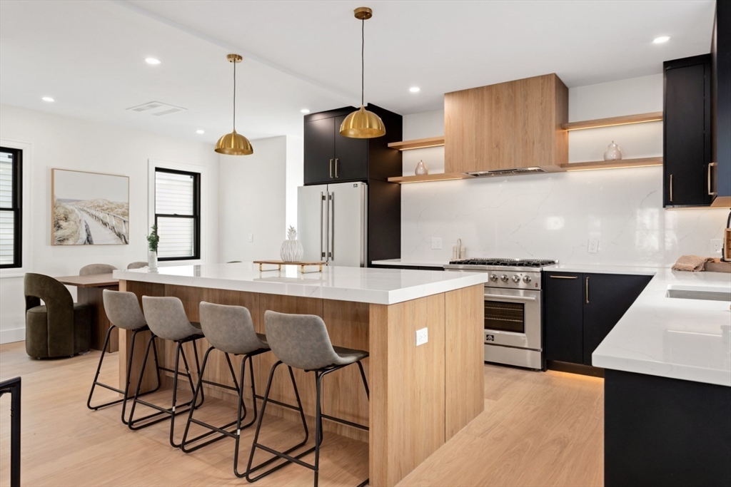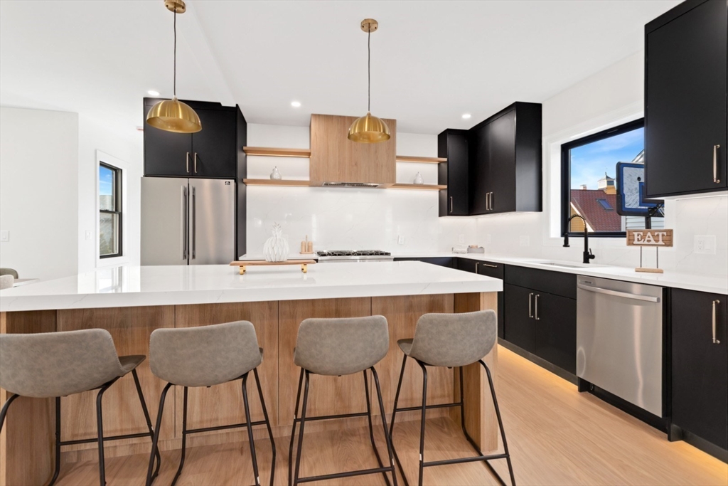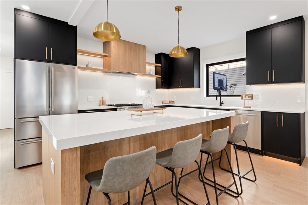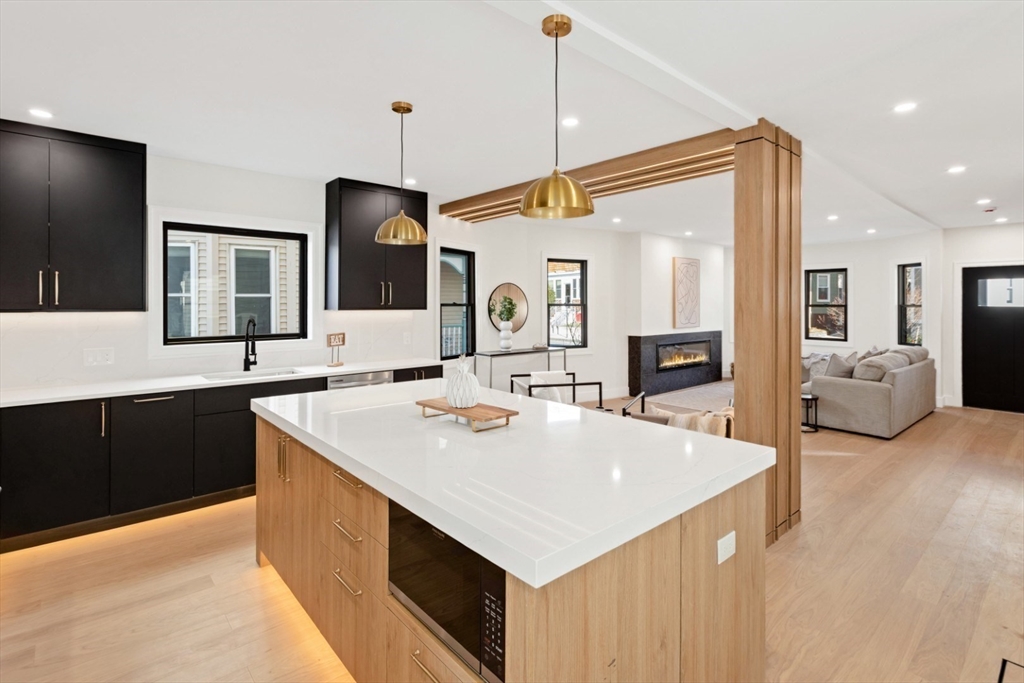 Stunning newly renovated condo located in the desirable Magoun Square neighborhood of Somerville. This beautiful home features 4 bedrooms and 3 full bathrooms with a bright open-concept layout perfect for modern living and entertaining. The living area offers a cozy fireplace, hardwood floors, recessed lighting, and large windows that fill the space with natural light. The stylish kitchen includes a spacious island and flows seamlessly into the dining and living areas. Additional highlights include central air, in-unit laundry, and elegant finishes throughout. Enjoy outdoor living with a garden area. Conveniently located near public transportation, the Green Line, shops, restaurants, parks, and bike paths. Exclusive use of spaces for cars, bikes, motorcycles, chairs...First showings at the open house on Sat- Sun 11:00-1:00 pm.