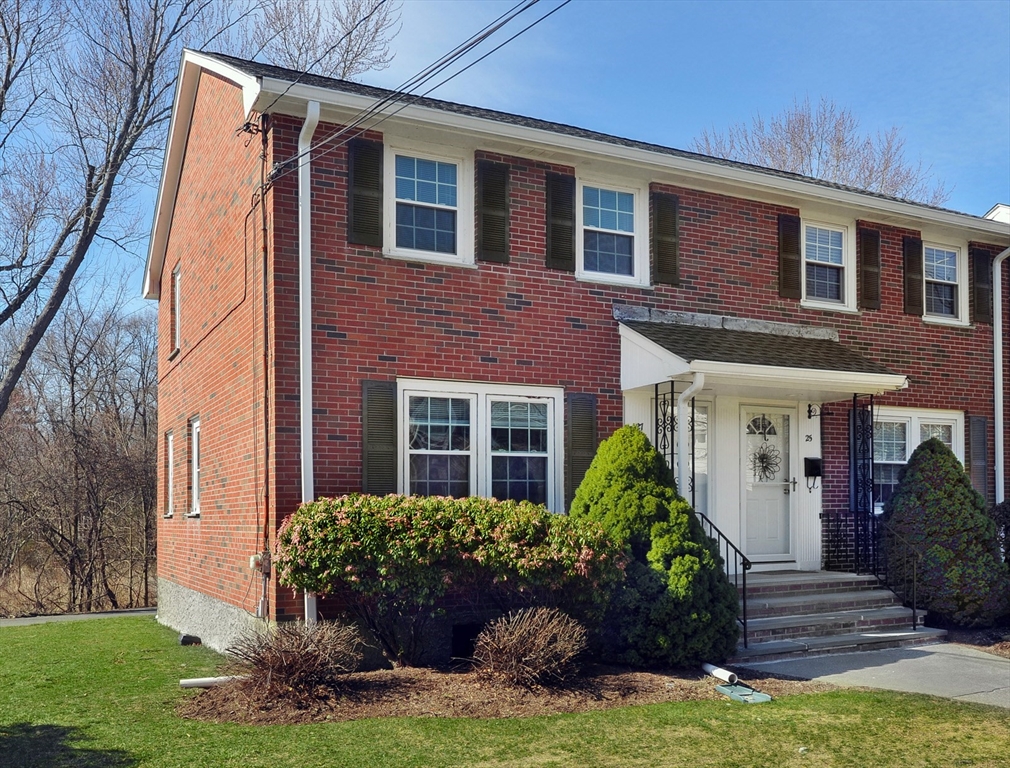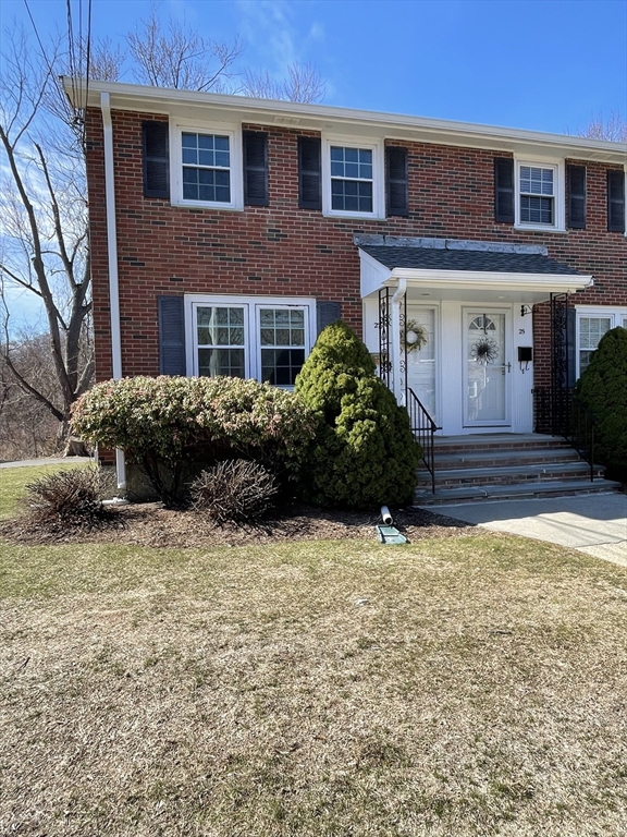 Opportunity Knocks at Ames Estates! Discover the perfect blend of location and potential in this classic brick townhouse. Situated as a prime end unit on a quiet cul-de-sac, this 2-bedroom, 1.5-bath home welcomes the morning sun through its extra windows, filling the first floor with natural light. While the kitchen and baths are ready for your creative touch, the home features beautiful hardwood flooring throughout the main living levels, offering a solid foundation for your custom upgrades. Property Highlights:•Expandable Living Space: The full basement currently houses the laundry area and the water heater was replaced in 2020. Take inspiration from neighboring units that have refinished this level to create a custom media room, home office, or gym. Enjoy the ease of off-street parking with ample space for residents and guests.• Low-Maintenance Living: A self-managed HOA ensures low monthly fees. Ames Estates is located close to 2 Dedham exit/entrances to route 128/95.