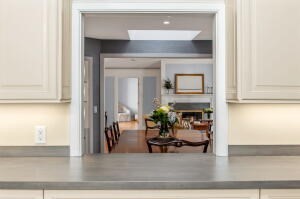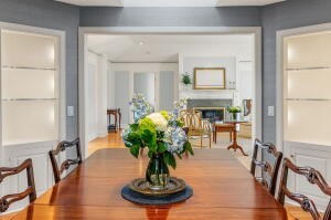This two-bedroom, three bath condominium, part of the historic Christopher Ryder House, blends timeless architecture with elegant design. The residence features high ceilings, wood floors, large windows, and generously scaled rooms. The foyer opens to a grand living room with gas fireplace flowing into the dining area and adjoining pantry, with views into the chef’s kitchen featuring a Thermador gas range, double ovens, built-in coffee machine, Sub-Zero refrigerator, and laundry area. A sunlit den with built-ins and full bath opens to the patio. The primary suite offers a walk-in closet, double vanity bath, and patio access, while the second bedroom includes its own bath and built-in bench. Two enclosed patios—one with outdoor kitchen and fireplace—and a two-car garage complete this offering. Close to Ryder’s Cove, Eastward Ho, Wequassett Inn, Chatham, and Orleans.