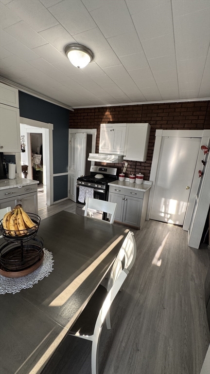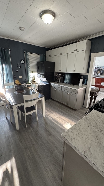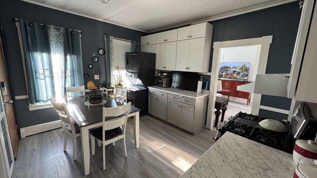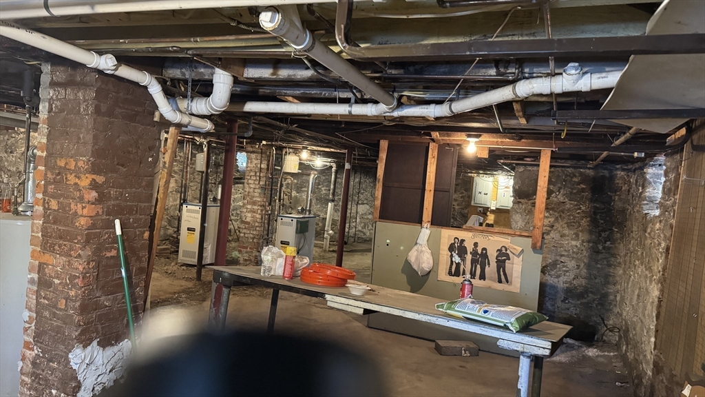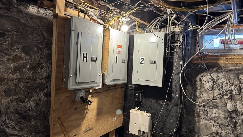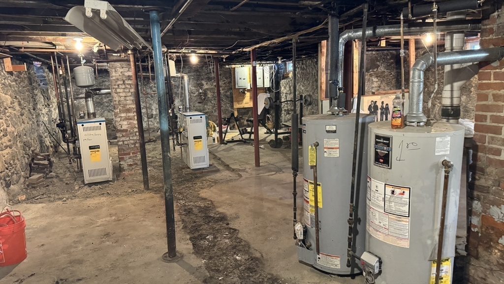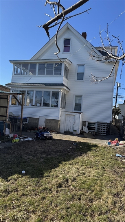 Don't miss this centrally located two family house with plenty of space for a large family or investor. Centrally located. Two enclosed porches and finished third floor with full bathroom. Two separate circuit breaker electric systems and two separated gas baseboard heating systems. Vinyl siding and vinyl windows. One car garage plus five parking space and back yard. Two de-leaded paint certificates. The first floor Apartment is a handicap accessible unit with ramp and shower..The basement has a high ceiling and regular interior and exterior entrance with potential for electrician, plumber or contractor in needs of basement storage. The property has a potential for a child day care or home business office. First floor apartment will be vacated at closing Property is being sold As Is as seen. Buyer to assume solar panel contract.