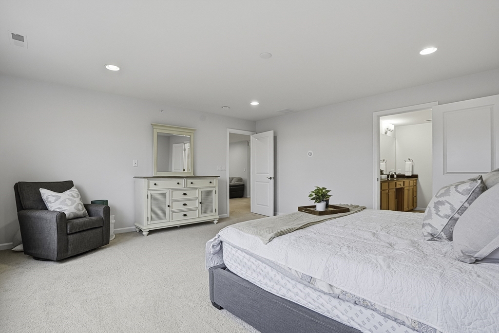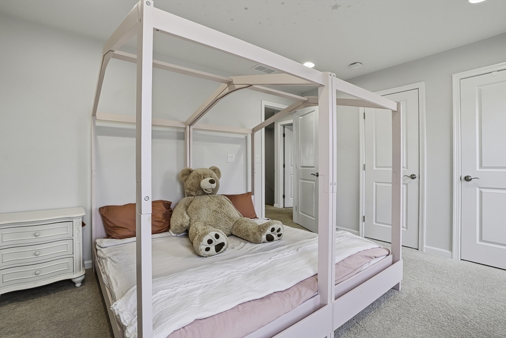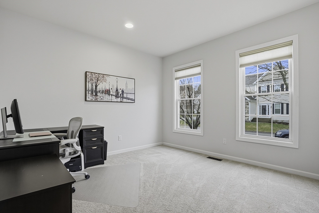 Sun-drenched, north-facing, 11 room residence in coveted Legacy Farms South offering 4,177 sq. ft. of beautifully curated space on 3 levels. Newly updated designer white kitchen features vented gas cooking, floating shelves, custom walk-in pantry, soft close & an expansive breakfast island that flows seamlessly to dining area, Trex deck & oversized family room w striking gas fireplace. Formal living room along w a private office ideal for remote work. Upstairs, 3 spacious bedrooms & versatile loft. Serene primary suite w expansive dual sink vanity, spa-inspired rain shower & inspiring 314 sq.ft. boutique dressing room. Finished lower level offers rec room, home theater, guest suite w full bath & gym/office. Owned solar panels w net 0 electric bill & EV charger. New H20 heater, Nest T-stats & voice-activated Hue lighting. Two-car garage w wall storage & epoxy floors. Entire home freshly painted & ready to enjoy! Sidewalks lead to top schools & downtown. Close to 495/90 & commuter rails!