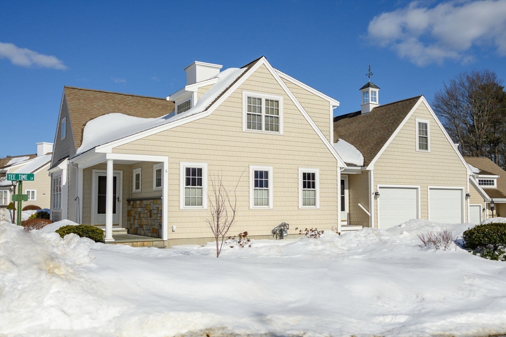 First public offering, 6 Tee Time Ln is ideally situated & features numerous custom upgrades throughout. Built in 2005, this thoughtfully designed home offers an open floor plan w/ 2 en suite bdrms & addl half bath. A detached corner unit, filled w/ nat'l light. The spacious kitchen w/ granite counters, SS appliances, & peninsula seating, flows to the dining area & a bright four-ssn family room. From here, step out to a lrg, pvt deck—perfect to relax or entertain. The LR features cathedral ceilings, plantation shutters, custom built-ins, & gas FP, creating an ideal space. The 1st floor primary suite offers convenience & comfort, complete w/ walk-in closet & updated bath - tiled walk-in shower w/ a frameless glass enclosure. Upstairs, a loft area provides add'l living or office space, along w/ a generously sized 2nd bdrm w/ WIC & adjacent full bath. Add'l highlights include a full-height bsmt & unfinished space above the attached 2-car garage, offering great storage & future expansion.