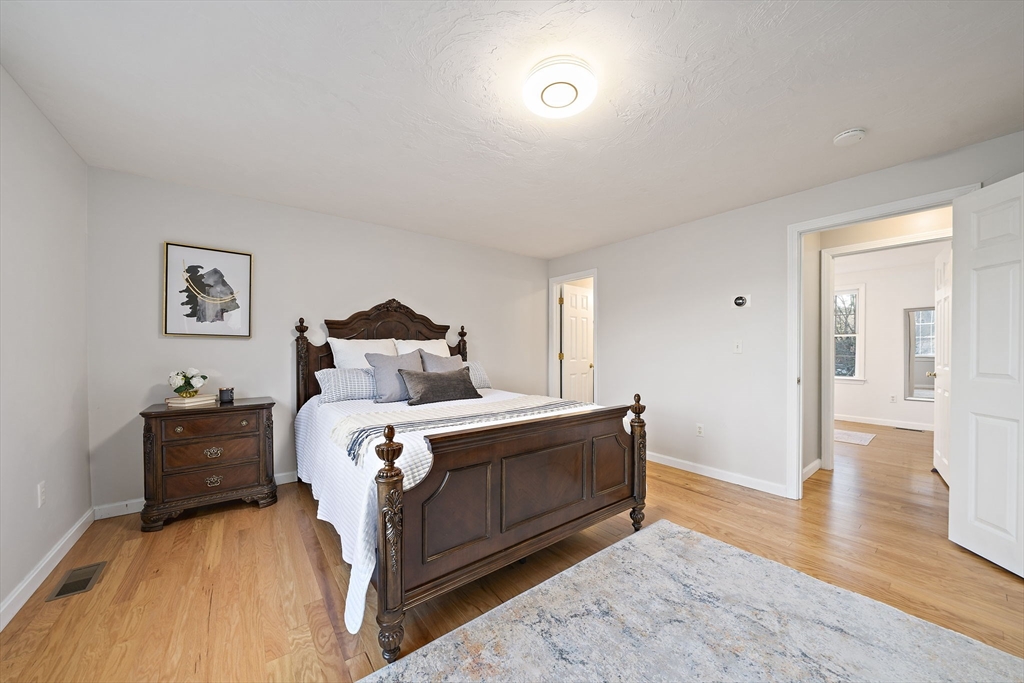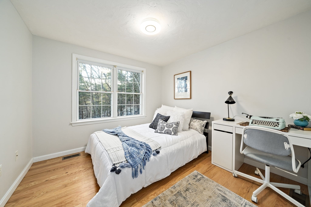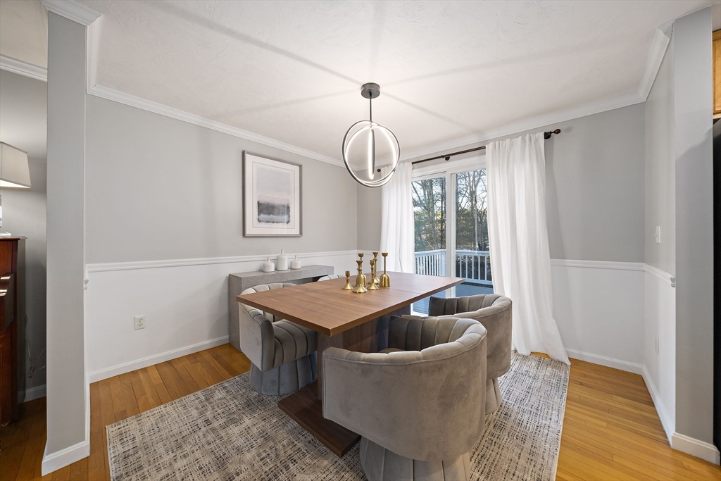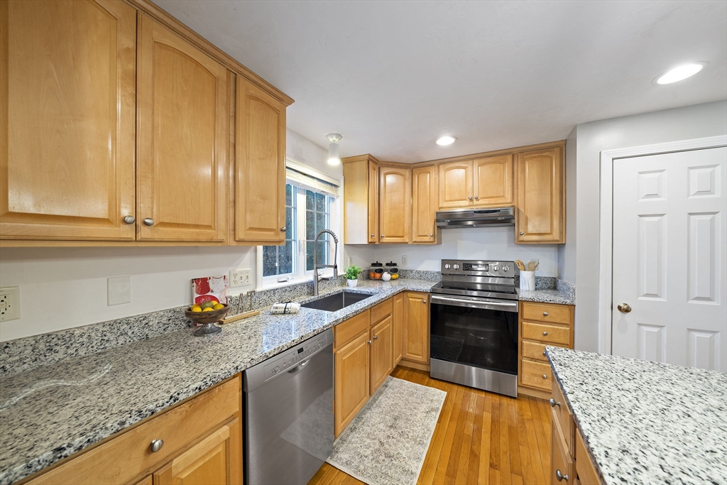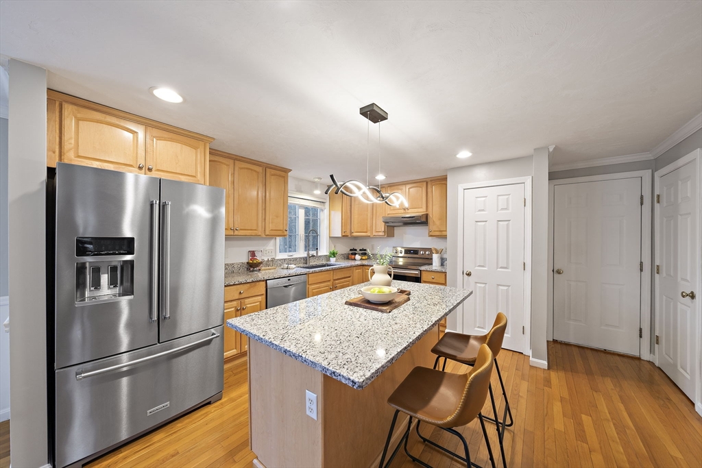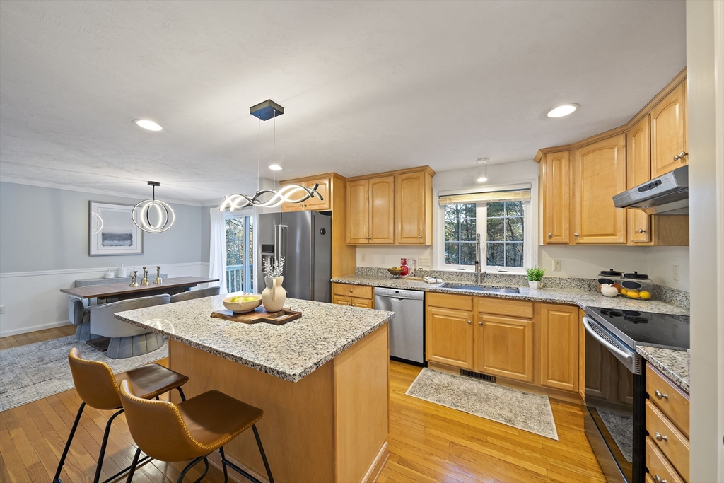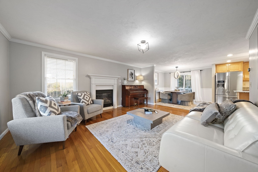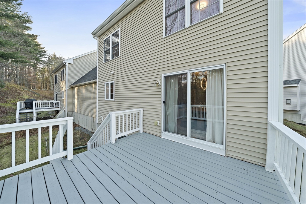 Showcasing the best of Boxborough Meadows, this young attached Colonial features an inviting front porch and open-concept layout. The first floor flows from the entry hall to a living room with fireplace, while the kitchen offers a center island, maple cabinetry, and granite countertops. The dining area opens to a slider leading to the rear deck overlooking the backyard, perfect for outdoor entertaining. Upstairs, three generously sized bedrooms plus a versatile office/den that can easily serve as a fourth bedroom, primary suite with walk-in closet and private bath, second full bath, and hardwood floors throughout. An attached garage and full walk-out basement with three full-size windows offer excellent expansion potential. Set on a quiet cul-de-sac less than a mile from the elementary school, playgrounds, and library, with easy access to Route 2, I-495, and two commuter rail stations — all within the award-winning Acton-Boxborough school district.