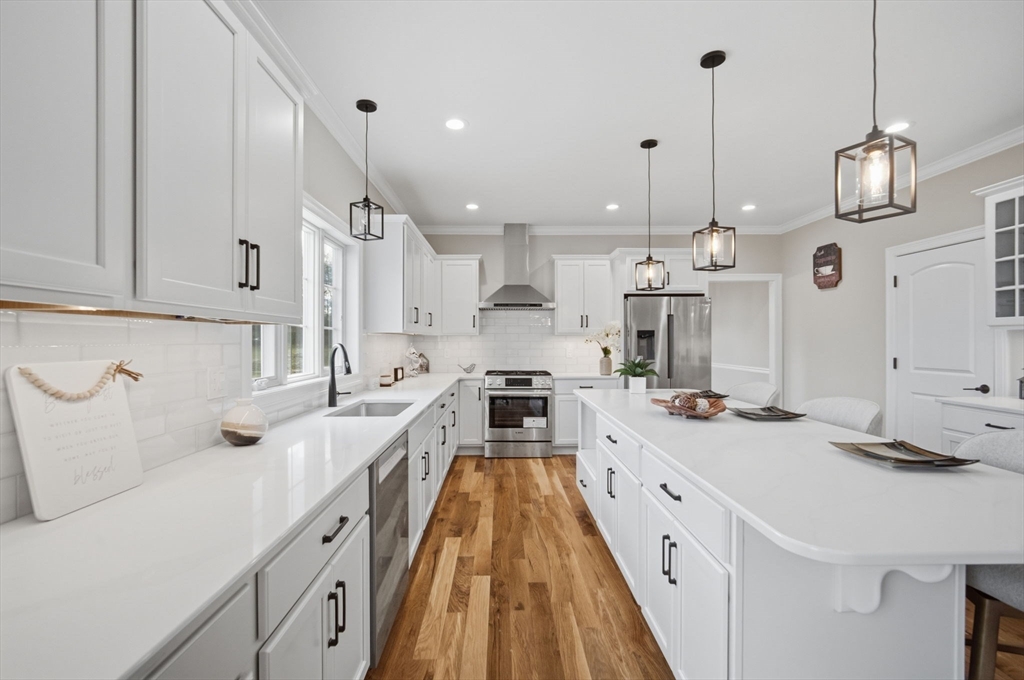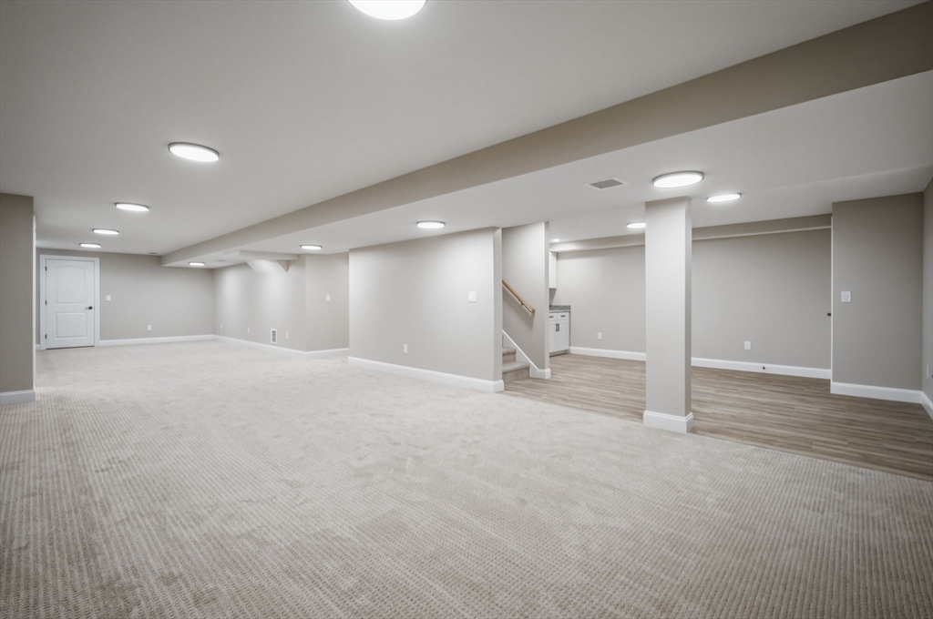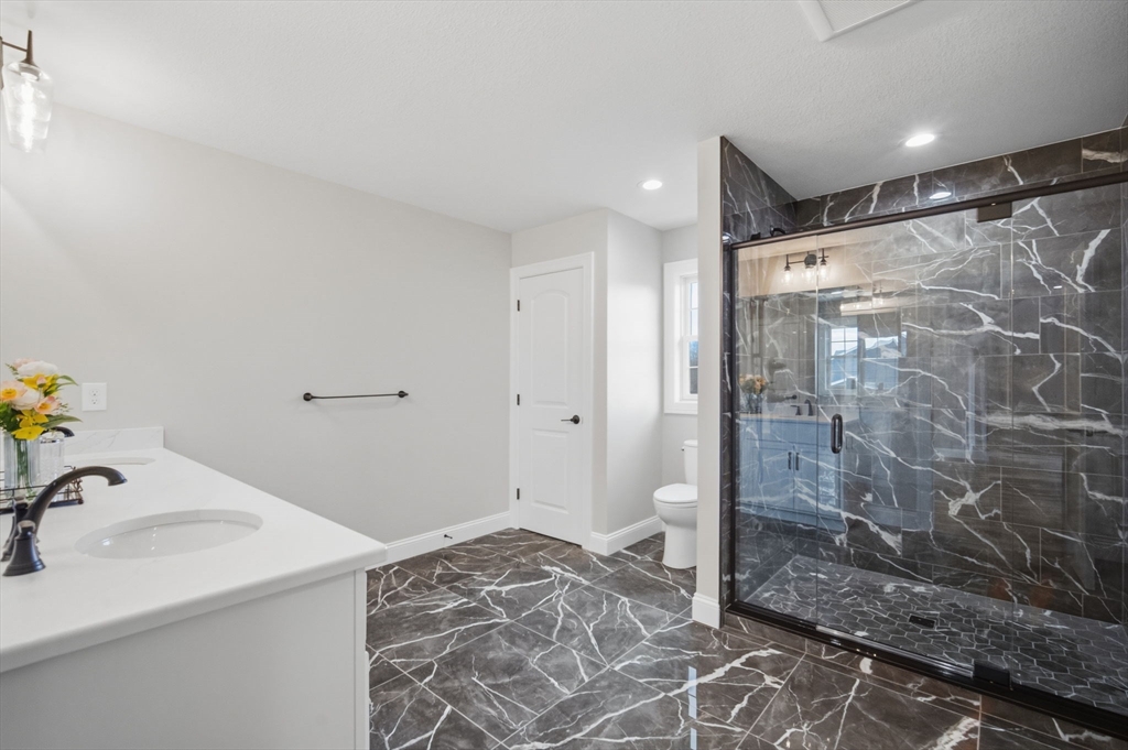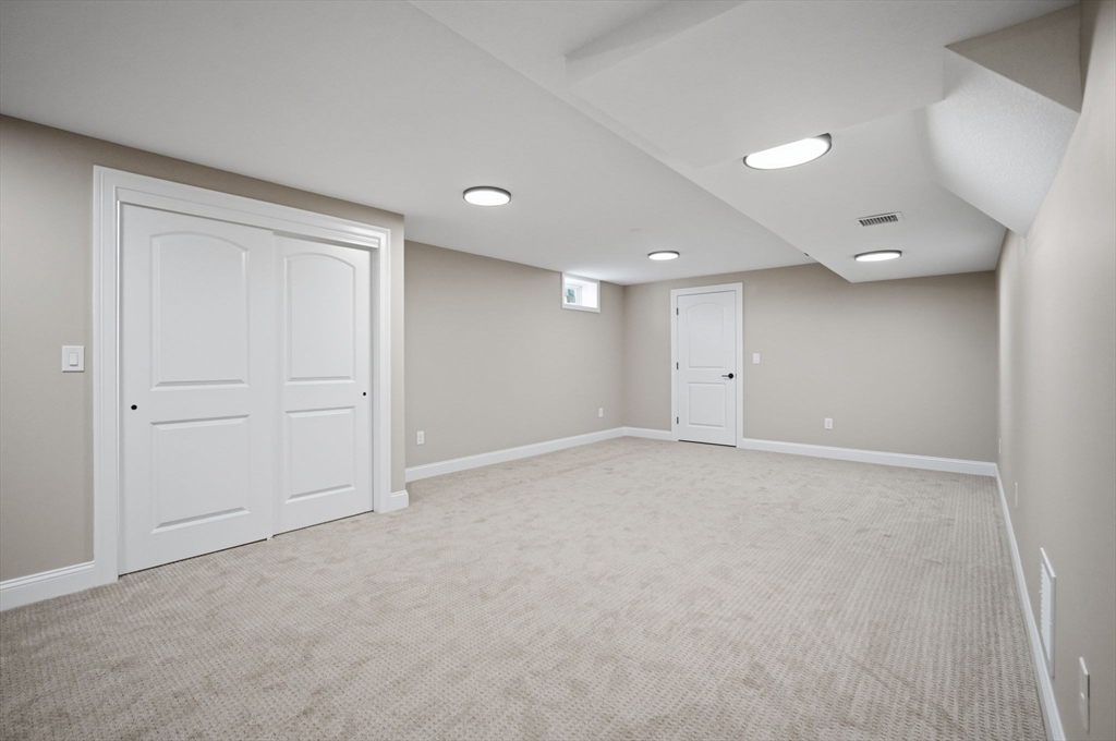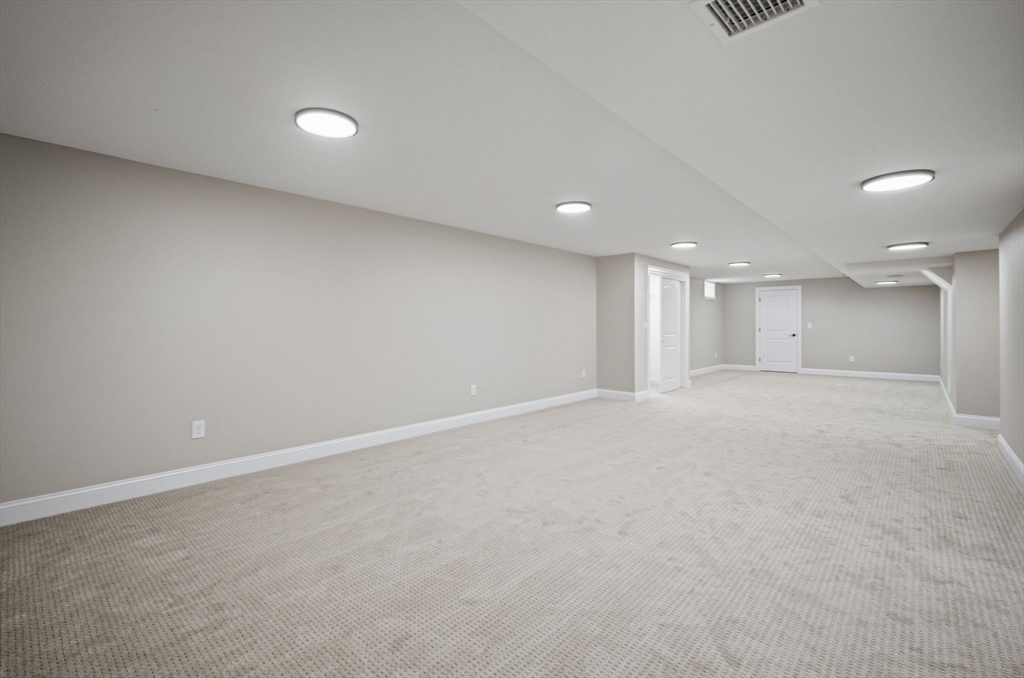 This beautifully designed 4-bedroom home showcases elegant features, generous space, and thoughtful upgrades throughout. A dramatic grand foyer staircase creates an impressive first impression as you enter the home. The main living area features white oak floors, a large eat-in kitchen, formal dining room, large living room w/gas fireplace and private formal office. The kitchen includes an oversized center island and built-in glass cabinetry. In addition to the 4 bedrooms, the second floor also offers a well-equipped laundry room w/folding counter, utility sink, and cabinetry. The primary suite offers a massive walk-in closet/dressing room w/built-in shelving and counters, white-oak wood floor, extra storage and a luxurious bathroom featuring a soaking tub and marble tiled over-sized shower. The finished basement expands the living space with a bar/kitchen area, full bathroom and a large carpeted open area. The property includes an irrigation system completing this well appointed home.