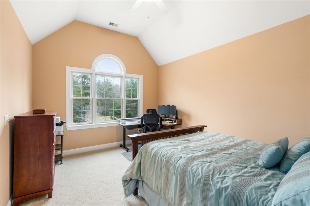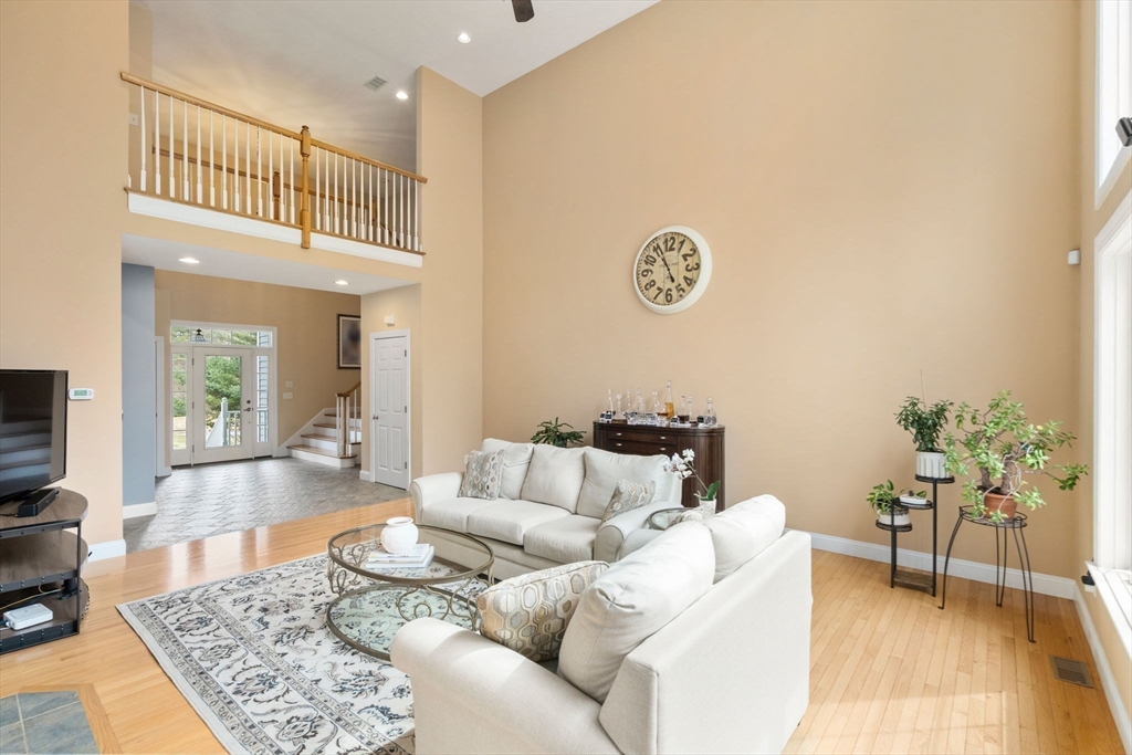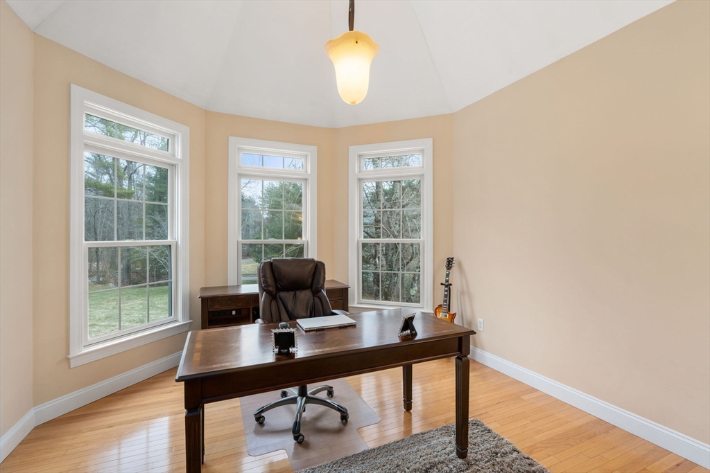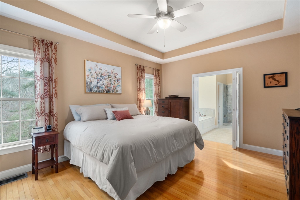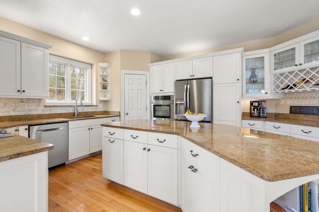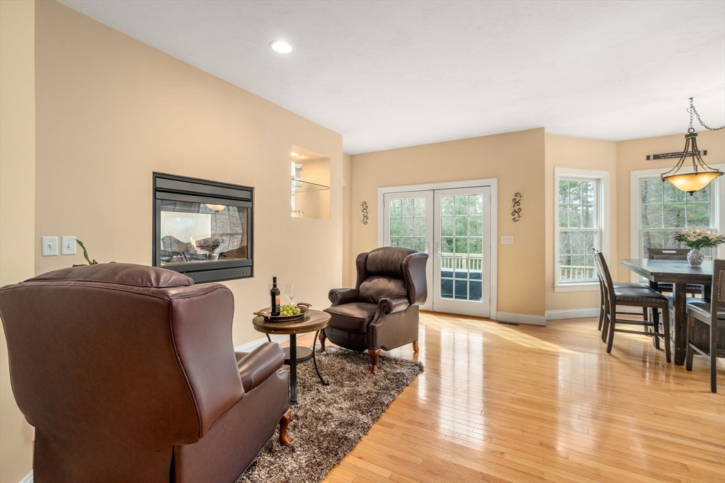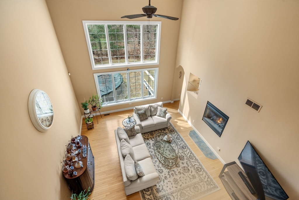 Privately set on a wooded cul-de-sac, custom colonial offers indoor-outdoor living. Situated on 4+ acres w/expansive lawn, mature plantings & irrigation, grounds are complemented by a wraparound deck, patio, hot tub & heated above-ground pool, creating a retreat-like setting. Interior is filled w/natural light & defined by an open, airy layout w/hardwoods thru-out 1st flr. 2-sided fireplace connects LR, framed by a dramatic wall of windows, to kitchen, creating a seamless flow for everyday living. Kitchen is well-appointed w/ lg island, gas cooktop, stainless appliances, pantry & sunlit breakfast nook. DR: detailed millwork & bay window adds an elegant touch. Primary is privately positioned just above the main level & features a dedicated office/sitting rm, tray ceiling, walk-in closet & spa-inspired bath. 2nd floor en-suite bedrm w walk-in closet & vaulted ceiling. 2 additional bedrms share a jack-jill bath. Bonus rm, Side-entry mudrm w/laundry. Walk-out basemnt w/potential to finish.