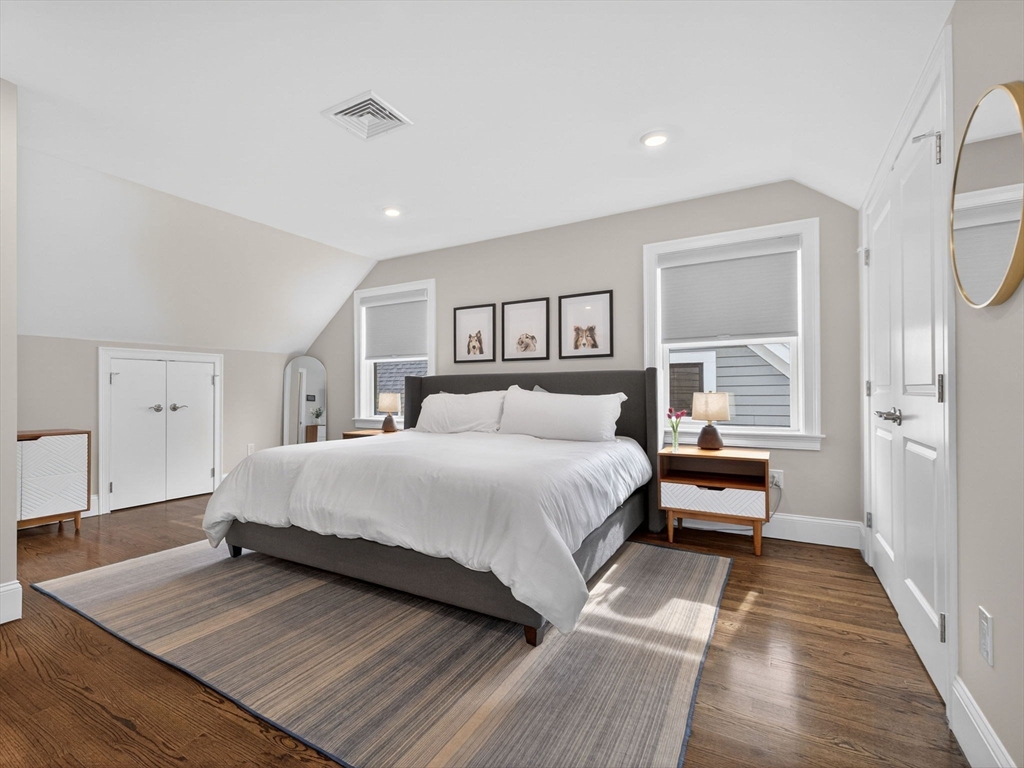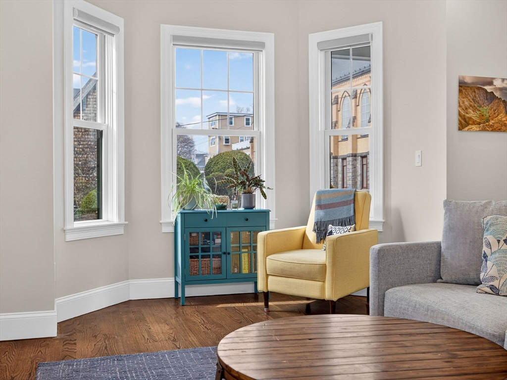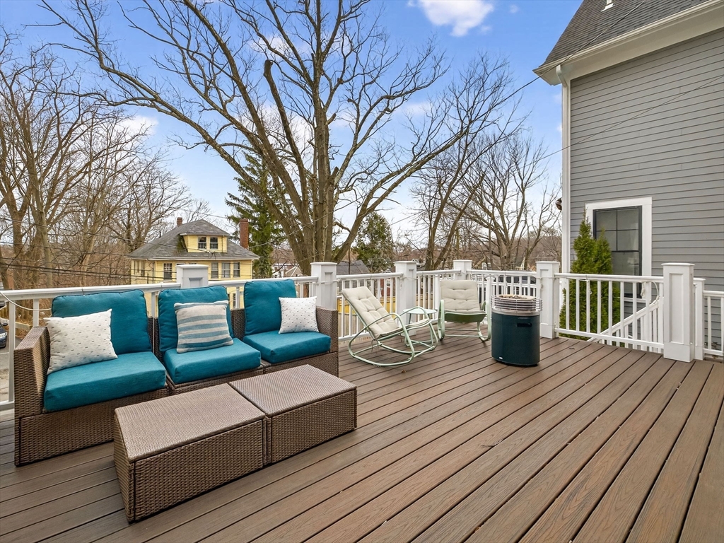 Welcome home to 49 Brown Avenue. Perched atop Prospect Hill, this stunning townhouse lives like a single-family - just blocks from the buzz of Roslindale Village. Oversized windows flood the open main level with light, highlighting rich wood floors and soaring ceilings. The chef's kitchen delivers white shaker cabinets, stone countertops, and a huge island that flows seamlessly to a private deck. Upstairs, three generous bedrooms with custom built-ins share a showstopping marble bath with a large soaking tub. The penthouse primary suite is your sanctuary: solid stone finishes, en-suite bath, and double closets. The basement adds rare bonus storage with real expansion potential - a true edge in the Boston market. Private deck. Green space. Dedicated parking. Five years young and still feels brand new. Roslindale living at its finest.
