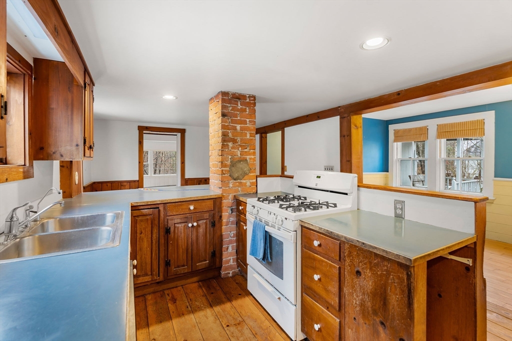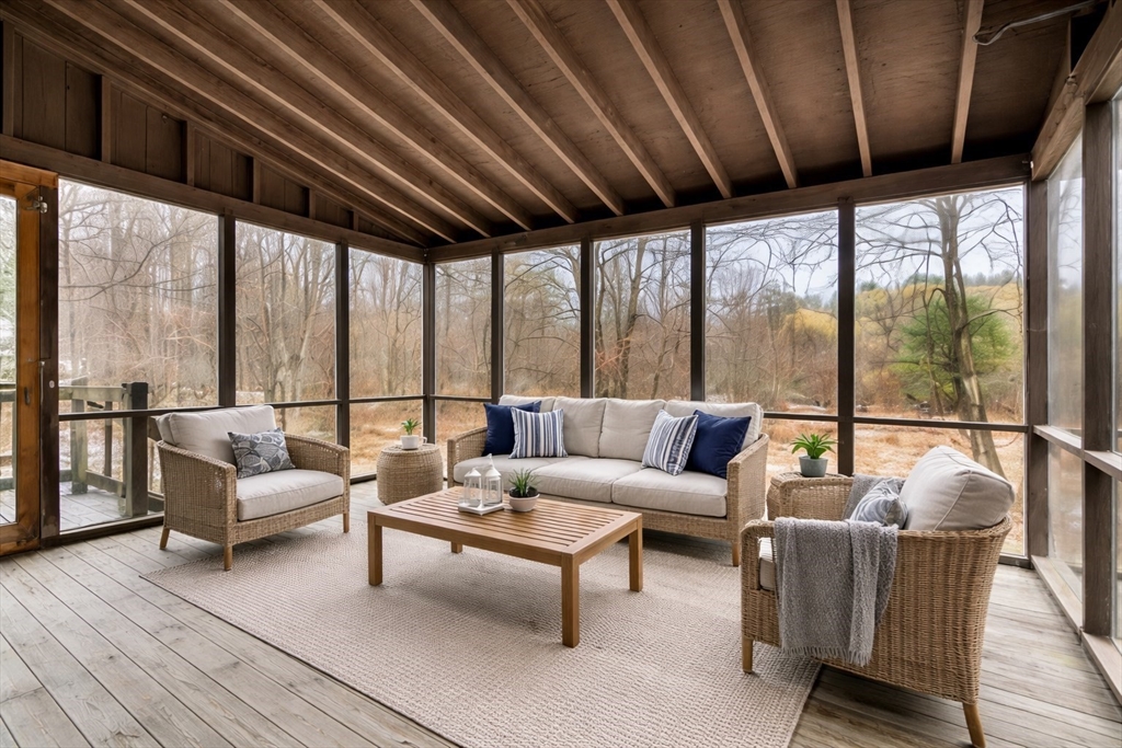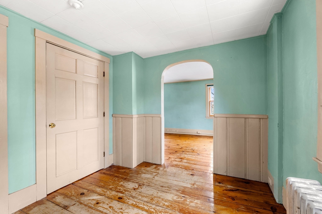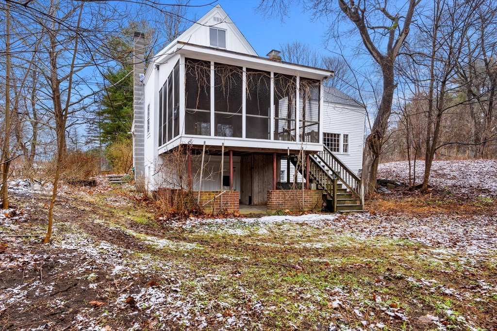 Welcome to 104 Mill Street,Groton!This spacious farmhouse style home offers great potential and excellent location! The 1st floor features a functional layout with a mix of living spaces, including a family room with wood stove, living room, open kitchen, and sun-filled dining area, all with wood flooring.A 1st floor primary bedroom includes two closets, and access to a screened porch overlooking a private natural setting.First-floor laundry adds convenience.The 2nd floor offers four additional rooms and a full bath, providing flexibility for bedrooms, office, or storage.A detached garage with finished studio above adds bonus space, perfect for a yoga studio, gym, or office space.The lot is naturally landscaped, currently hidden under nature’s insulation, with early blooms just beginning to emerge, along with mature plantings and a path leading to a brook.Great location close to Groton Center and the rail trail.A solid opportunity to build equity in Groton.