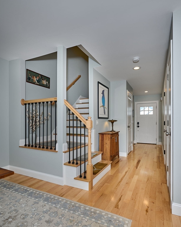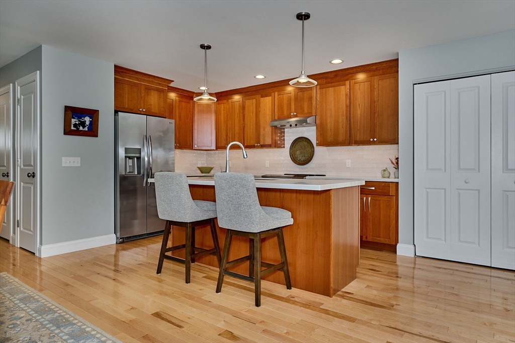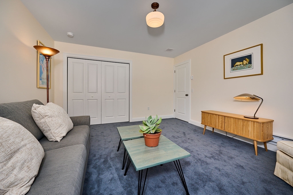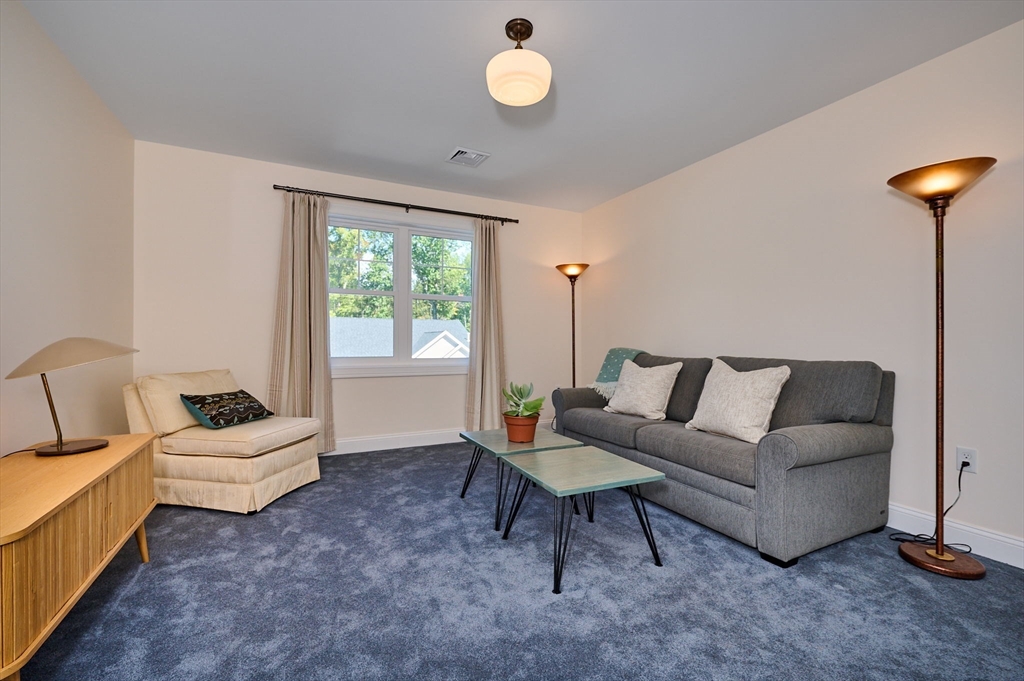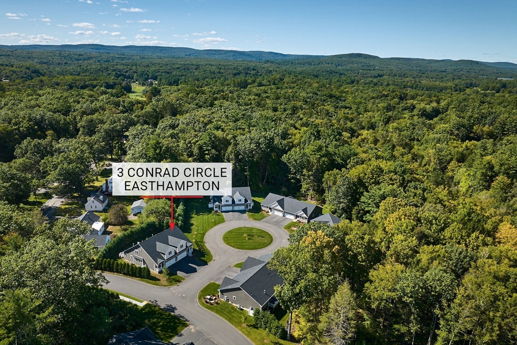 Immaculate 3 bedroom, 2.5 bath condo w/first floor en-suite bedroom + private deck in turn key condition! This light-filled home was built in 2023 + reads as brand new construction. Seller upgraded to hardwood floors though out first floor, added cherry cabinetry + corian countertops which bring warmth + character to the well equipped kitchen. First floor includes propane fireplace with beautiful tile surround. Spacious first floor en-suite bedroom rounds out the first floor. Second floor includes 2 additional bedrooms w/wall to wall carpeting, full bath + large bonus room. Generous basement presents opportunity to create more living space, additional storage, exercise area, etc. Owned solar panels produce more electricity than used. Electric heat pump with propane back up, 2 car garage w/interior + exterior access allows for easy entry and exit. Conrad Circle is close to downtown Easthampton, and all that it has to offer, w/easy access to 141 + beyond. See list of improvements.