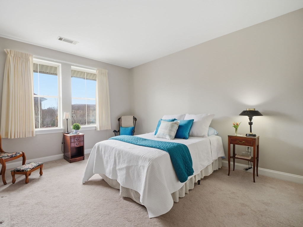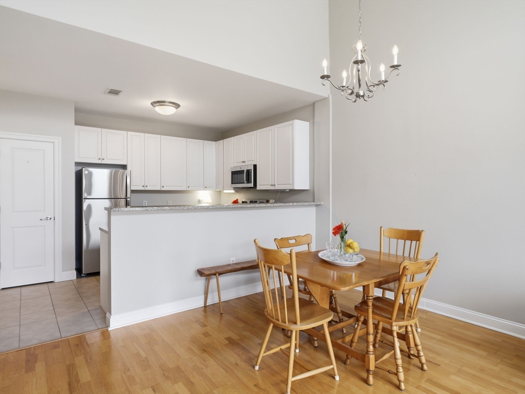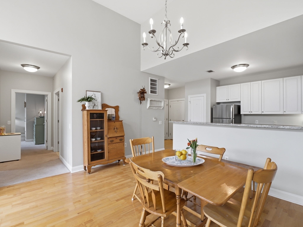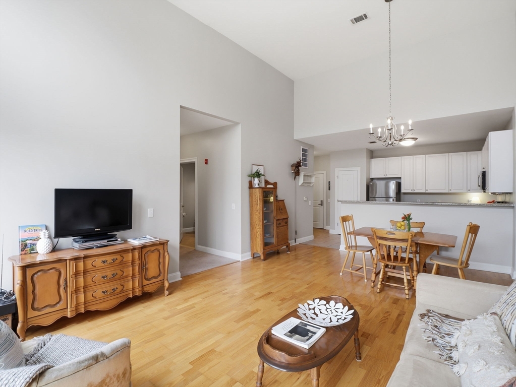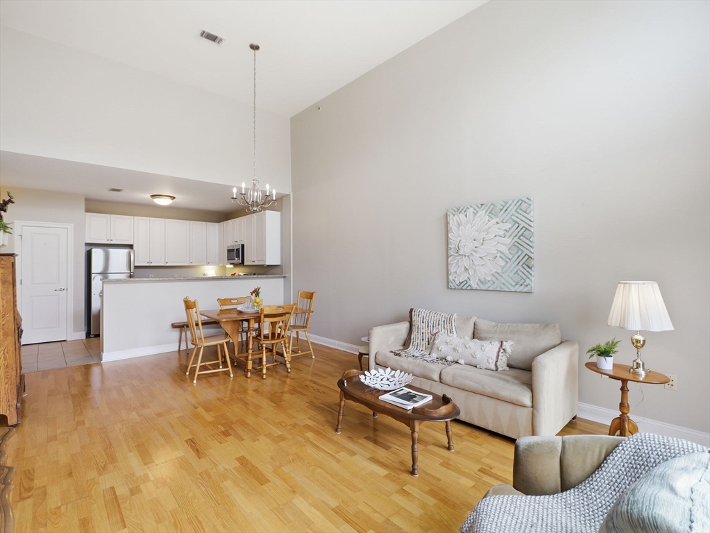 Experience top-floor living at the desirable Oakridge Village in North Andover. This well-maintained penthouse features an open-concept kitchen, dining, and living area with soaring cathedral ceilings and oversized windows that fill the home with natural light. The kitchen offers granite countertops, stainless steel appliances, and a convenient pantry closet, ideal for everyday living and entertaining. The thoughtfully designed layout includes two spacious bedrooms and one and a half baths, providing comfort and flexibility. Additional highlights include assigned parking and elevator access. Residents enjoy wonderful amenities including a clubhouse, fitness center, and indoor pool. Conveniently located near shopping, restaurants, Route 93, and Harold Parker State Forest, this home offers the perfect blend of comfort, convenience, and outdoor recreation.