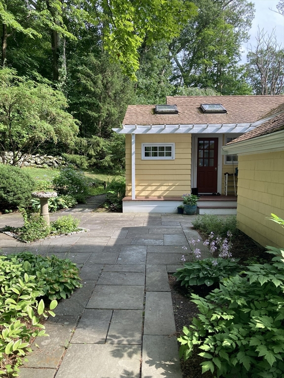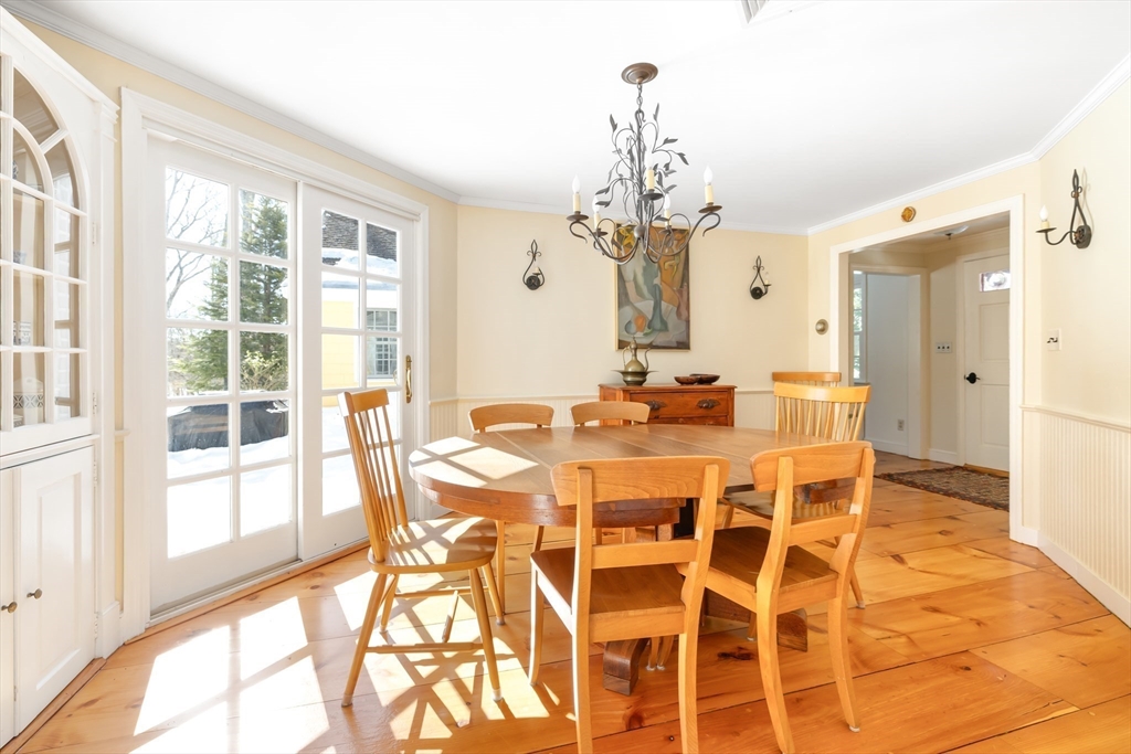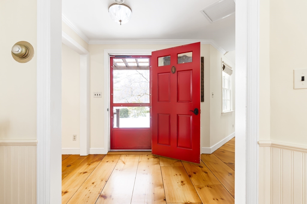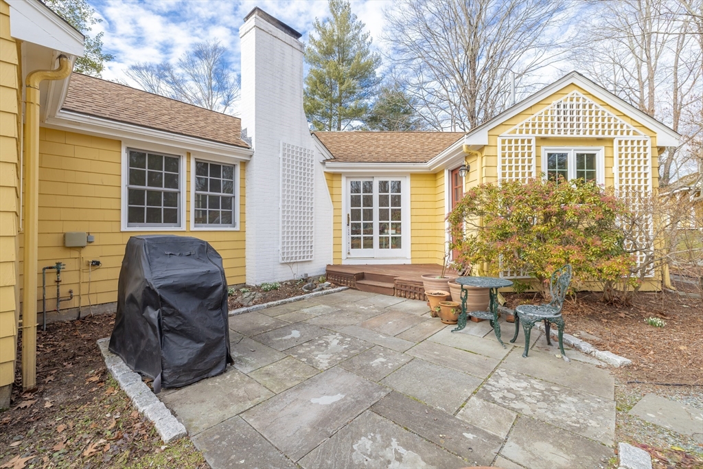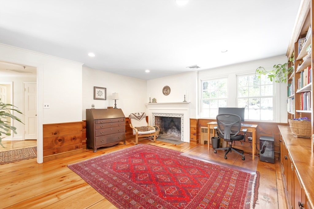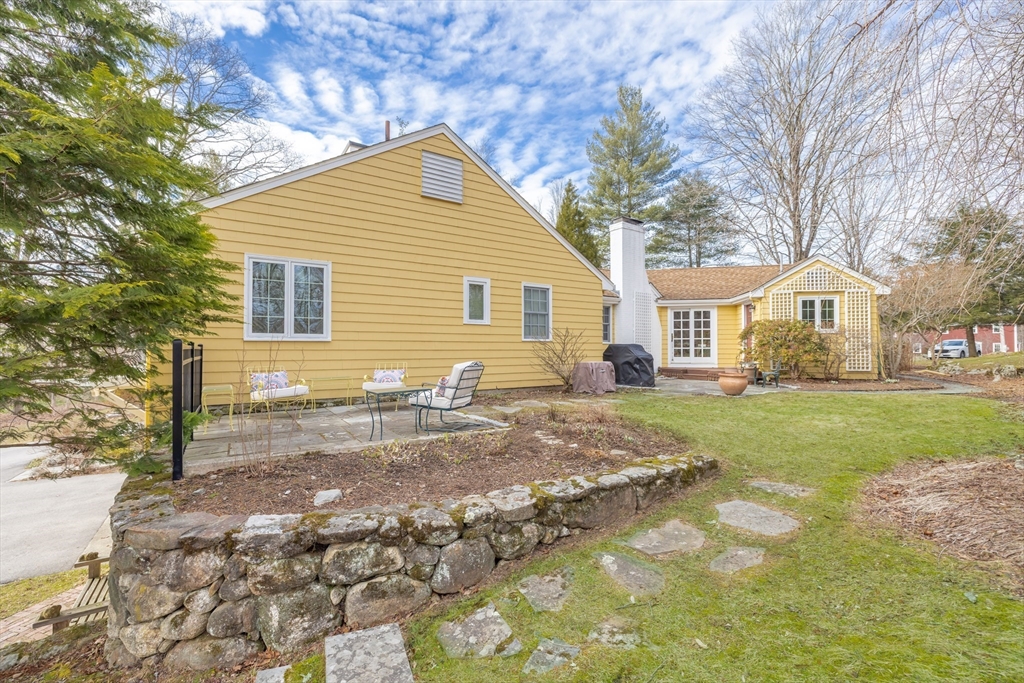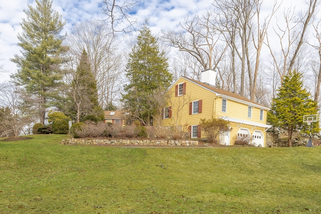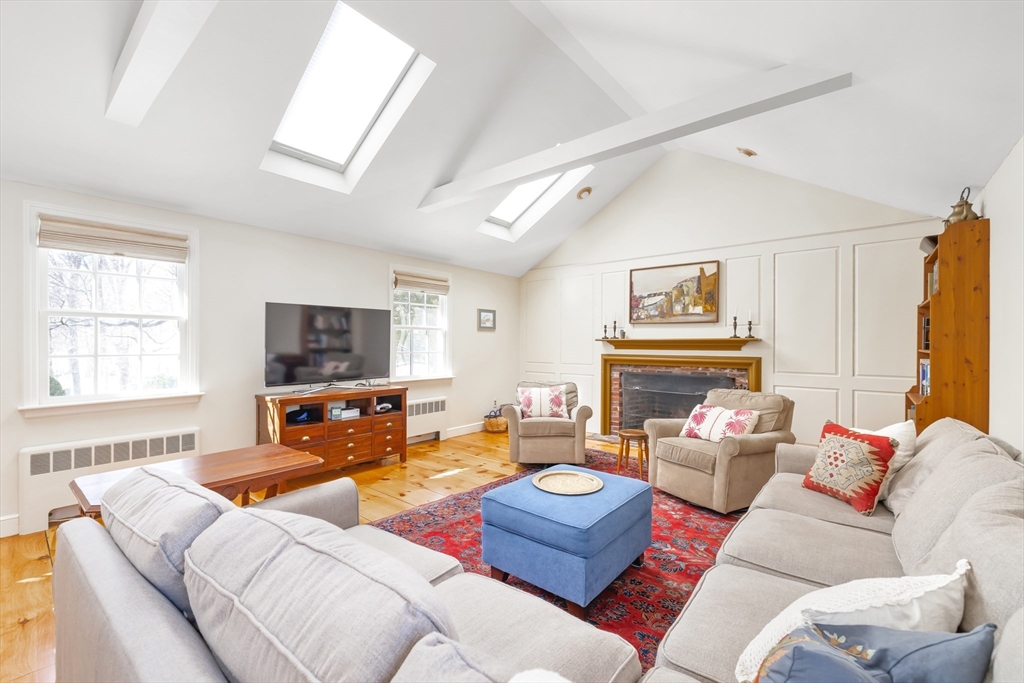 Set on a scenic country lane on 2+ private acres, this distinctive home blends timeless charm with thoughtful updates. Wide-plank pine floors and architectural details enhance the beautiful interior. The light-filled living room features a vaulted ceiling w/ exposed beams, skylights, and fireplace. A cozy den/office with custom built-ins and 2nd fireplace provides flexible living space. 4 br's are grouped in a private wing, including a 1st FLOOR PRIMARY SUITE with 2 walk-in closets and an updated bath. The renovated chef’s kitchen and sunny dining room open to bluestone patios for seamless indoor-outdoor living.The finished Lower Level offers a third fireplace, mudroom, laundry, 1/2 bath, and bonus room with direct exterior access. Magnificent grounds showcase mature plantings, stone walls, a water feature, and expansive lawn space. Located in sought-after Sherborn, known for top-ranked schools, open space, trails, and the popular Farm Pond recreation area. A truly special home!