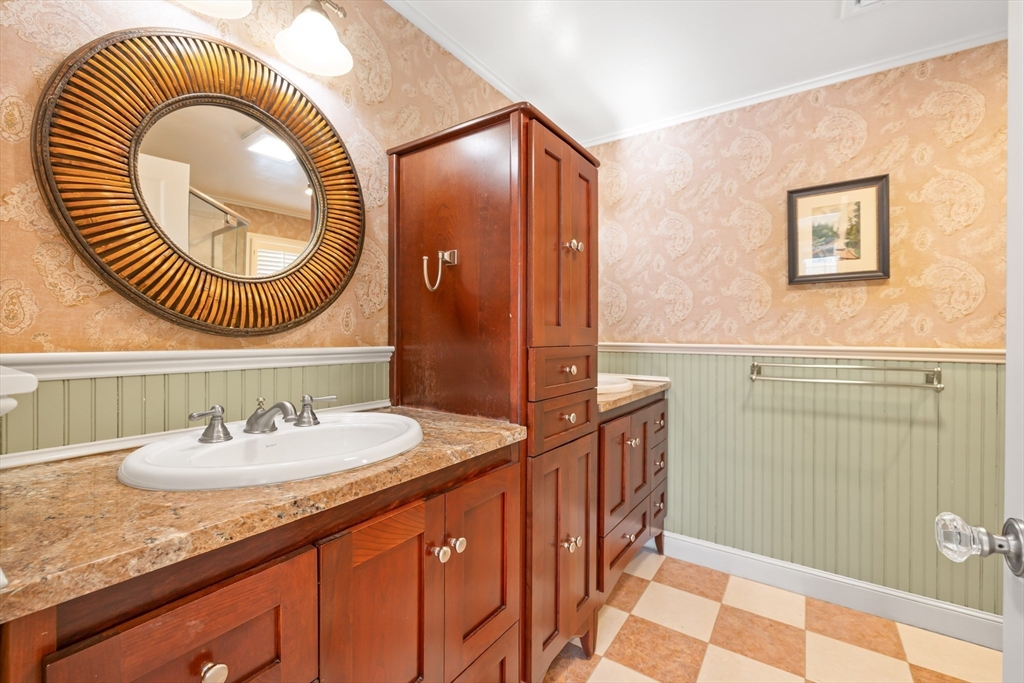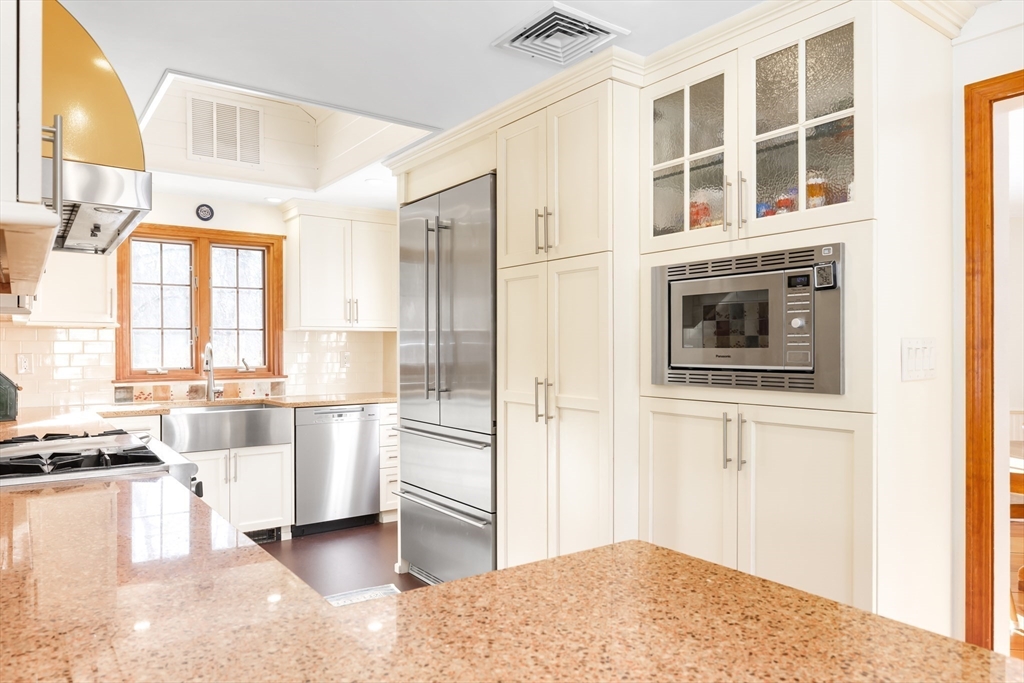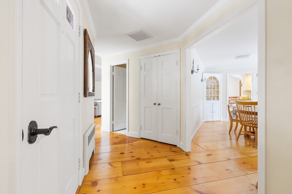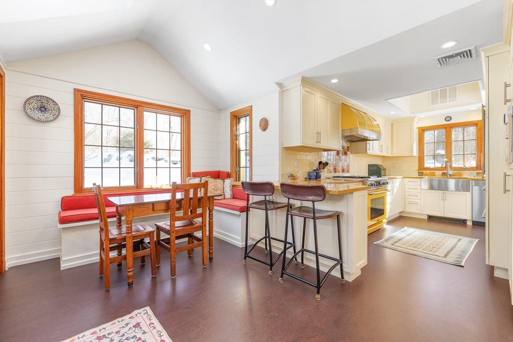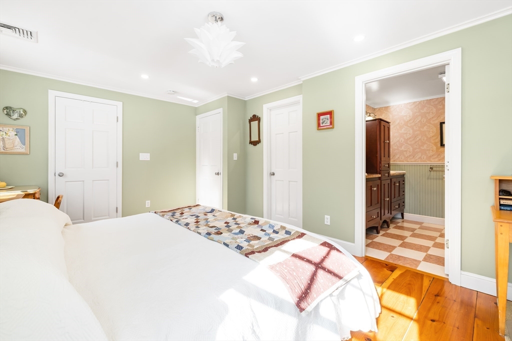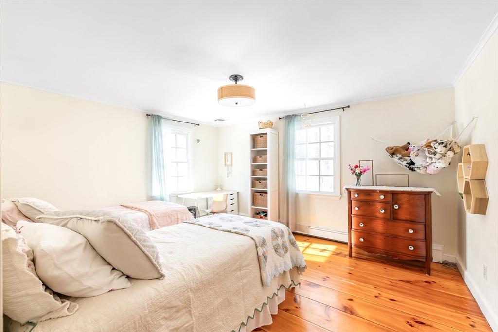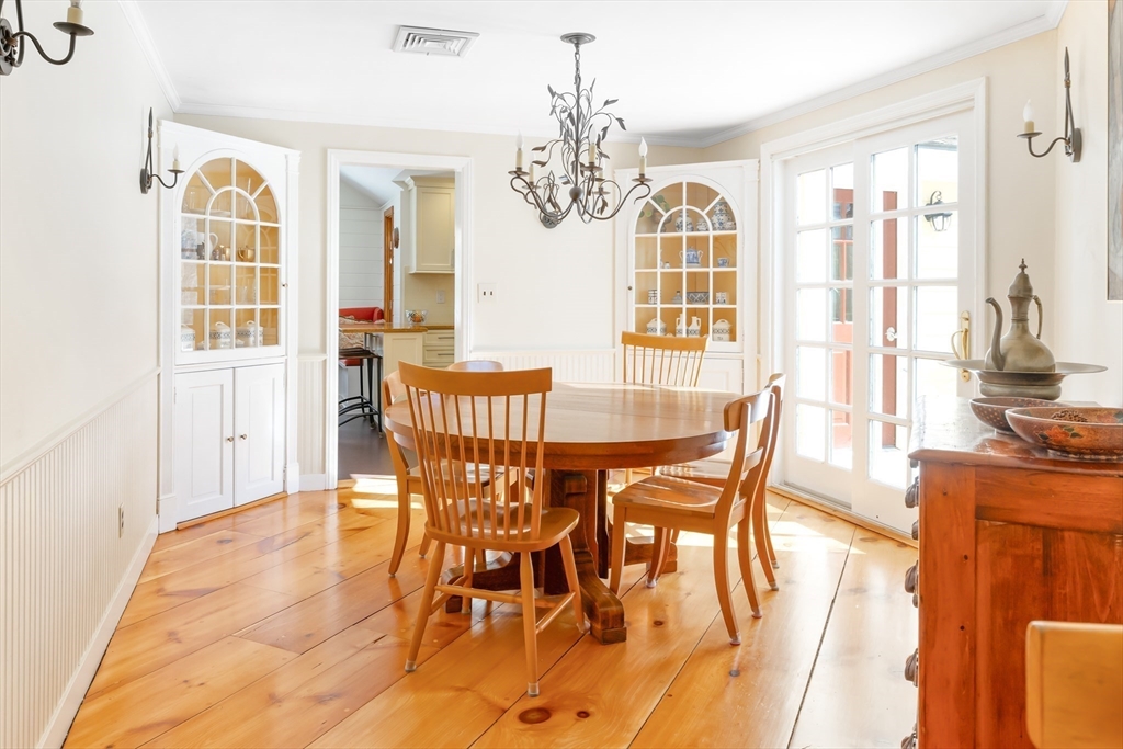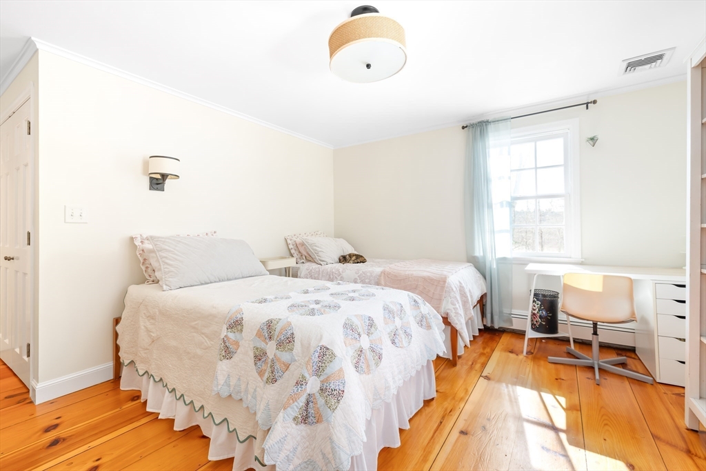 Set on a scenic country lane on 2+ private acres, this distinctive home blends timeless charm with thoughtful updates. Wide-plank pine floors and architectural details enhance the beautiful interior. The light-filled living room features a vaulted ceiling w/ exposed beams, skylights, and fireplace. A cozy den/office with custom built-ins and 2nd fireplace provides flexible living space. 4 br's are grouped in a private wing, including a 1st FLOOR PRIMARY SUITE with 2 walk-in closets and an updated bath. The renovated chef’s kitchen and sunny dining room open to bluestone patios for seamless indoor-outdoor living.The finished Lower Level offers a third fireplace, mudroom, laundry, 1/2 bath, and bonus room with direct exterior access. Magnificent grounds showcase mature plantings, stone walls, a water feature, and expansive lawn space. Located in sought-after Sherborn, known for top-ranked schools, open space, trails, and the popular Farm Pond recreation area. A truly special home!