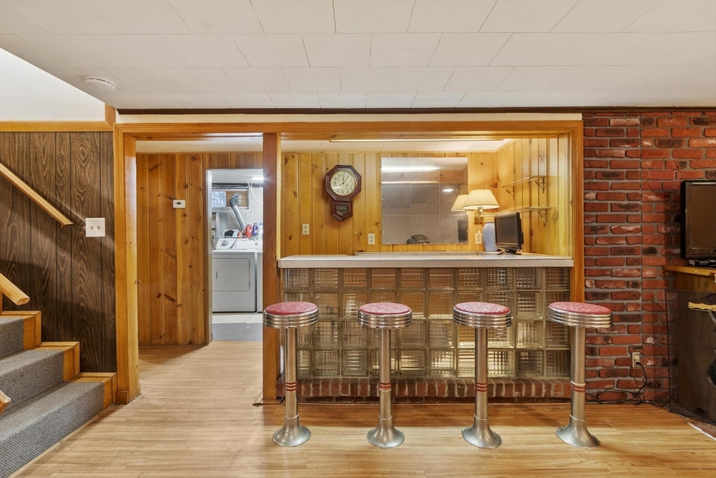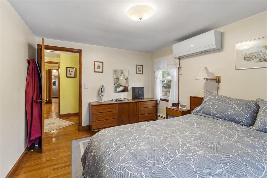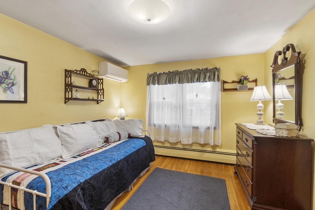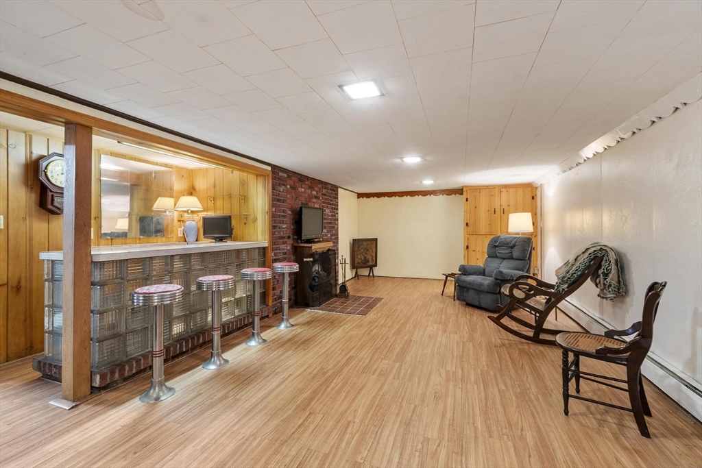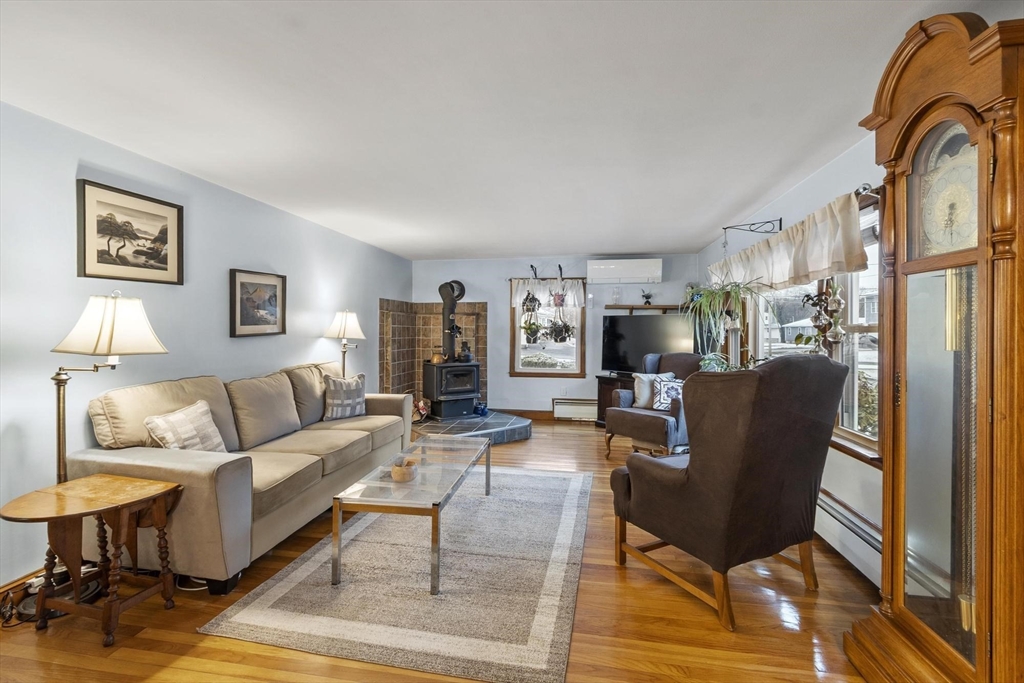 Welcome to this charming 1,400 sq ft ranch in Chelmsford! Full of warmth and character, this two bedroom, one bath home offers a flexible floor plan that can easily adapt to your needs - whether you're looking for a home office, additional living space, or a cozy den. Hardwood floors run through most of the home, and the sun-filled living room features a wood stove, perfect for cold winters. The finished basement adds bonus space with a retro-style bar & family room - ideal for entertaining or relaxing. A breezeway connects the home to a 2-car garage, offering both convenience and classic New England appeal. Many of the major systems have been updated over the years, including the roof (2021), mini splits (2021), replacement windows, and an updated heating system which will provide peace of mind for the next owner. The yard is a true highlight, featuring mature plantings and established gardens. A wonderful opportunity to own a solid & well cared for home with room to make it your own!