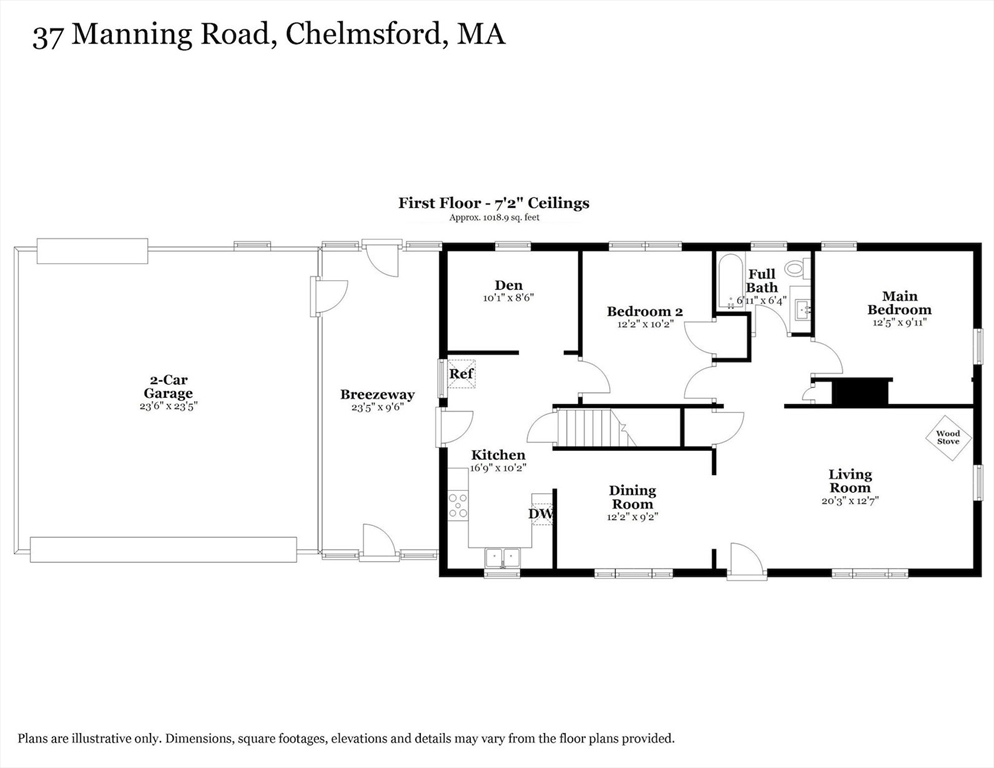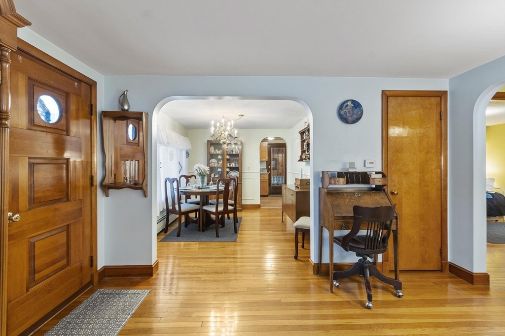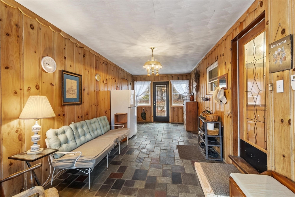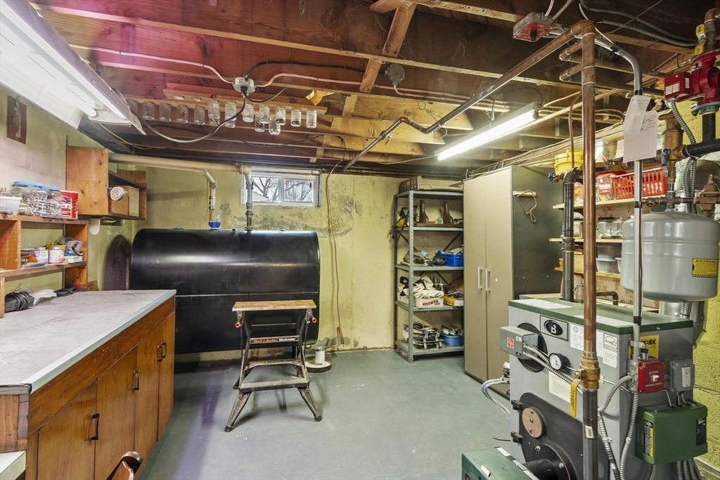 Welcome to this charming 1,400 sq ft ranch in Chelmsford! Full of warmth and character, this two bedroom, one bath home offers a flexible floor plan that can easily adapt to your needs - whether you're looking for a home office, additional living space, or a cozy den. Hardwood floors run through most of the home, and the sun-filled living room features a wood stove, perfect for cold winters. The finished basement adds bonus space with a retro-style bar & family room - ideal for entertaining or relaxing. A breezeway connects the home to a 2-car garage, offering both convenience and classic New England appeal. Many of the major systems have been updated over the years, including the roof (2021), mini splits (2021), replacement windows, and an updated heating system which will provide peace of mind for the next owner. The yard is a true highlight, featuring mature plantings and established gardens. A wonderful opportunity to own a solid & well cared for home with room to make it your own!