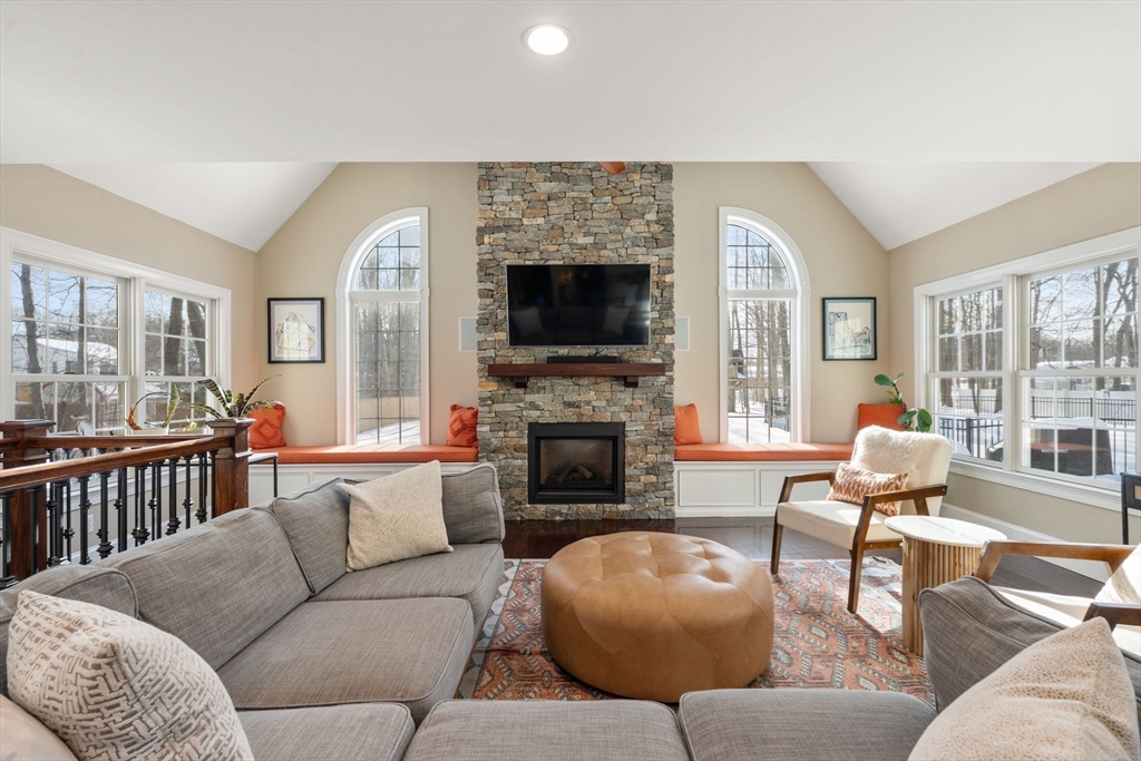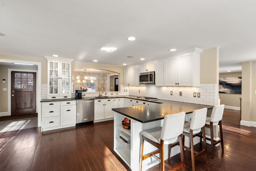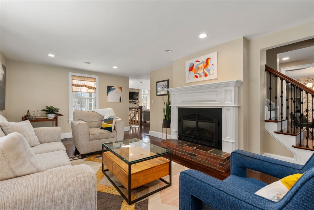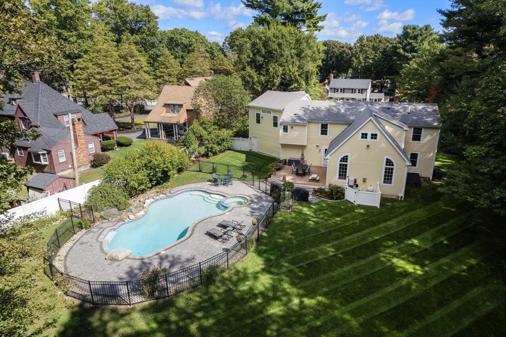 ABSOLUTE STAND-OUT! This beautifully updated expanded Cape offers the perfect blend of style, space, and lifestyle. The open-concept kitchen and family room feature cathedral ceilings, floor to ceiling stone gas fireplace. window seats overlooking the backyard, wet bar, and seamless access to a RESORT-STYLE setting with heated inground pool, deck, separate play area, and professionally landscaped grounds. The stunning primary suite showcases a beautifully renovated spa-inspired bath with soaking tub, radiant heated floors, and designer finishes. Three additional bedrooms include a unique loft-style bedroom perfect for a play space, study area, or private retreat. Thoughtful upgrades & designer touches throughout, including custom wallpaper & curated finishes elevating every space. Recent upgrades incl. renovated bathrooms, new kitchen appliances, upgraded pantry , pool heater, gutters, and enhanced landscaping. AMAZING Canton location close to Canton Center, commuter rail, Rte 95/128
