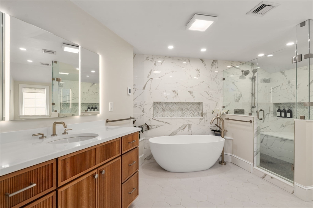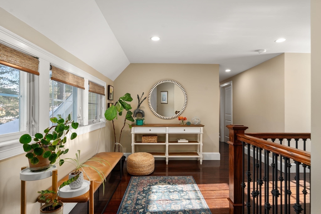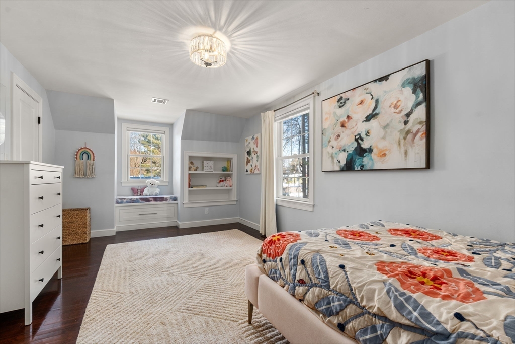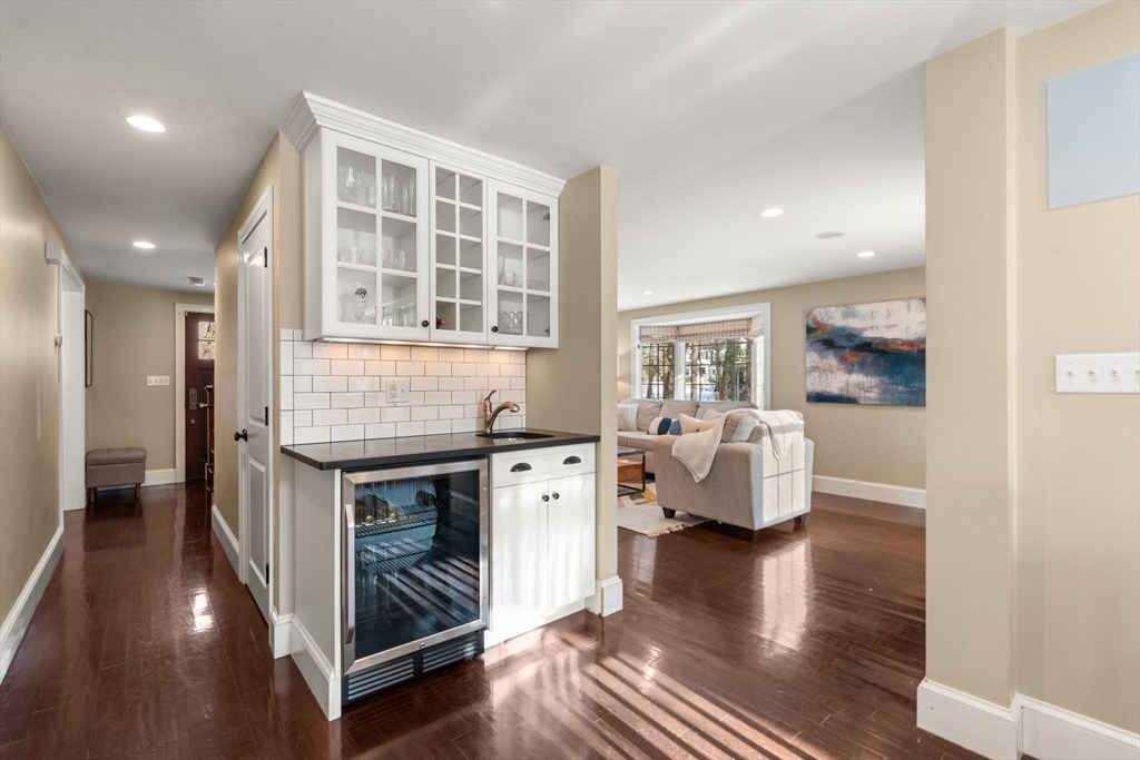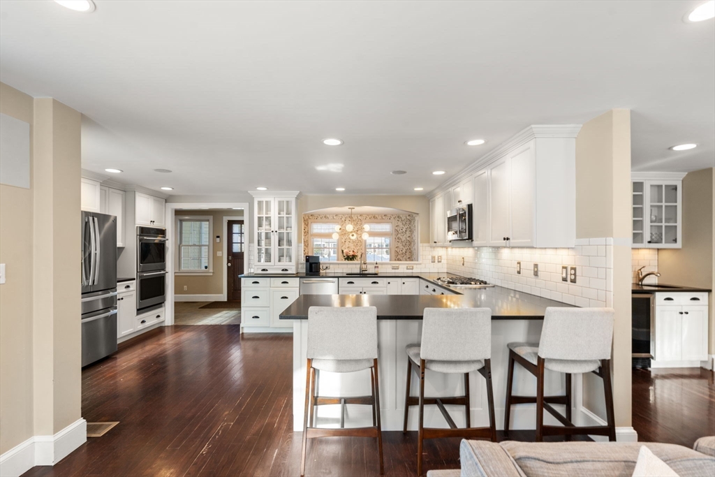 ABSOLUTE STAND-OUT! This beautifully updated expanded Cape offers the perfect blend of style, space, and lifestyle. The open-concept kitchen and family room feature cathedral ceilings, floor to ceiling stone gas fireplace. window seats overlooking the backyard, wet bar, and seamless access to a RESORT-STYLE setting with heated inground pool, deck, separate play area, and professionally landscaped grounds. The stunning primary suite showcases a beautifully renovated spa-inspired bath with soaking tub, radiant heated floors, and designer finishes. Three additional bedrooms include a unique loft-style bedroom perfect for a play space, study area, or private retreat. Thoughtful upgrades & designer touches throughout, including custom wallpaper & curated finishes elevating every space. Recent upgrades incl. renovated bathrooms, new kitchen appliances, upgraded pantry , pool heater, gutters, and enhanced landscaping. AMAZING Canton location close to Canton Center, commuter rail, Rte 95/128