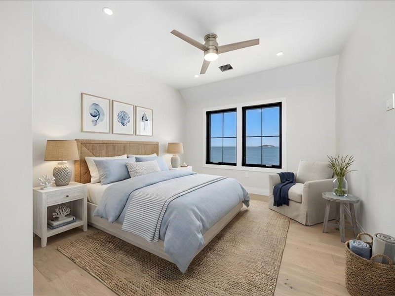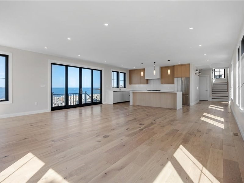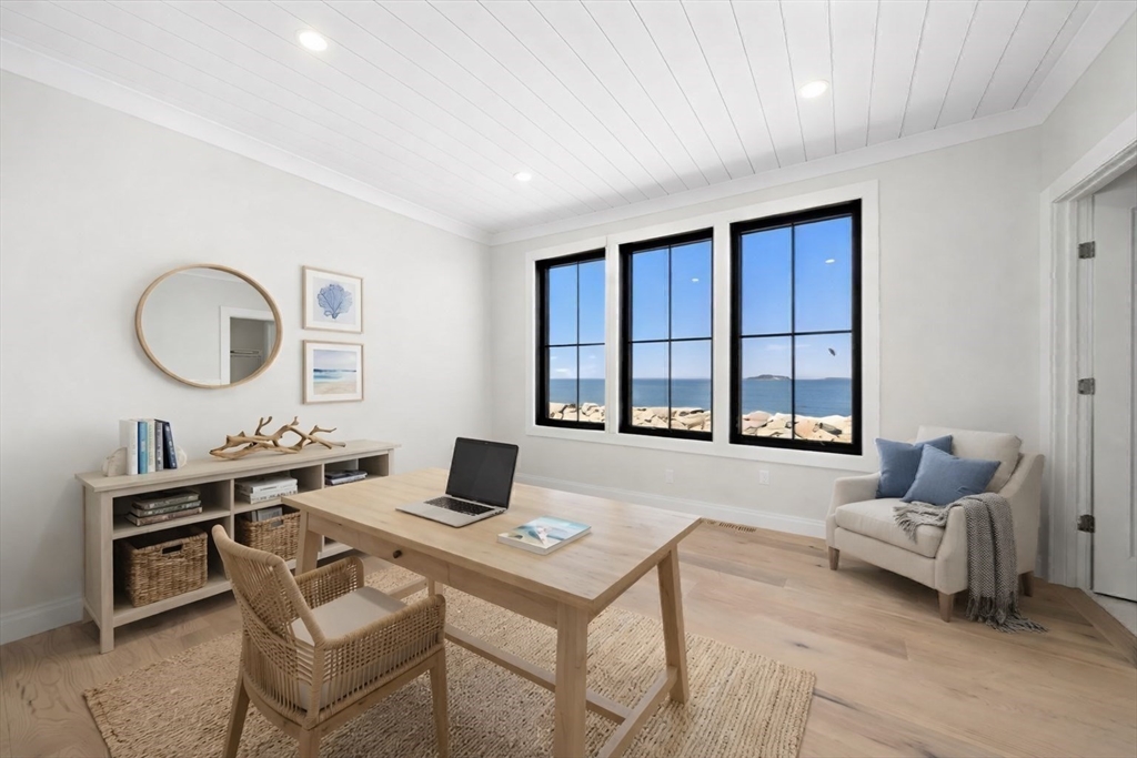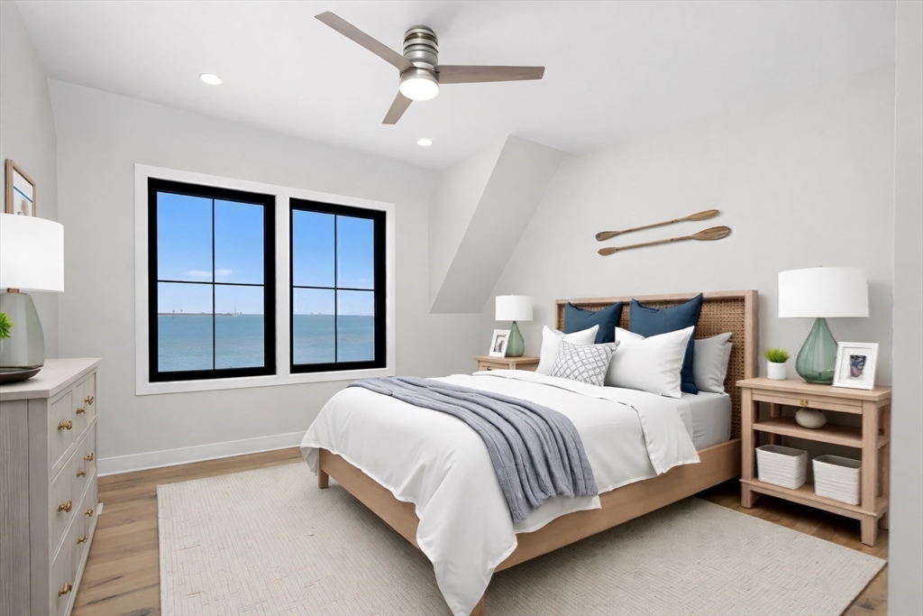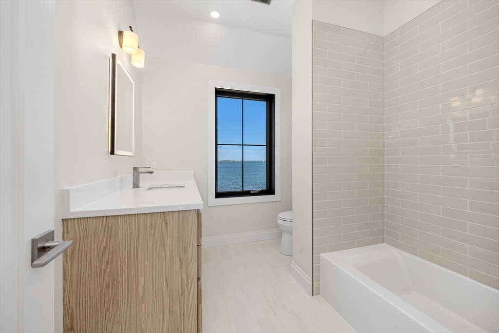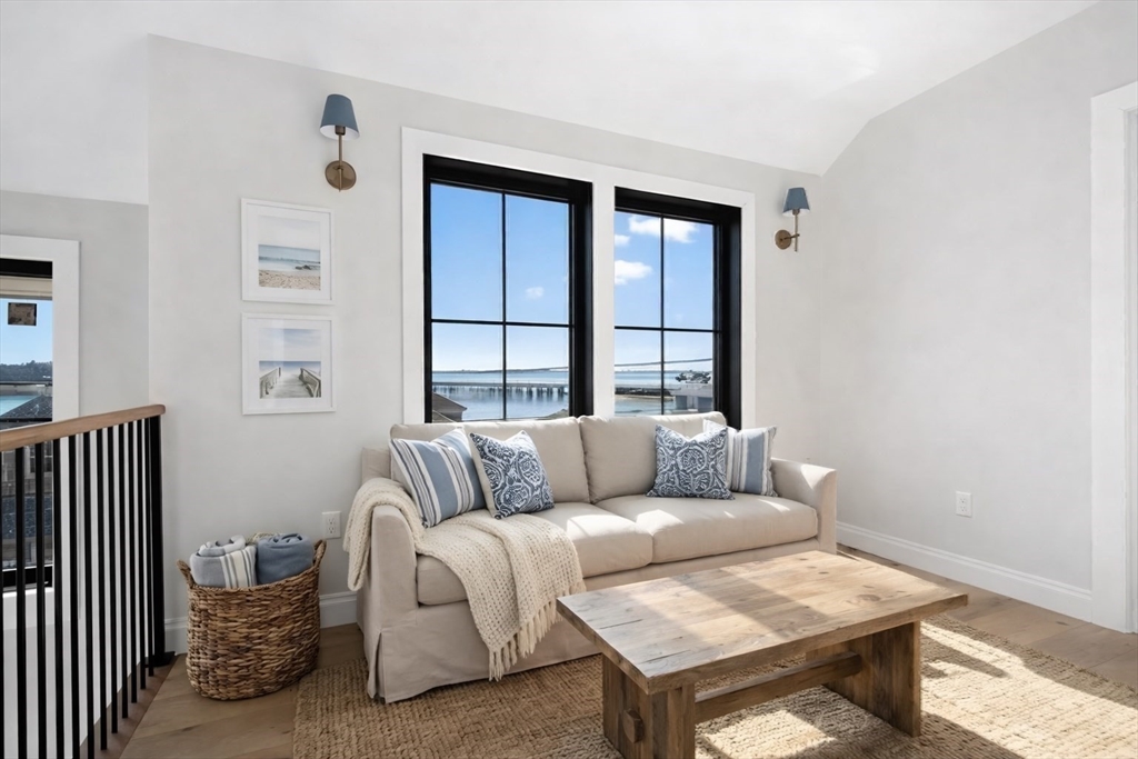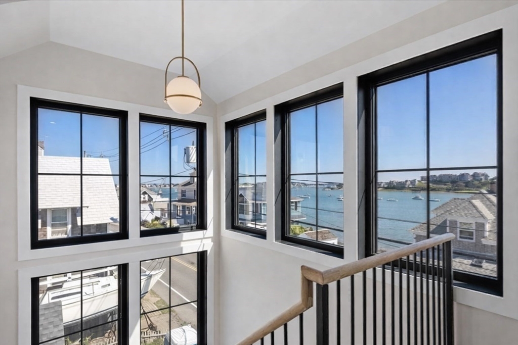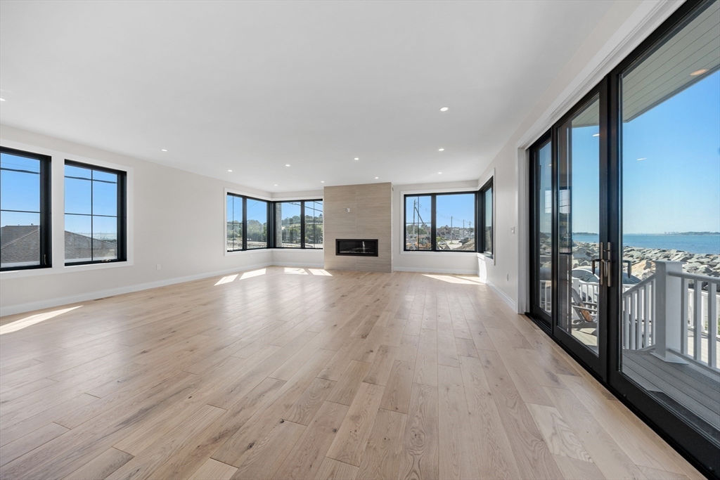 NEW CONSTRUCTION WITH WATER VIEWS FROM EVERY ROOM! Welcome to Sterling 2.0, a stunning coastal retreat with panoramic views of the Atlantic Ocean, Boston Bay, and the downtown skyline. This 2800+ sqft home blends coastal charm with modern luxury in an open-concept design perfect for living and entertaining. Sunlit spaces feature expansive windows and a gas fireplace, while the gourmet kitchen boasts high-end appliances, custom cabinetry, and a spacious island. The spacious, ocean-facing deck is ideal for morning coffee or sunset dinners. 4 bedrooms include a primary suite with a private deck, fireplace, & spa-inspired bath with radiant heat. An outbuilding offers 228 sqft of additional, finished versatile space for a studio, office, or party room! Just moments from the ferry, enjoy a seamless commute to Boston and the airport! Sterling 2.0 is not just a home; it's a lifestyle that will inspire you with its ever changing water views from every room! This is coastal living at its best.
