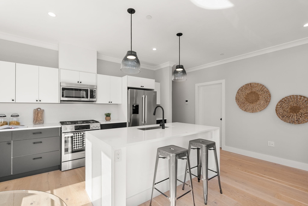 Built in 2022, this this bright and airy 1,180 SqFt second floor condo offers 2 bedrooms, 2 full baths, and a study, ideally located just moments from vibrant Inman Square, Union Square, and the new Union Square T station.The open kitchen/living/dining area is anchored by a generous island and framed by oversized windows that fill the space with an abundance of natural light. The study provides a perfect work-from-home setting or flex space. The sleek kitchen features Bosch appliances, quartz countertops, and contemporary cabinetry. The spacious primary suite features a walk-in closet and ensuite bath, while the well-proportioned second bedroom includes a good-sized closet and access to a full hall bath. A balcony, in-unit laundry, elevator access to one heated garage parking spot, bike storage, and a common roof deck with fabulous Boston skyline views complete this gorgeous home.