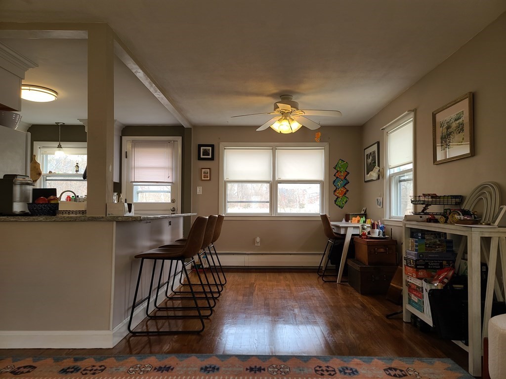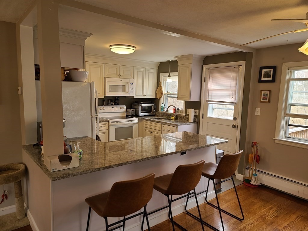 Enjoy beautiful views of the Mt Gilboa conservation land and bird sanctuary from the deck of this pet friendly, certified lead compliant, 3 bed, 2 bath home, with unique lower level studio! This townhouse residence was recently renovated. The first floor contains a beautiful open floor plan, with hardwood floors & crisp white cabinet kitchen. Upstairs are two generous sized bedrooms and an updated tiled bath. The lower level studio is equipped with kitchen, bedroom and full bath (perfect for in-laws, nanny, home office, teen, etc.), that is accessible from the first floor and from the exterior. Bonuses include 2+ off street parking spaces with outlet for charging your electric car, and motion activated security lighting. Walk to Mt Gilboa hiking trails; McLennen Park w playing fields, skateboard park, playground and trails; and to the swimming beach at the newly renovated "Res"! Convenient to public transportation and shops, or just sit on your deck and enjoy the view!