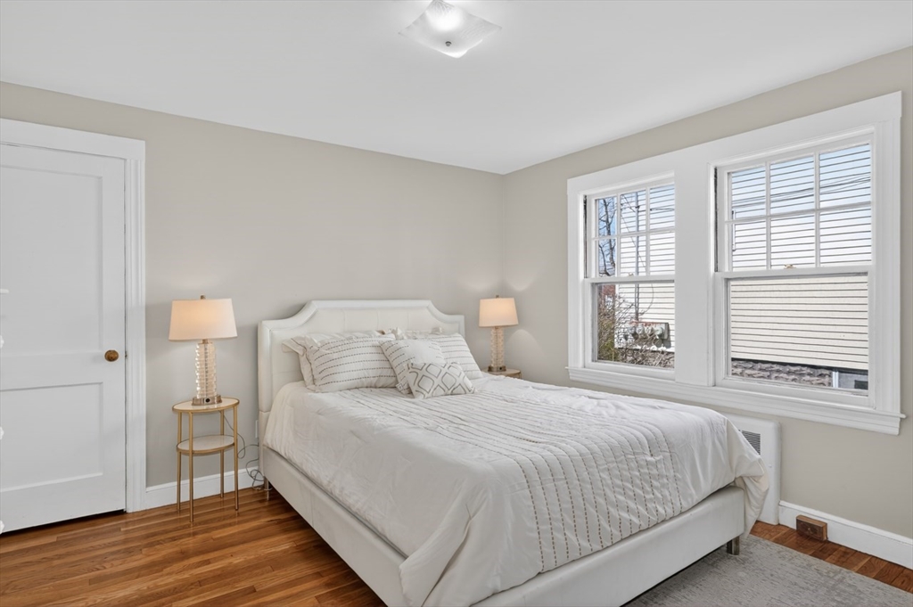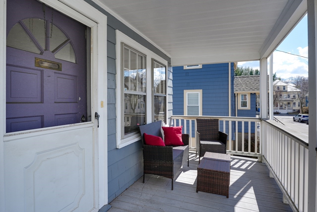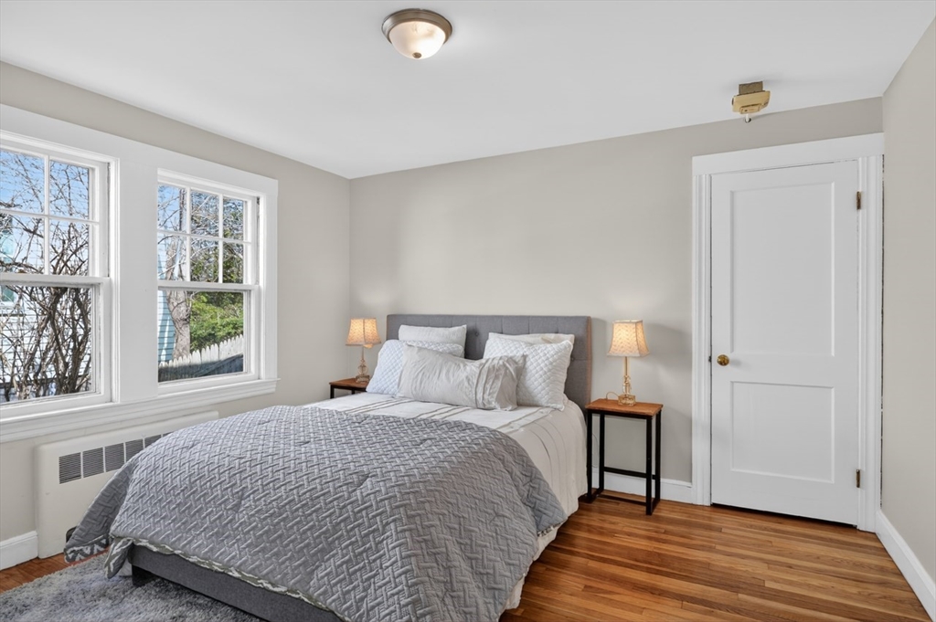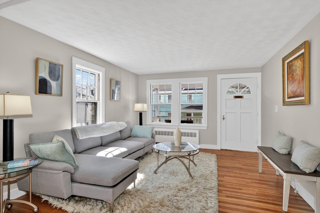 This is a 2 bed, 1 bath condo in Belmont on a very quiet tree-lined street in the Waverley area has a traditional Living/Dining room layout and bathroom in hallway between two bedrooms. The wood floors have been refinished and there are new vinyl floors in the kitchen, bathroom and back hallway. The unit has been freshly painted and has a large open balcony in front as well as a mostly-enclosed sun porche in back. There is garage parking under this condo and a driveway in front of it. The big fenced in backyard makes this wonderful for pets, children and folks that just want privacy. The basement has exclusive space with furnace and hot water tank as well as laundry. The garage holds the electrical panels. This property is just 2 blocks from the Waverley sq train, the Commuter rail and 3 blocks to the Beaver Brook and water park. Near cafes, wine shop, Tatte, Wonder, grocery, dining, salons, Butler Elementary School, post office and exercise studios. Don't miss this one!