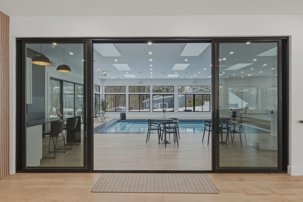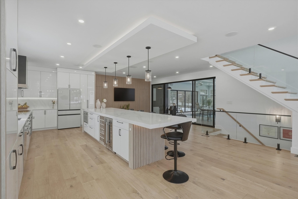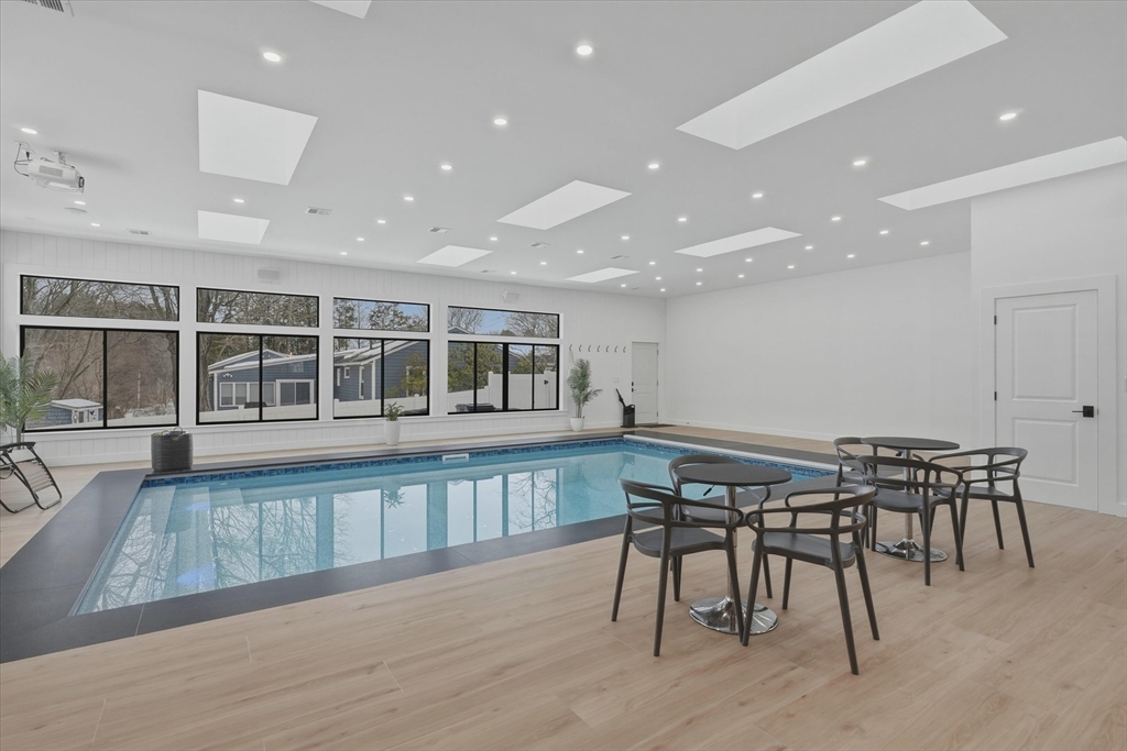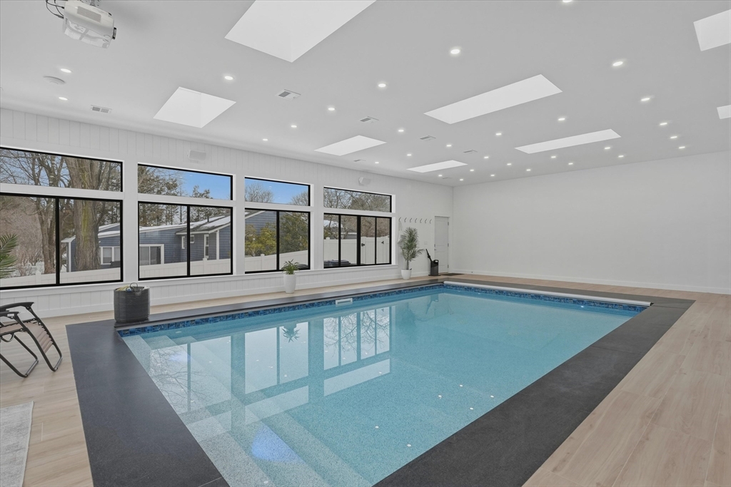 A striking expression of modern luxury, this exceptional residence blends sophisticated design with resort-style living. With 4 spacious ensuite bedrooms and 6.5 designer baths, this home showcases soaring ceilings, clean architectural lines, sleek glass railings, and expansive custom windows. The chef’s kitchen is the centerpiece of the home, complete with custom cabinetry, premium appliances, and an oversized quartz island that flows seamlessly into the dining area and living spaces, ideal for everyday living and entertaining. A fully integrated smart-home system controls lighting, climate, and audio throughout. Designed for both relaxation and entertainment, the lower level offers a private theater with a 135” screen, projector, and surround sound. Just beyond, step into a rare year-round indoor heated saltwater pool retreat, complete with lounge space, full bath, and dual BBQ stations. A true showcase property combining technology, comfort, and contemporary design on the Northshore