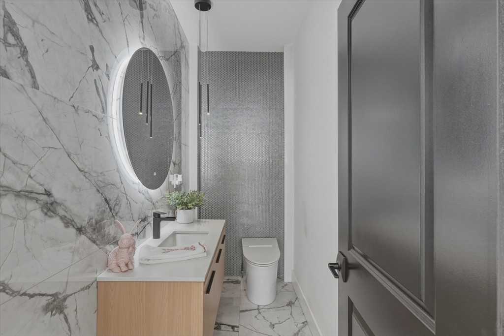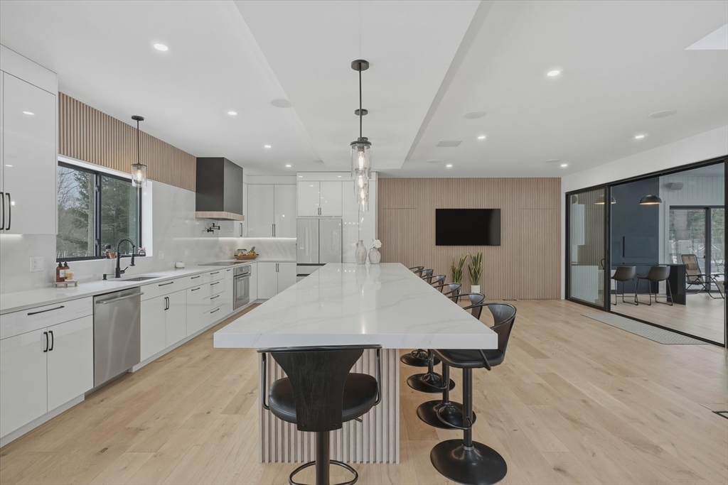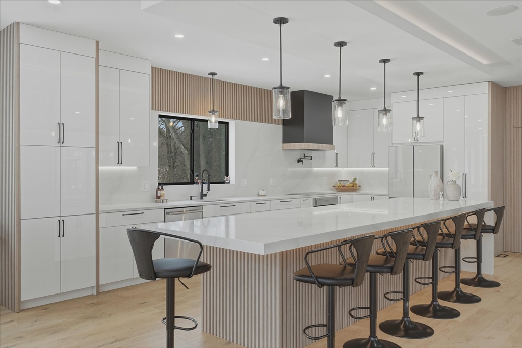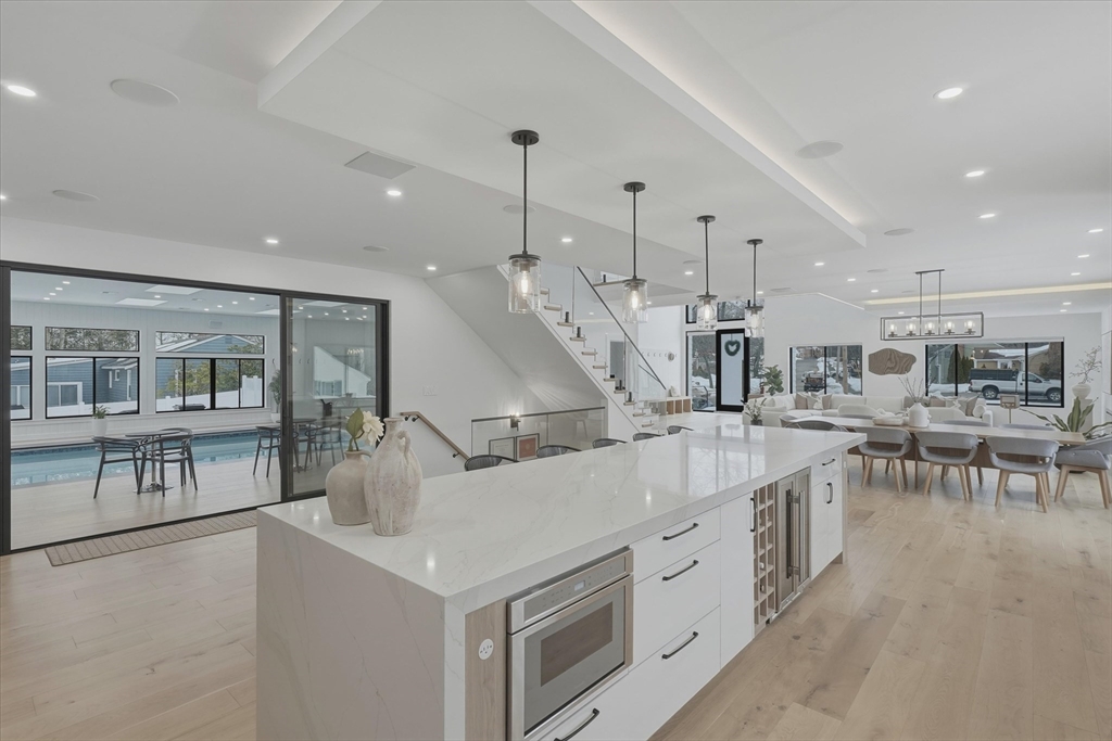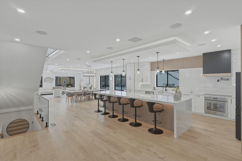 A striking expression of modern luxury, this exceptional residence blends sophisticated design with resort-style living. With 4 spacious ensuite bedrooms and 6.5 designer baths, this home showcases soaring ceilings, clean architectural lines, sleek glass railings, and expansive custom windows. The chef’s kitchen is the centerpiece of the home, complete with custom cabinetry, premium appliances, and an oversized quartz island that flows seamlessly into the dining area and living spaces, ideal for everyday living and entertaining. A fully integrated smart-home system controls lighting, climate, and audio throughout. Designed for both relaxation and entertainment, the lower level offers a private theater with a 135” screen, projector, and surround sound. Just beyond, step into a rare year-round indoor heated saltwater pool retreat, complete with lounge space, full bath, and dual BBQ stations. A true showcase property combining technology, comfort, and contemporary design on the Northshore