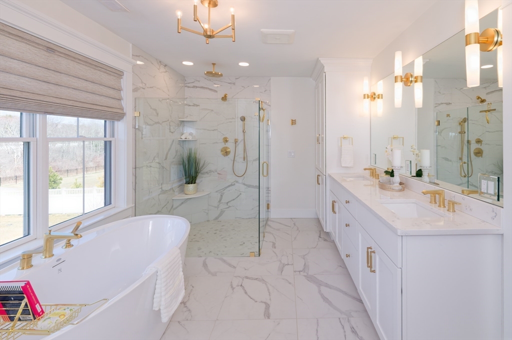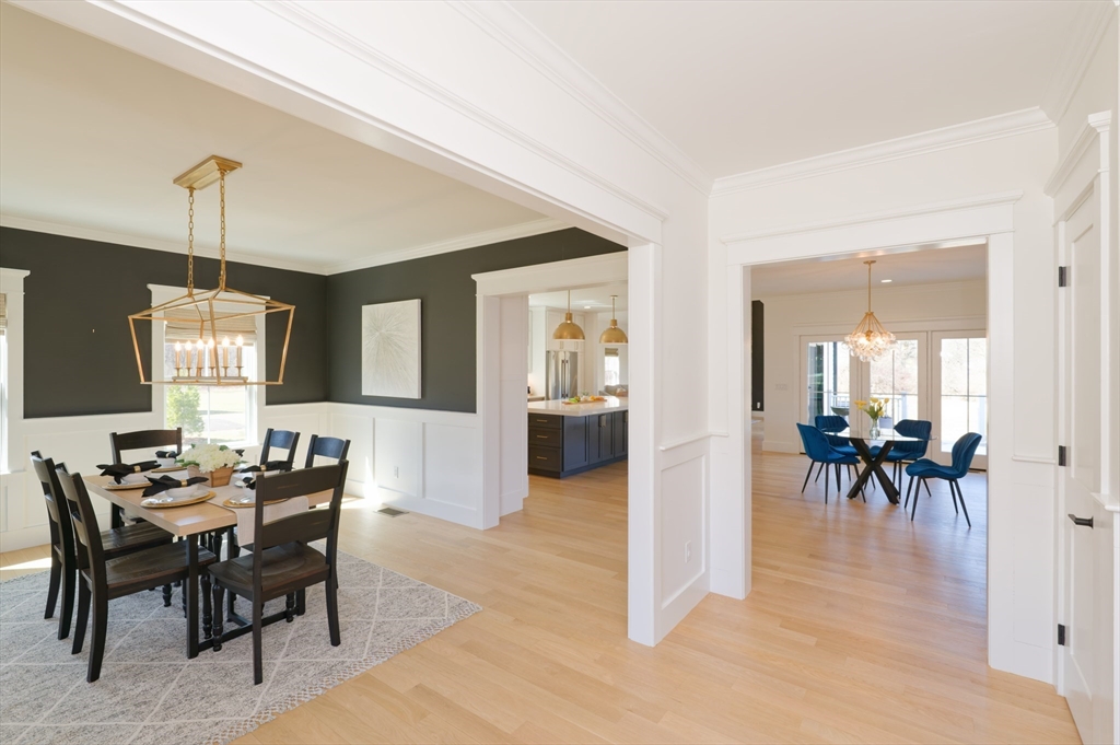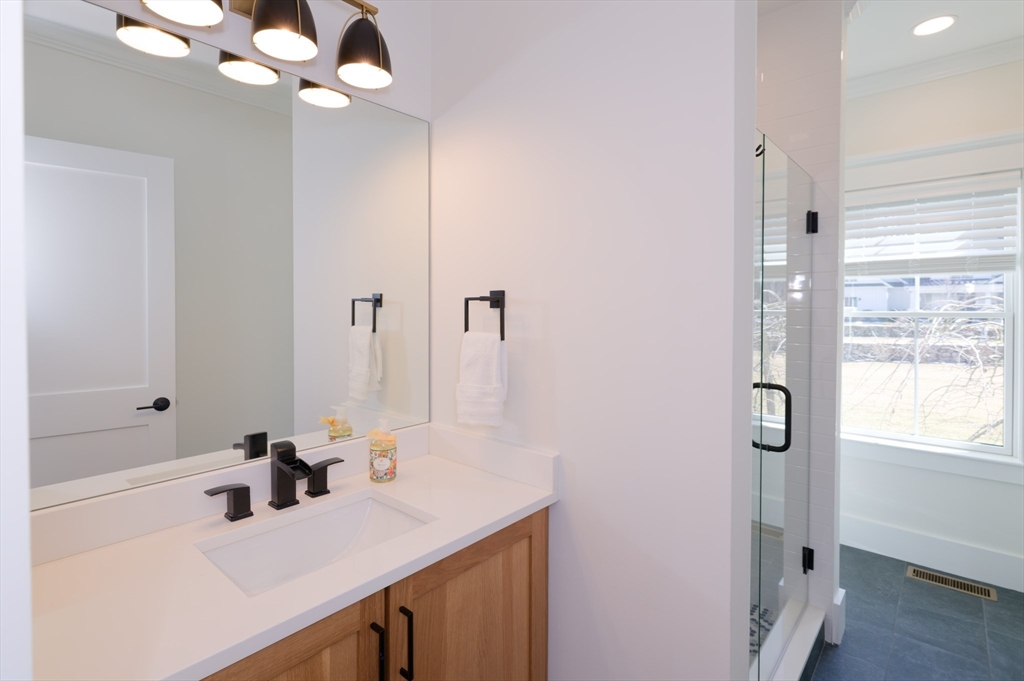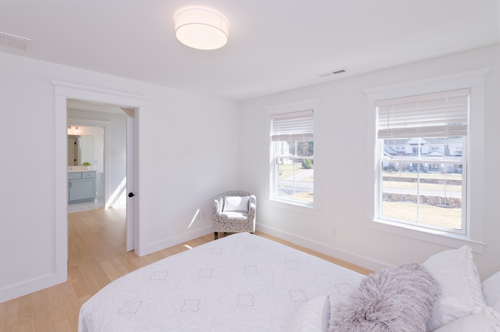 Welcome to this almost-new home in Chestnut Meadow, an intimate neighborhood of luxury homes offering timeless charm and modern comfort with over 300K in upgrades. This exceptional 5-bedroom, 4-bath residence showcases a sought-after modern design, complete with a welcoming farmer’s porch and a spacious 3-car garage.High-end designer finishes throughout, including premium Thermidor appliances an oversized kitchen island complemented by a generous breakfast area and large pantry A breathtaking vaulted family room featuring a striking stone fireplace and access to a private deck.a private home office and a first-floor en-suite bedroom, ideal for guests or multi-generational living. Upstairs, each bedroom offers private or direct access to a bathroom, ensuring comfort and convenience for all. The luxurious primary suite is a true retreat, featuring a dressing room, cozy sitting area, and a spa-inspired en-suite bath complete with a soaking tub and oversized glass-enclosed tiled shower.
