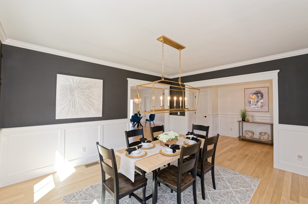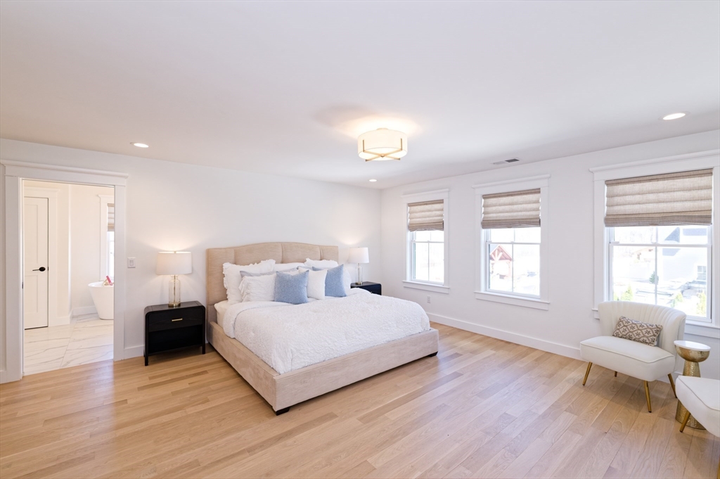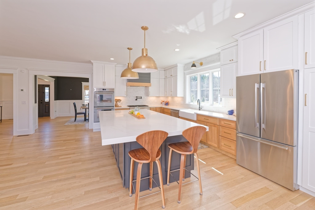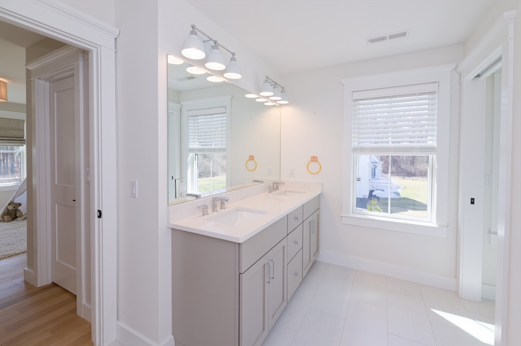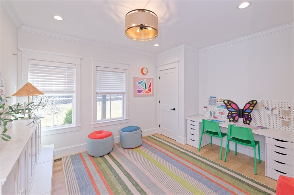 Welcome to this almost-new home in Chestnut Meadow, an intimate neighborhood of luxury homes offering timeless charm and modern comfort with over 300K in upgrades. This exceptional 5-bedroom, 4-bath residence showcases a sought-after modern design, complete with a welcoming farmer’s porch and a spacious 3-car garage.High-end designer finishes throughout, including premium Thermidor appliances an oversized kitchen island complemented by a generous breakfast area and large pantry A breathtaking vaulted family room featuring a striking stone fireplace and access to a private deck.a private home office and a first-floor en-suite bedroom, ideal for guests or multi-generational living. Upstairs, each bedroom offers private or direct access to a bathroom, ensuring comfort and convenience for all. The luxurious primary suite is a true retreat, featuring a dressing room, cozy sitting area, and a spa-inspired en-suite bath complete with a soaking tub and oversized glass-enclosed tiled shower.