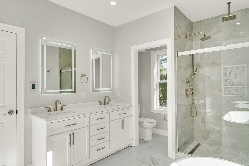 Completely rebuilt and expanded in 2026, this reimagined 5-bedroom, 5-bath home showcases refined craftsmanship and timeless charm. Effortless entertaining with spacious living room, open kitchen with white oak cabinets and extra oven, dining room with custom built ins, and large inviting deck. Luxurious primary suite features spa-like bath with heated floors and two custom walk-in closets. Four additional bedrooms, including two with en-suite baths and one with a balcony, are thoughtfully spread across the second and third floors. Bonus spaces in the finished basement and third floor provide flexibility for family room, office, play areas, or exercise space. Walk out to the tranquil backyard with deck and stone patio. U-shaped driveway offers ample guest parking and leads to a three-car garage (2-car tandem bay plus a 1-car bay equipped with an EV charger). Ideally located minutes from local shops and restaurants, Patriots Place, Walpole Country Club, and the commuter rail!