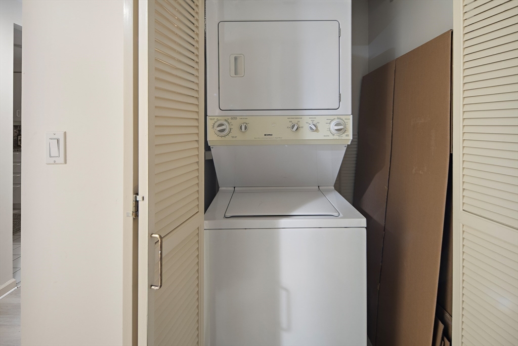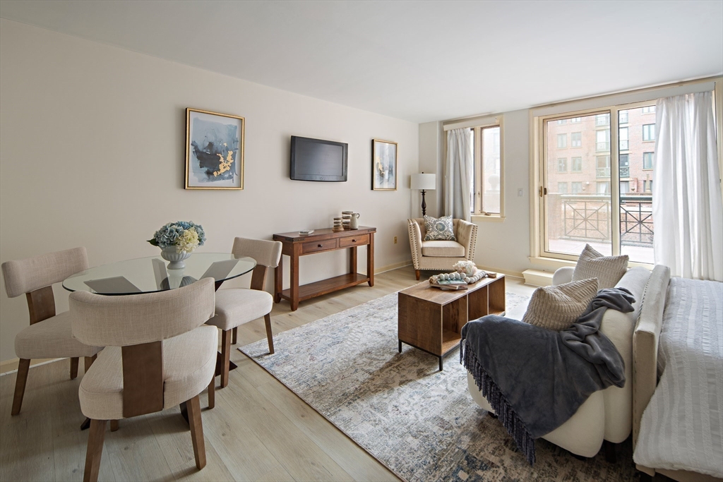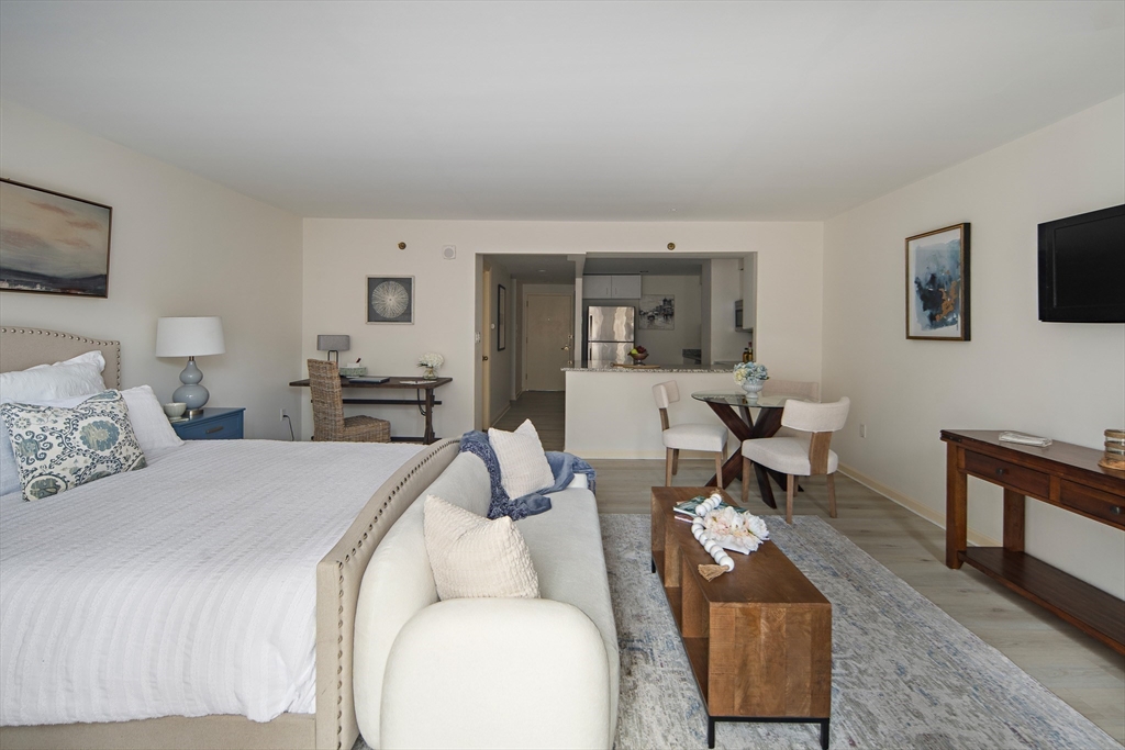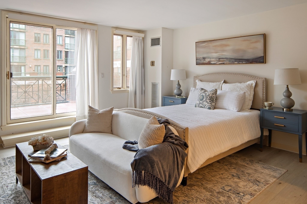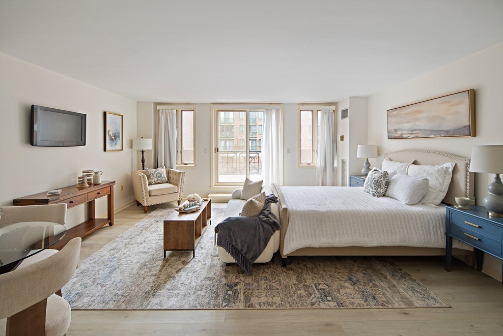 Spacious & unique 644 sq ft studio residence at River Court with exceptional courtyard and fountain views, featuring a private balcony significantly expanding the living area. A wall of windows fills the home with natural light. Large white kitchen with s/s appliances & granite counters. Neutral luxury vinyl tile flooring. Excellent storage including substantial walk-in-closet + private storage locker. Full marble bath with tub and shower. In-unit laundry. Central air. 1 garage parking. River Court amenities include 24-hr concierge, prof. management, 6 elevators, indoor lap pool, fitness center, sauna, landscaped courtyards w/seating, bike storage, guest pkg, two furnished guest suites, and roof deck with panoramic Boston and Cambridge views. Prime Kendall Sq location near the Charles River, dining, shopping, MBTA, MIT, Harvard, life-science hubs, and easy access to Boston and highways. Seller to pay special assessment. First showings @ OH Sat. 3/28. Offers due Wed. 4/1 @ 2.