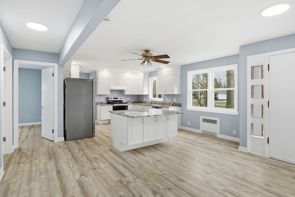 Location, location, location! Welcome to this beautifully updated ranch home that is truly move-in ready. Featuring a brand-new roof, new siding, new windows, and new stainless steel appliances, this home offers peace of mind and modern comfort. The spacious layout includes 3 bedrooms and 2 full bathrooms, complemented by an open floor plan ideal for everyday living and entertaining. The two-car garage includes new garage doors, and many interior doors throughout the home have also been replaced. The full basement offers high ceilings and presents an excellent opportunity to add additional living space, a recreation area, or a home office. Situated on just over half an acre, the property provides ample outdoor space and includes a charming enclosed breezeway. This well-maintained home is ready to welcome its next owner.