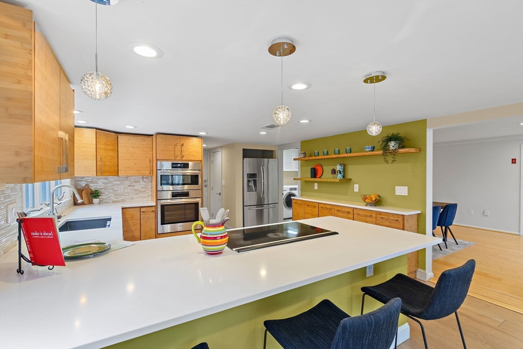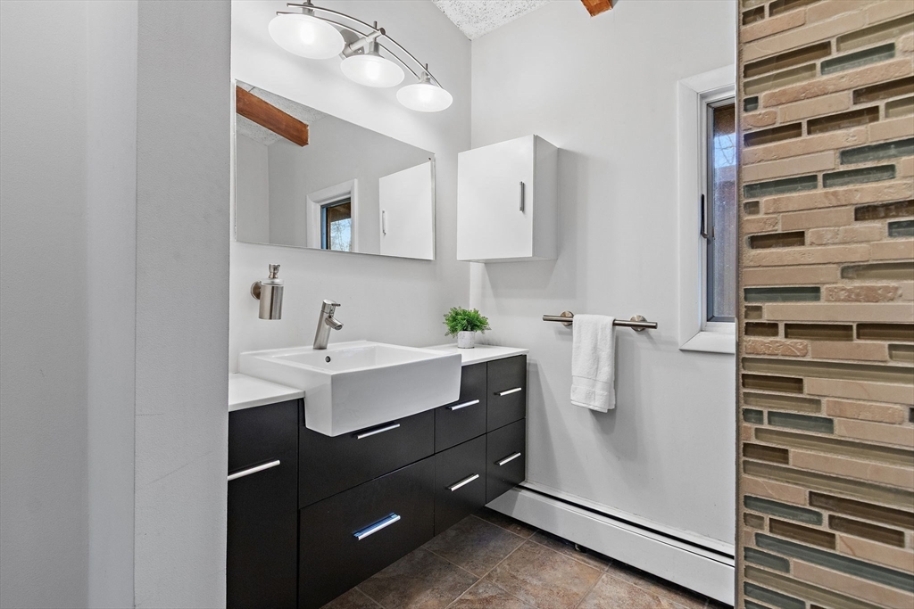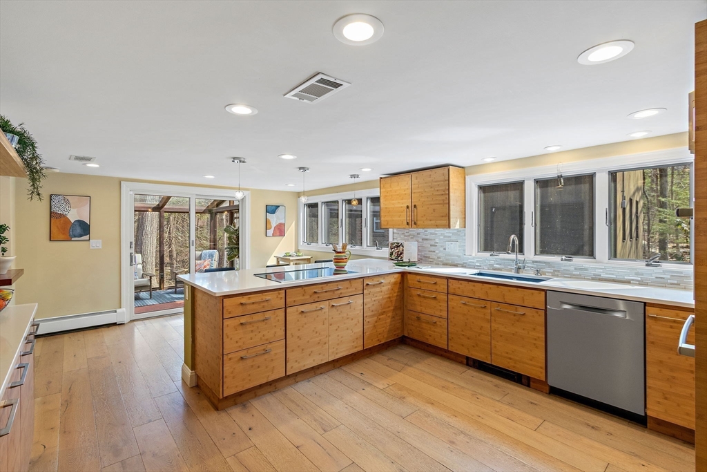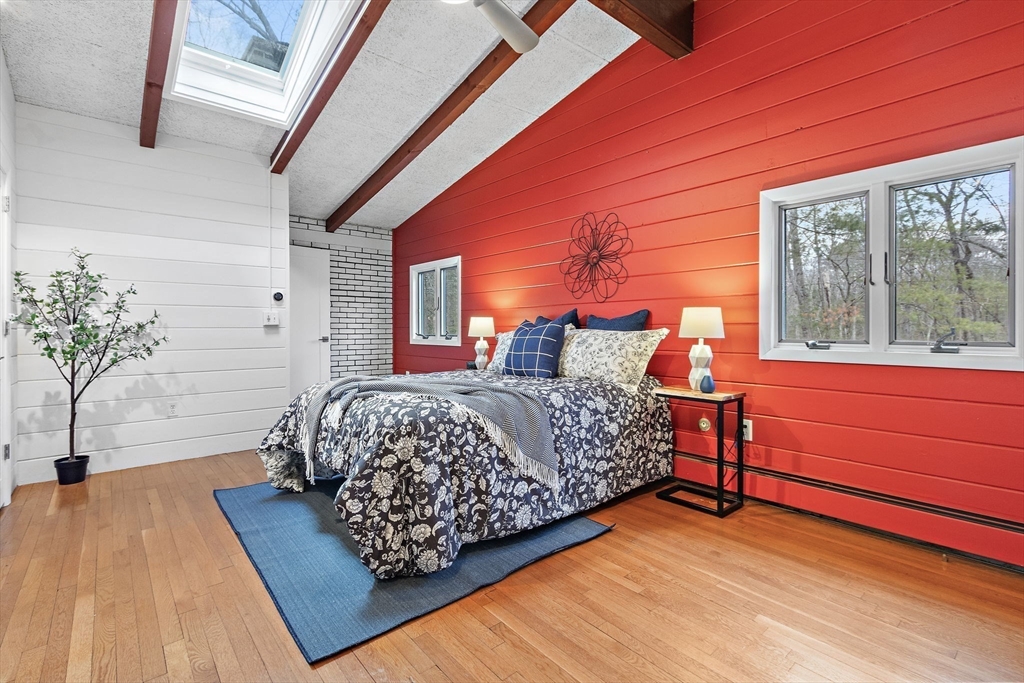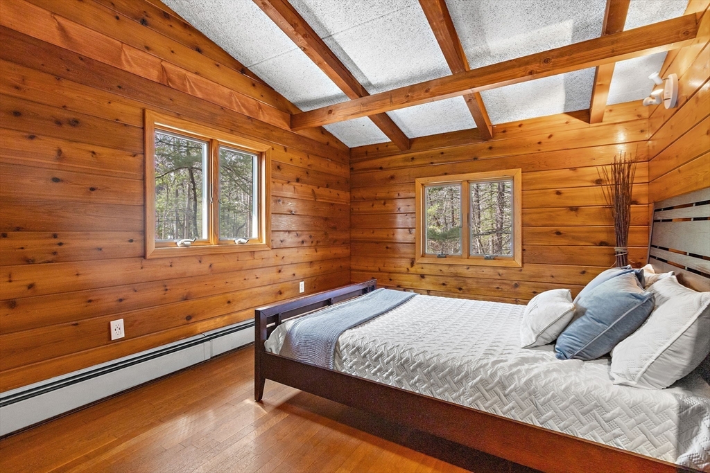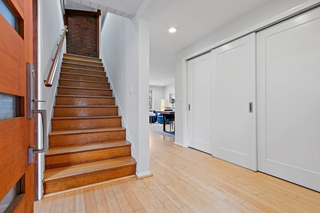 Tucked into nearly an acre of mature trees in Lexington’s Turning Mill neighborhood developed by architect Walter Pierce, this distinctive mid-century modern style home offers privacy, character and upgrades throughout. Clean lines and expansive windows fill each room with natural light creating a connection to the surrounding landscape. Thoughtfully designed for both gathering and retreat, you’ll enjoy generous living and dining areas, a welcoming Great Room with 15ft ceiling anchored by a dramatic double-sided fireplace, large sunroom, updated kitchen and baths. Five bedrooms spread across the upper level, including a primary with ensuite. The detached heated/cooled CARRIAGE HOUSE features a home gym and spacious second-level bonus area for exceptional flexibility. Enjoy peaceful wooded views, oversized stone patio, attached two-car garage, bonded membership at Painted Rock community pool and close proximity to conservation land, trails, commuting routes, and award-winning schools.