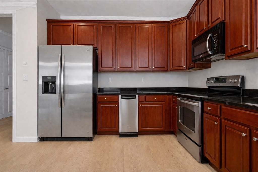 A bright and well-designed 1-bedroom, 1-bathroom condominium with a bonus room that could be used as a bedroom, office, nursery, workout area, etc., in the highly desirable Wellington Crossing community. This unit has new hardwood floors throughout, along with a brand new hot water heater, all updated in March 2026. Offering approximately 1,030 sq ft of comfortable living space, this home features an open layout with a modern kitchen, stone countertops, stainless-steel appliances, and in-unit laundry. Enjoy a private balcony for added outdoor relaxation. This professionally managed community provides outstanding amenities, including an in-ground pool, tennis courts, a clubhouse, and a fitness center, along with elevator access and off-street parking for 2 cars. Conveniently located in North Waltham near shops, dining, parks, and major commuter routes, this home delivers easy living in a prime location. Some photos are virtually staged.