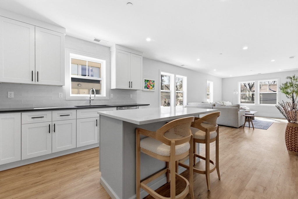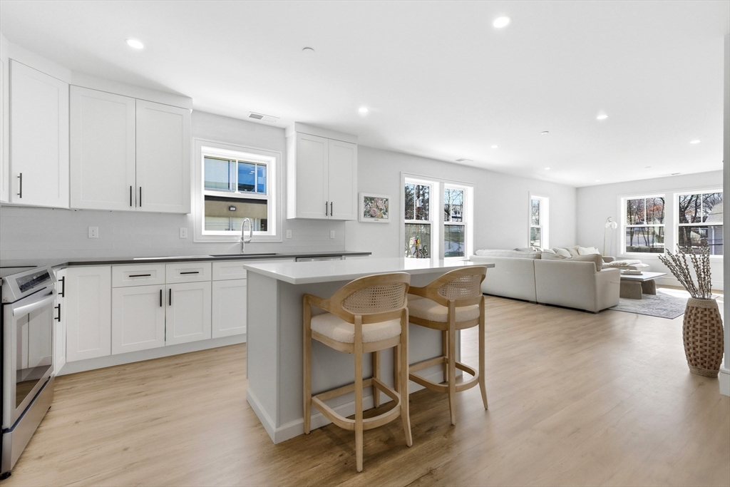 Built in 2025, this beautifully designed 1 bedroom residence at Dedham West offers modern, low maintenance living in an unbeatable location. Residence 205 features 915 sq ft of bright, open living space with modern finishes throughout. The stylish kitchen showcases sleek cabinetry, quartz countertops, stainless Frigidaire appliances, and a spacious center island, flowing seamlessly into the sun-filled living area—ideal for both everyday living and entertaining. Large windows bring in abundant natural light, while the thoughtfully designed layout maximizes both comfort and functionality. The spacious bedroom offers generous closet space, and the designer bathroom features a large glass enclosed shower. Additional highlights include in-unit laundry, covered parking, private storage, and elevator access, all just moments from Legacy Place, Downtown Westwood, and Dedham Square with easy access to shopping, dining, and entertainment. Don't miss out!