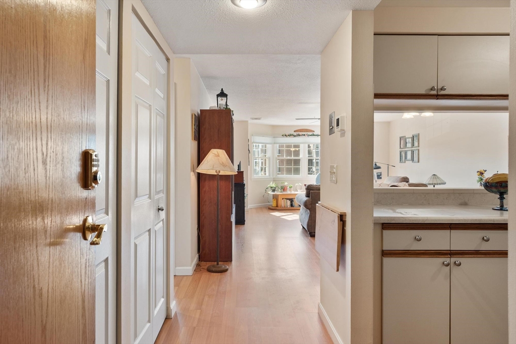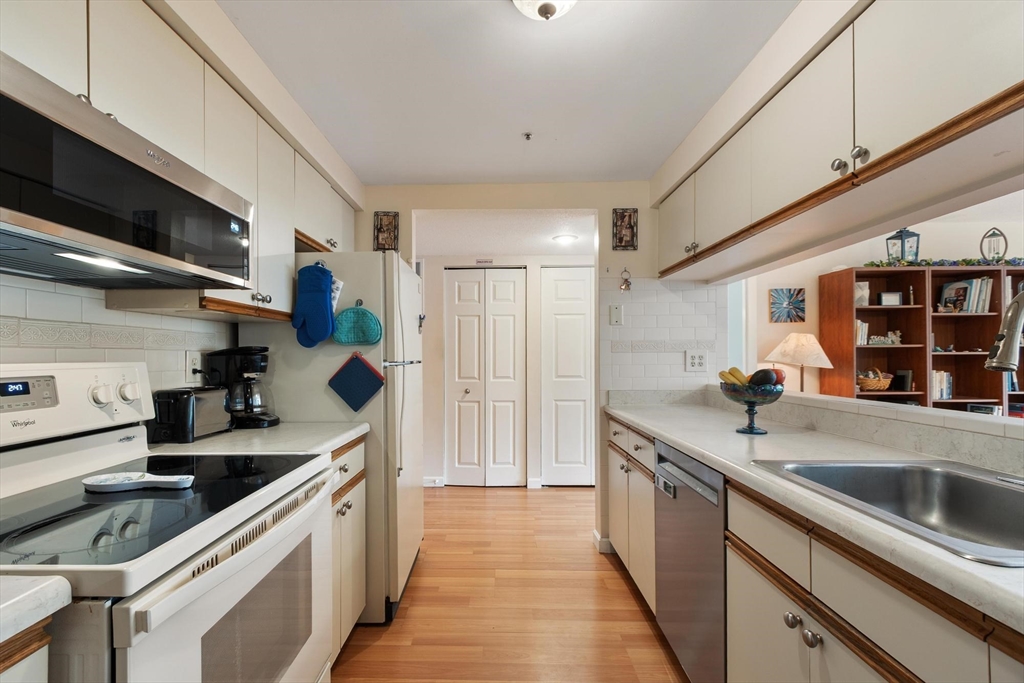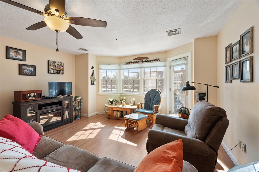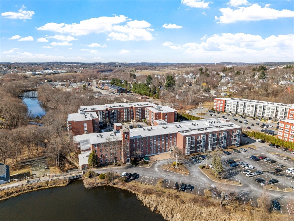 Welcome to this highly desirable Sutton Pond Community. This sunny garden-style unit features two bedrooms, each providing its own private space for rest and relaxation, double closets in the main bedroom, along with two full bathrooms conveniently located within the bedroom areas. With 1,050 square feet of living space, the home has been thoughtfully updated over the years: A new HVAC system (2019), dishwasher (2020), washer & dryer (2021), hot water heater and shutoff valve (2022), microwave & kitchen faucet (2023), windows and exterior doors (2024), and new carpeting in the main bedroom (2025). Located on the 4th floor, the unit overlooks the parking area and offers beautiful sunset views. Enjoy peaceful and ever-changing scenery from your NEW private balcony. A short 5-minute walk over the bridge brings you to downtown. This desirable location also provides easy access to the vibrant dining and shopping options at the old David & Furber Mills. Easy access to major highways.