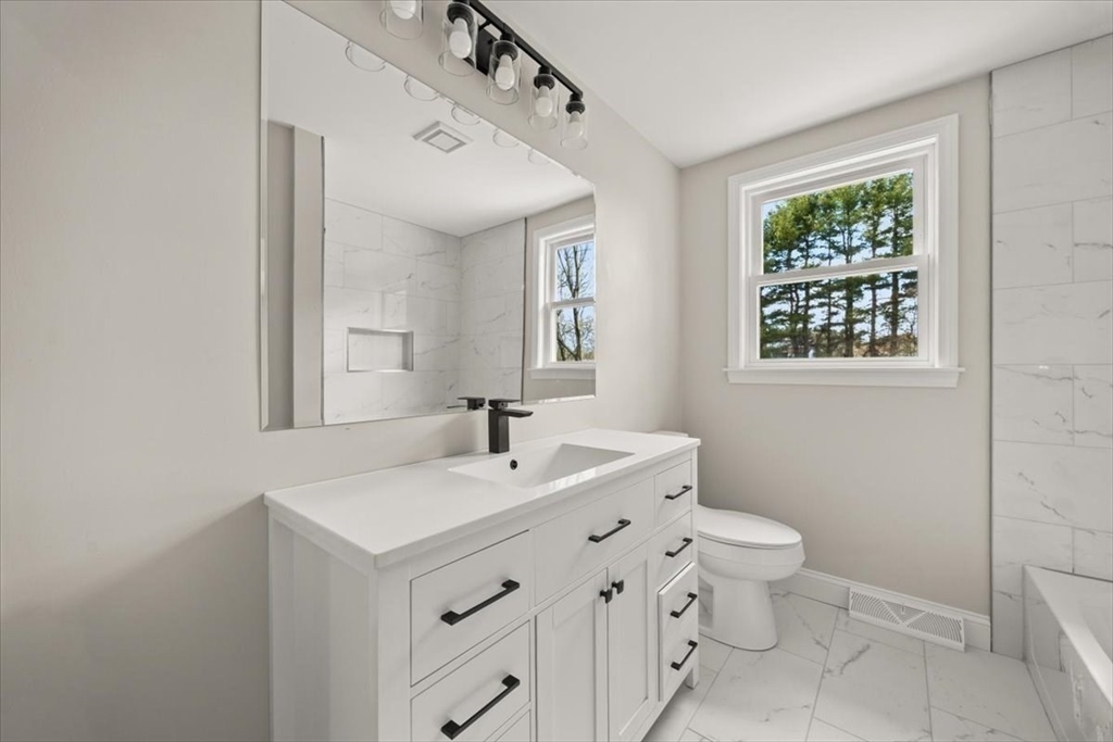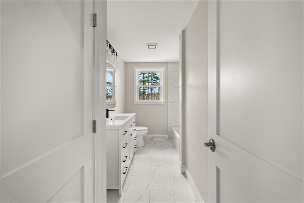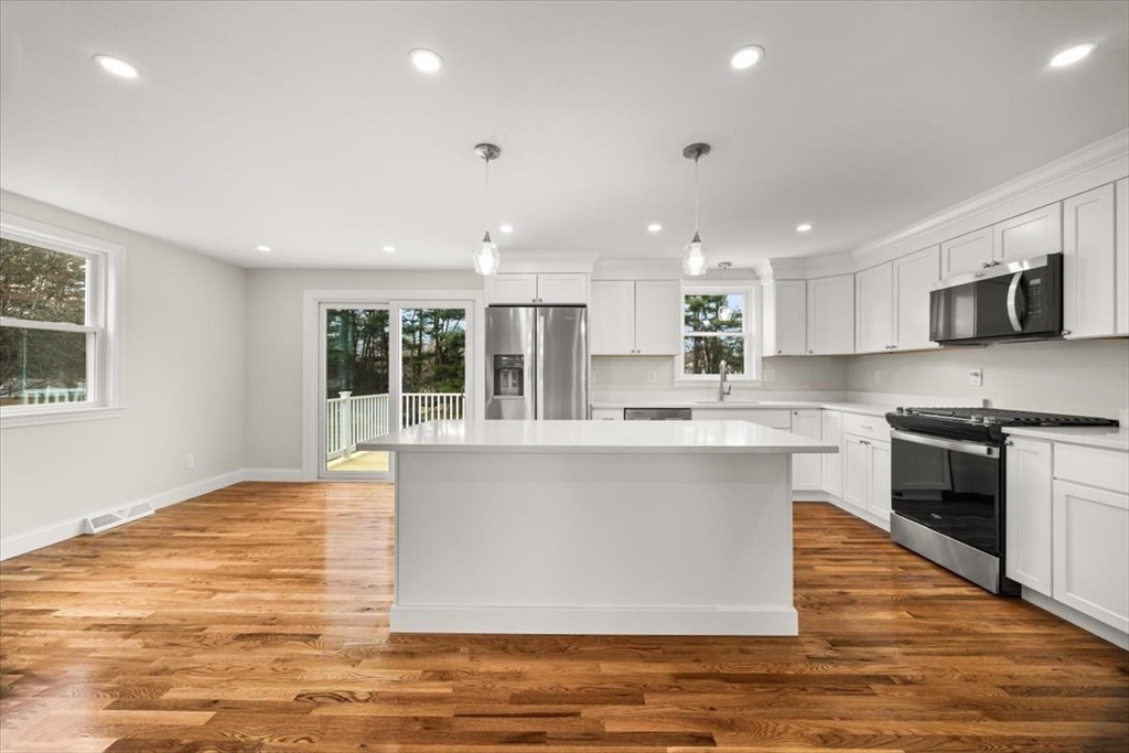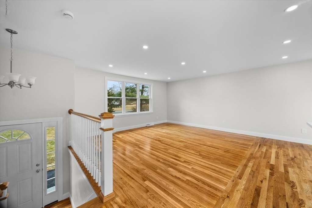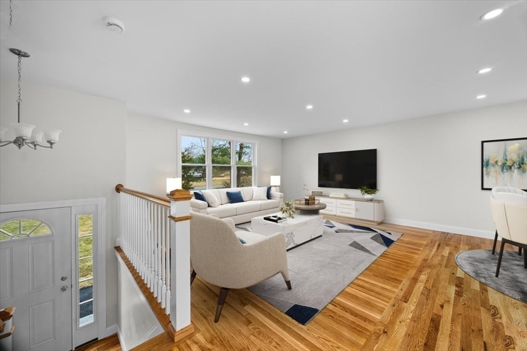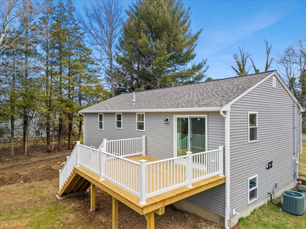 Better than new construction! This is TURN KEY—truly nothing left to do but move in. Beautifully renovated raised ranch set on a private 1-acre lot, offering the perfect blend of modern design and turnkey living. This home has been completely redone from top to bottom with a brand-new roof, siding, windows, doors, deck, plumbing, electrical, heating system, and central air. Step inside to find stunning hardwood flooring throughout the main level, complemented by a designer kitchen featuring quartz countertops, brand-new cabinetry, and a spacious center island perfect for entertaining. Both bathrooms have been fully renovated with elegant tile work and stylish vanities, creating a spa-like feel.The finished lower level offers additional living space ideal for a family room, home office, or guest area. Outside, enjoy a newly paved driveway and a brand-new septic system, giving you peace of mind for years to come.