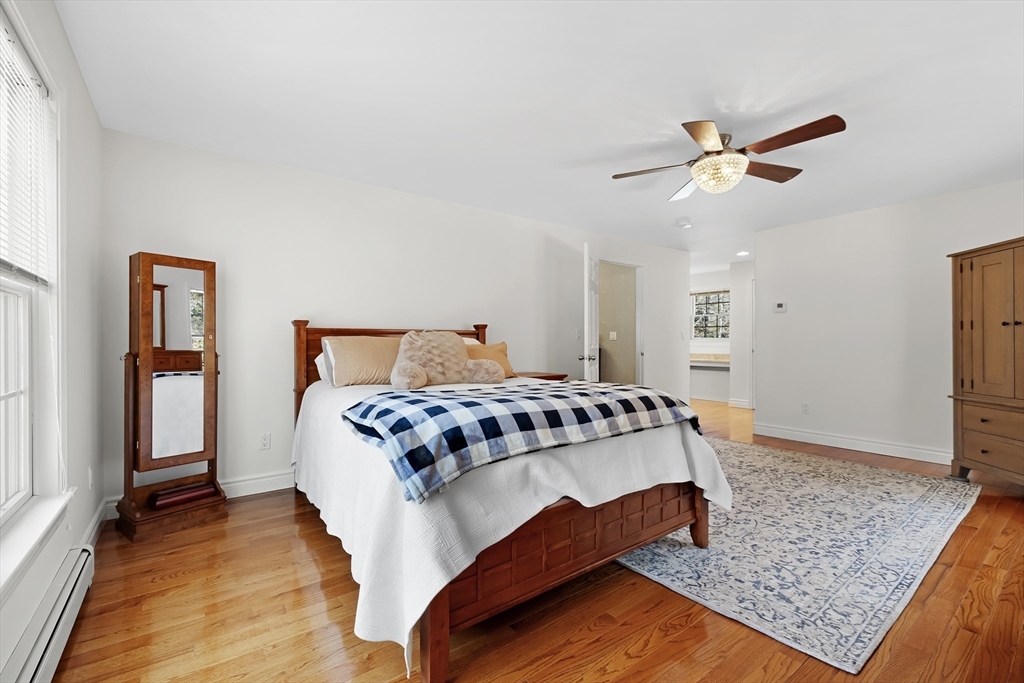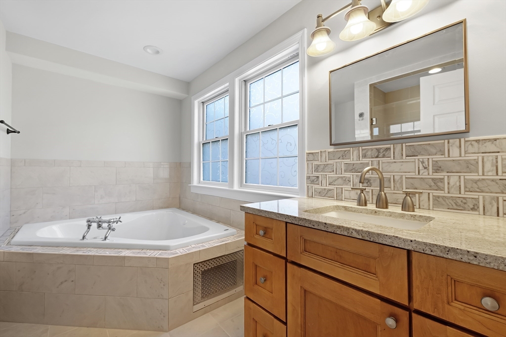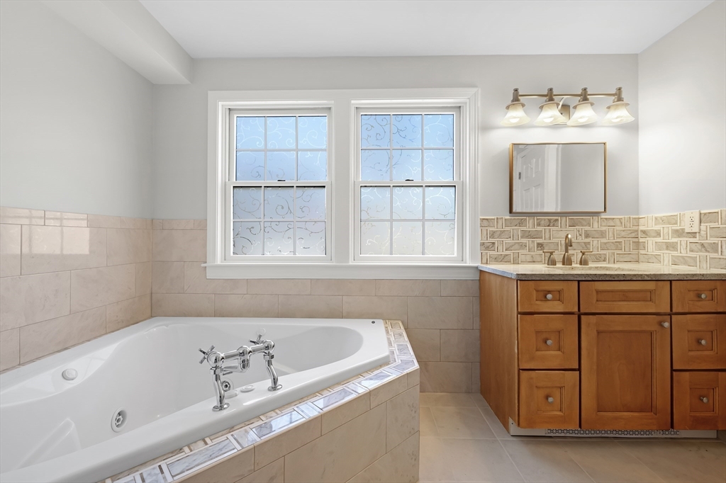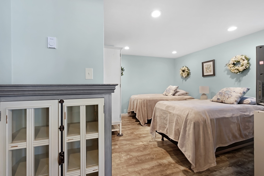 This Exceptional Home is the perfect combination of practical open floor plan for today's living with the luxurious finishes for relaxation and entertaining. This immaculate spacious multi-level Cape was designed with intricate & exquisite details that include a welcoming Open Floor Plan as soon as you enter. The custom-built dual staircase off the living room creates a balanced grand appearance. Updated kitchen with large center island & adjoining fireplace sitting complimented by a side dining area. The Luxurious main floor Primary Suite features a walk-in closet, an en-suite luxury bathroom with jacuzzi & glass door designed spa shower. Third level leads to an upper bedroom with full bathroom. Extended Living Quarters, lower level with walk-out, features a sitting area, living room, laundry area, full bathroom with enclosed walk-in spa shower, dishwasher, kitchenette eating area. 5 bedrooms 41/2 bathrooms, oversized 2 car garage, fire pit, sheds. Must see for all features & updates.