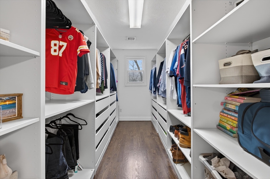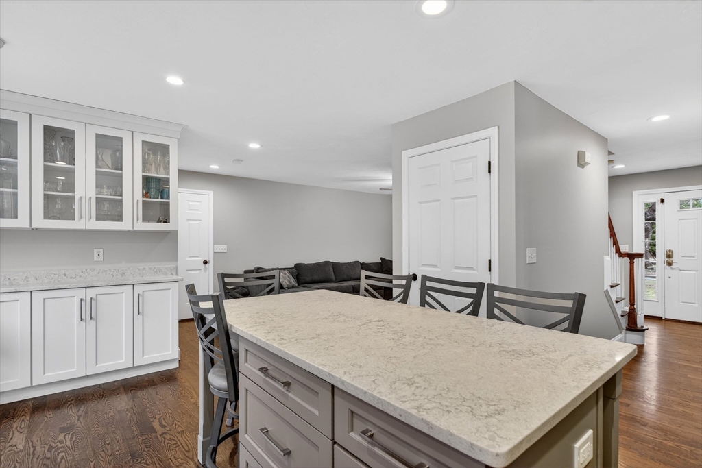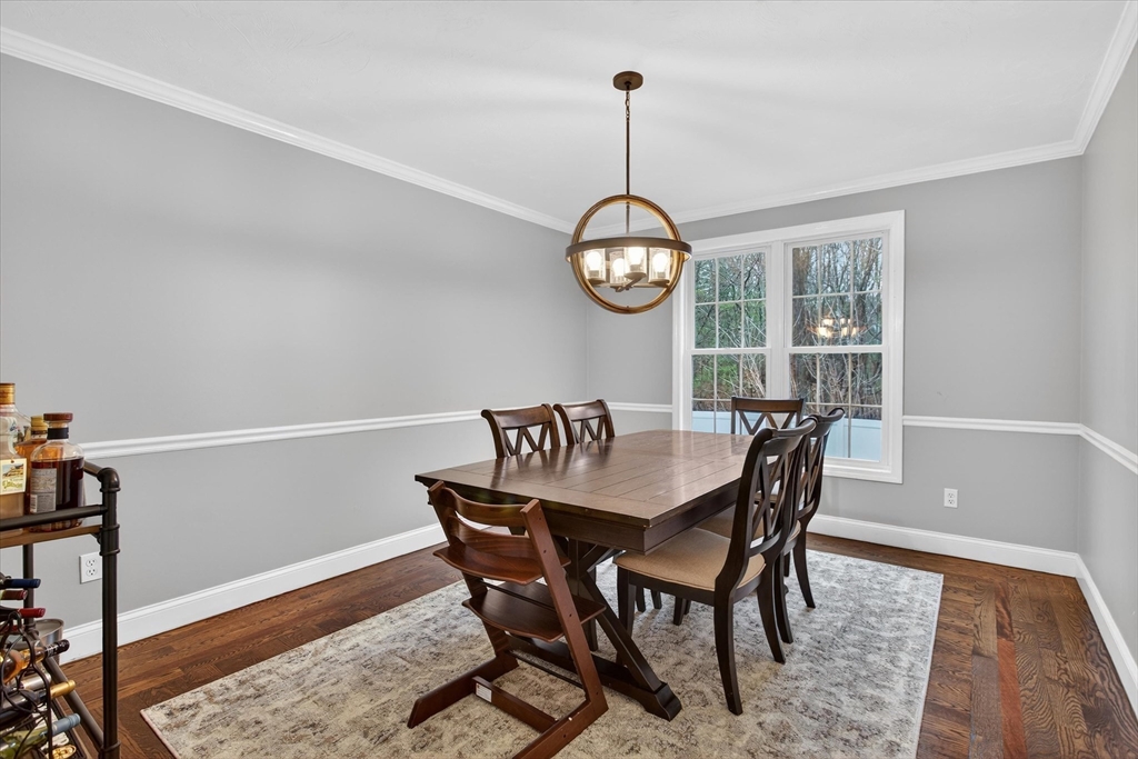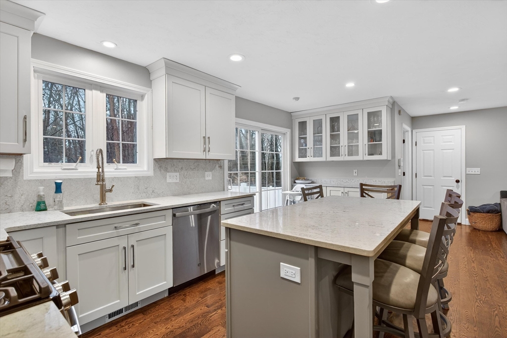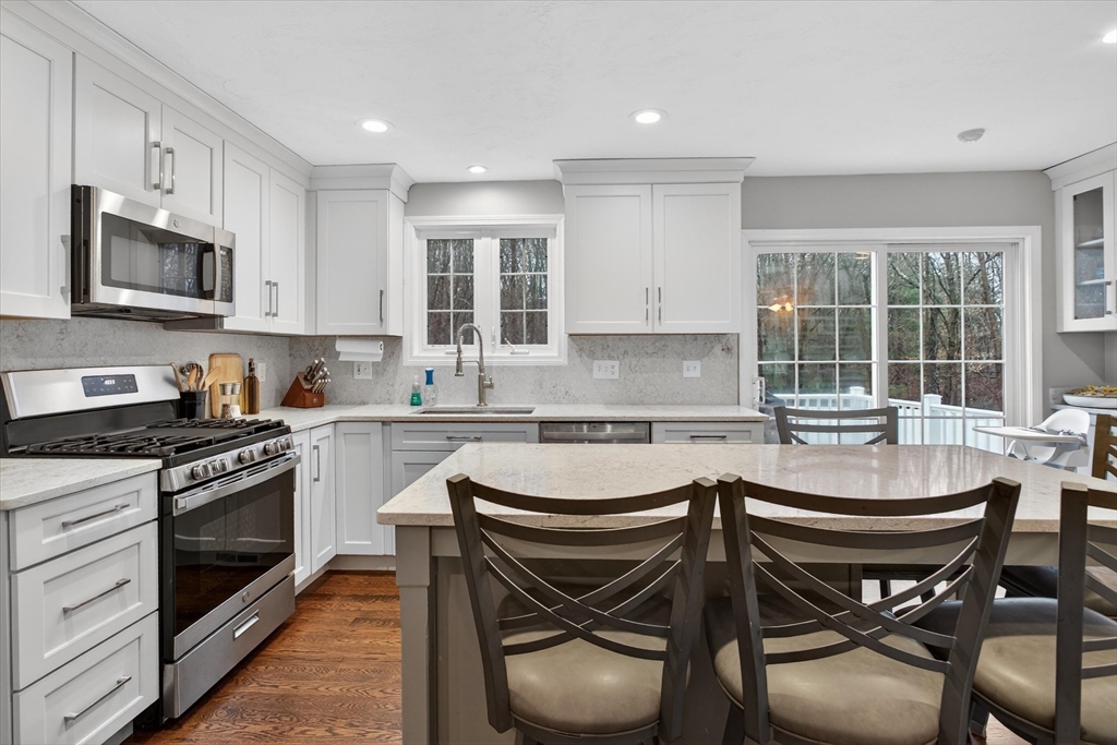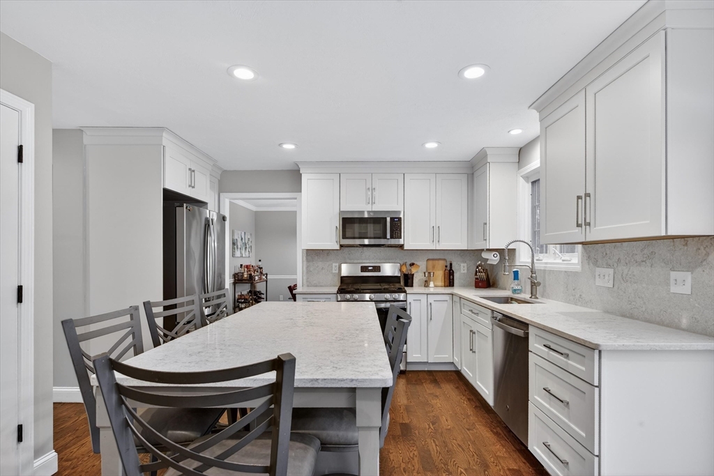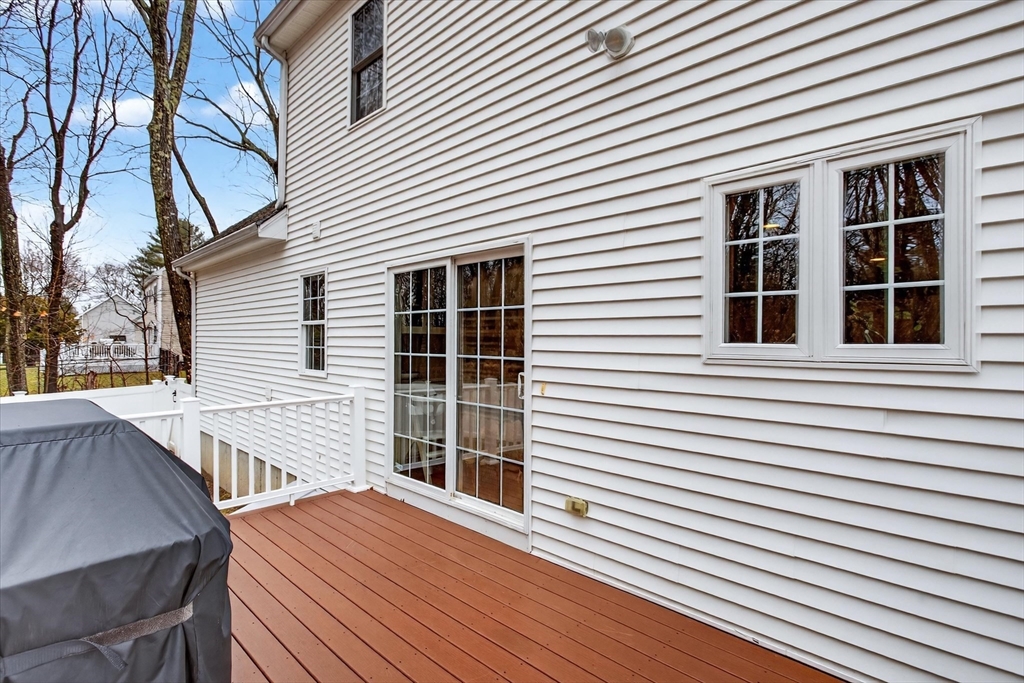 Start checking off the boxes!! Beautiful 2006 center entrance Colonial set on a quiet dead-end street in a prime Walpole location. First floor features include hardwood floors through out, gas fireplace, and a white shaker kitchen with center island, quartz countertops and matching backsplash. Upstairs: 4 total bedrooms and 2 bathrooms including a spacious primary suite with large bathroom and walk in closet. Additional features include: Fully finished basement with french drain, attached 1 car garage with extra height and depth for storage, 2 zones high efficiency gas heat, 2 zones central AC, composite farmers porch, composite rear back deck, and a large fenced in yard. LOCATION: Just seconds to Patriot Place with train, shopping, dining, and more. Minutes to downtown Walpole, other local plazas, and I-95.