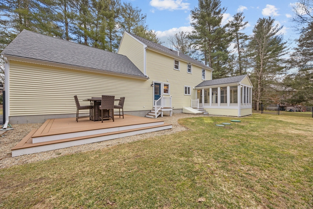 Lovingly maintained by its original owner, this stunning Colonial is nestled on a cul-de-sac in one of Lakeville’s most coveted hidden gem neighborhoods. Set on 1.6 acres & offering 2,521 SF of living space, the updated eat-in kitchen features stainless steel appliances, granite countertops & hardwood floors. A thoughtfully designed layout includes an office or living room w/ hardwood floors, a family room w/ cathedral ceiling, & fireplace. Formal dining room w/ hardwood floors & French doors. The screened-in porch overlooks a private backyard w/ composite deck, shed & irrigation. 4 bedrooms up w/ brand new carpeting include a primary suite w/ walk-in closet & gorgeous tiled ensuite bathroom. A beautifully finished lower level offers an inviting extension of the home, thoughtfully designed w/ recessed lighting, classic bead-board detailing, a wine fridge & abundant storage..perfect for relaxing, entertaining, or creating a refined retreat. 2-car garage. Generator&EV ports. Central vac.